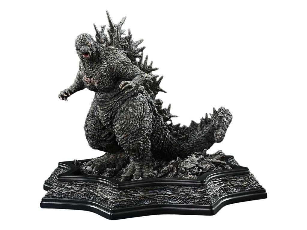 Moře se dělí před kolosální příšerou. Úchvatný pohled, ztělesněný v bystě vysoké 91 cm. Celosvětově oslavovaný pro své průkopnické VFX a hluboké lidské drama, „Godzilla Minus One“ označila 70. výročí Krále příšer. Z tohoto milníkového filmu přichází busta v životní velikosti. Úplná socha studia Prime 1 z roku 2024 (UDMGMO-01) zobrazovala hrůzu z útoku příšery, s rozbořenými budovami a panikařícími davami uspořádanými v dioramové kompozici. Tato busta přejímá sochařskou práci a malby tohoto kusu a zaměřuje se na čistou velikost. O měří přibližně 87 cm na výšku a 91 cm na hloubku, zachycuje Godzillu, jak rozděluje moře a postupuje vpřed. Bujný výtrysk roste kolem jeho pasu, vyvolávající neviditelný pohyb jeho ponořeného spodního těla. Záměrným vyloučením prvků jako jsou budovy nebo lidé design ponořuje diváky do ohromující hmotnosti a tlaku Godzilly. Busta oplývá detailem: oči s průhledností podobnou čočce, lesknoucí se, jako by byly mokré; silná hrudník a paže, pečlivě vybudované s definicí svalů; tmavý, zanořený tón pleti naznačující čas strávený v hlubinách oceánu. Každý aspekt odráží vrchol sochařských a malířských technik. Snarling čelisti a hřbetní ploutve, vylepšené čirými částmi, jsou vybaveny LED jednotkami. Svítí modrobílým zářením a připomínají napjatý okamžik těsně předtím, než Godzilla vypustí svůj horký paprsek. Tato bonusová verze také zahrnuje miniaturní sochu inspirovanou předchozím plnotělovým kusem - kompaktní, ale věrnou kondenzaci Godzillaovy sochařské krásy, navrženou k radosti sběratelů. Kolosální příšera kráčí oceánem s majestátem. Přineste domů úchvatný pohled, který byl svědkem v novém filmovém milníku franchisy Godzilla. Specifikace: - LED světelné prvky (ústa, hřbetní ploutev) - miniatura Godzilly [BONUSOVÁ ČÁST] Způsob napájení LED: Bude upřesněno * Připravte si baterie, USB kabely nebo jiné potřebné předměty v závislosti na konečné metodě napájení. "Limitovaná edice 300 kusů".
