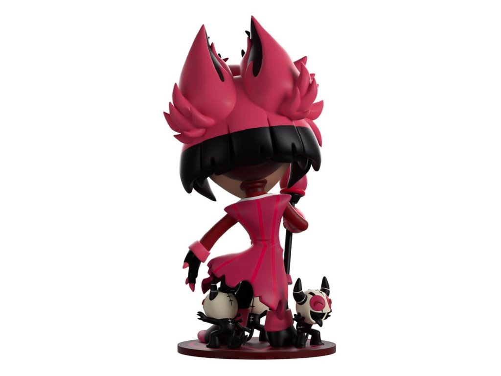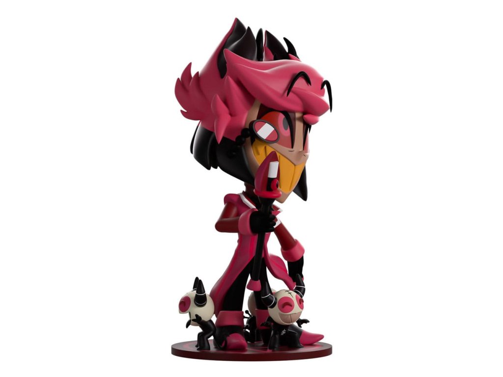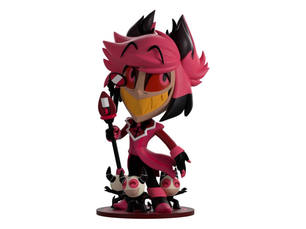 'Tak co na to říkáš?!' Alastor se rozhodl svou show převést na cestu a první zastávka je Youtooz! S obrovským žlutým úsměvem se špičáky táhnoucím se přes jeho tvář pod zářivě červenýma očima, které se dívají vzhůru, zatímco jeho růžové a černé vlasy splývají na stranu v hustém ofinu a vyvěrají v rohatých vrcholech. Stojí vysoký 13 cm, s rukou roztaženou, v níž drží dlouhou hůl zakončenou staromódním mikrofonem. Nese dlouhý kabát s bílým lemem kolem svého klop a stužku na krk, kolem jeho dvoubarevných bot stojí trojice jeho služebníků připravených vykonat jeho příkazy. Na obálce jeho balení je zobrazena zchátralá rozhlasová věž sahající do hluboké červené oblohy, zatímco svítí značka 'On Air', zatímco interiér je pokryt elegantním červeným tapetovým vzorem, který pokračuje na ochranný obal, kde se mění na hlubokou černou a ukazuje temnou městskou krajinu, zatímco jeho figurka je vidět skrz velké průhledné okno na přední straně obalu. Tento sběratelský předmět se dodává v matném, reliéfním, ochranném vnějším obalu a plastovém chrániči přizpůsobeném na míru pro maximální ochranu během přepravy. O Hazbin Hotelu Hazbin Hotel je animovaný hudební seriál, jehož autorkou je Vivienne 'VivziePop' Medrano, který sleduje Charlie Morningstar, princeznu pekla, v jejím cíli 'rehabilitovat' hříšníky, aby mohli vstoupit do nebe prostřednictvím jejího 'Hazbin Hotelu'. Po pilotním vydání na YouTube v roce 2019 se první série premiérovala na Amazon Prime Video v roce 2024 a zaznamenala největší debut pro nový animovaný seriál na této platformě!