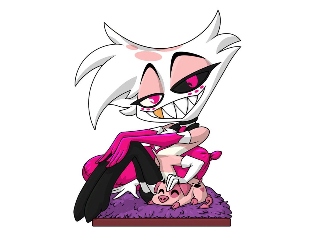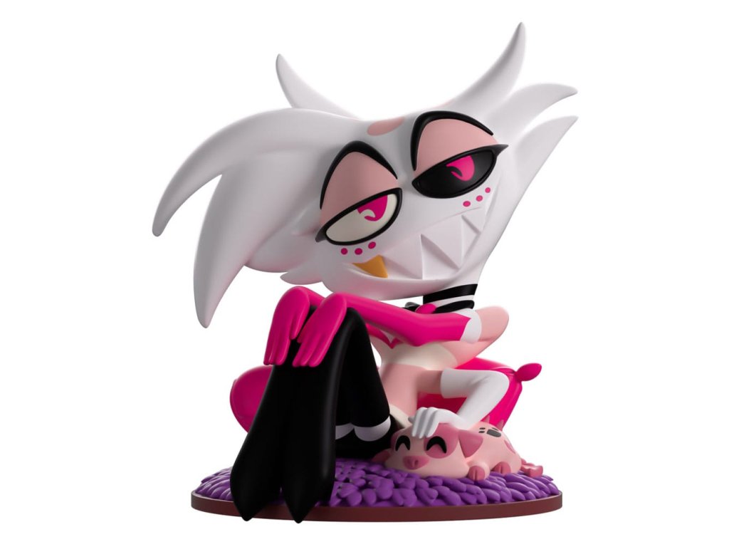 'Hej tatíčku', Youtooz byl obdařen přítomností skutečné hvězdy s debutem Angel Dust! Leží na hlubokém nachovém koberci a opírá se o pár jasně růžových polštářů o výšce 3,8 palce, jeho hlava je roztomile nakloněná na stranu, pod tajemnými polouzavřenými bílými a černými očima se krčí šibalský úsměv plný zubů a jeho husté bílé vlasy se odklánějí na stranu. S jedním párem růžových rukavic, které jsou nataženy a odpočívají na zdvižených kolenou, druhý pár bílých rukavic trčí z boků jeho růžového a bílého pruhované trička, aby pohladil ospalý tukový nugget. Exteriér jeho obalu vidí nachovou, s polštáři naloženou postel pokrytou kožešinou, zatímco řetězy živých srdcí visí ze stropu. Interiér krabice je pokryt elegantní červenou vzorovanou tapetou, která pokračuje na ochranný rukáv, kde se mění na hlubokou černou a ukazuje tmavý cityskape, zatímco jeho postava může být viděna skrze velké průhledné okno na přední straně obalu. Tento sběratelský předmět je dodáván v matném, reliéfním, ochranném vnějším rukávu a v plastové ochraně na míru pro maximální ochranu během přepravy. O Hazbin Hotelu: Hazbin Hotel je animovaný hudební seriál vytvořený Vivienne 'VivziePop' Medrano, který sleduje Charlie Morningstar, princeznu pekla, v jejím cíli 'rehabilitovat' hříšníky, aby mohli vstoupit do nebe přes její 'Hazbin Hotel'. Pilotní díl byl původně vydán na YouTube v roce 2019 a první řada měla premiéru na Amazon Prime Video v roce 2024, což znamenalo největší debut nového animovaného seriálu na platformě.