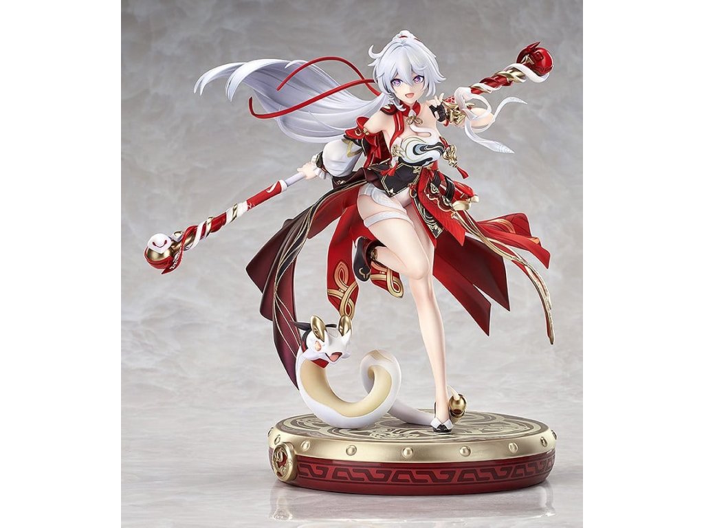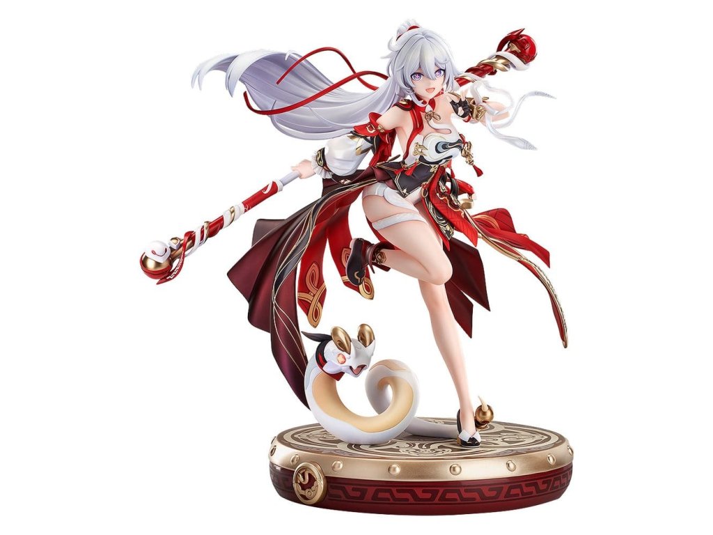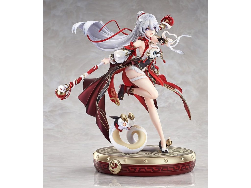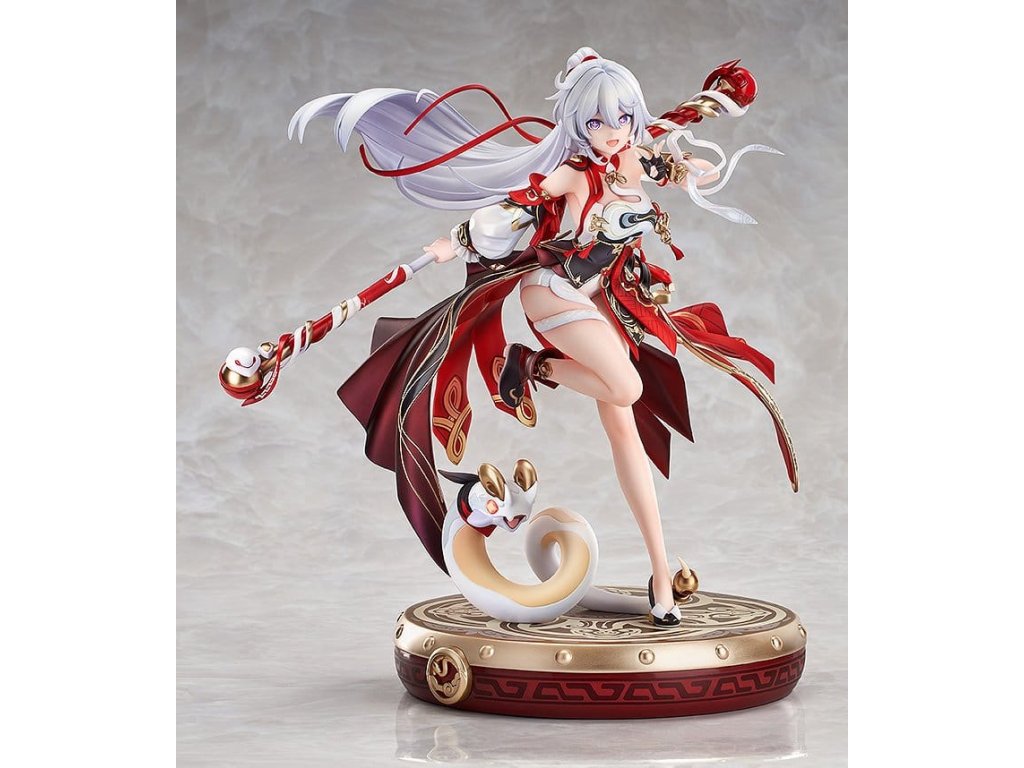Z populární akční hry 'Houkai 3rd' přichází měřítková figurka Kiany Kasrany v jejím bojovém obleku 'Ba-Dum! Žhavá padající hvězda'! Figurka představuje dynamičtější pózování plné vitality, kde Kianiny dlouhé stříbrnobílé vlasy a stuhu tvoří krásný vrstvený efekt. Barevné schéma kombinuje čínské motivy s obrněným designem a dosahuje detailních textur a vizuálních efektů prostřednictvím sofistikovaných malířských technik, které zahrnují kovové zabarvení, perleťový finiš a přechody. Červené oblečení disponuje speciálními malířskými technikami, aby vyjadřovalo lesklý les, který připomíná Kianův vzhled ve hře. Každý detail - od zlatých vzorů na obleku a přehybů látky až po přirozený pohyb lidské formy - byl pečlivě vytvořen. Specializovaná bubenová základna obsahuje roztomilého maskota 'Rice Cake', který bezproblémově doplňuje celkový koncept figurky. Nezmeškejte tuto příležitost přidat do vaší sbírky krásnou a roztomilou Kianu: Ba-Dum! Žhavá padající hvězda!