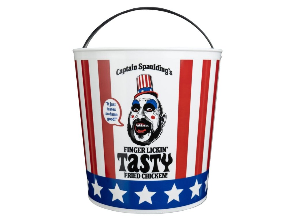 Trick or Treat Studios je hrdé na to, že představuje oficiálně licencovaný Kýbl na sladkosti Křižáci z filmu Dům 1000 mrtvol, inspirovaný říší smaženého kuřete kapitána Spauldinga a hororovým výjevem u silnice. Se svou výškou přibližně 8 palců a pevnou, ohebnou plastovou rukojetí je to dokonalý společník pro noc šílenství při sbírání sladkostí. Pouze pro zabalené sladkosti a jako vystavený exponát. Není vhodné pro přímý kontakt s potravinami. Perte jemně; nenechávejte namočené. Není vhodné do myčky na nádobí.