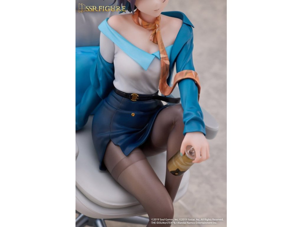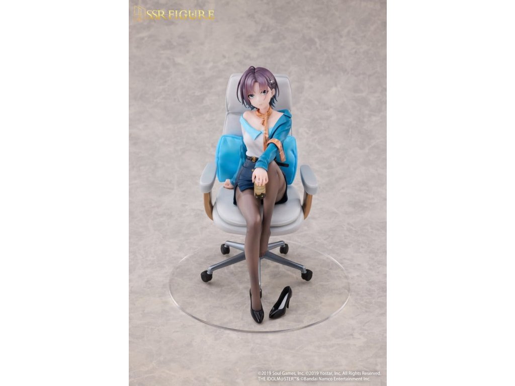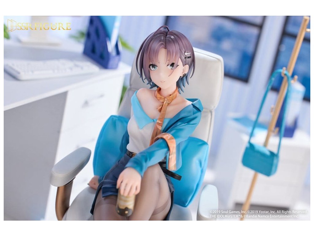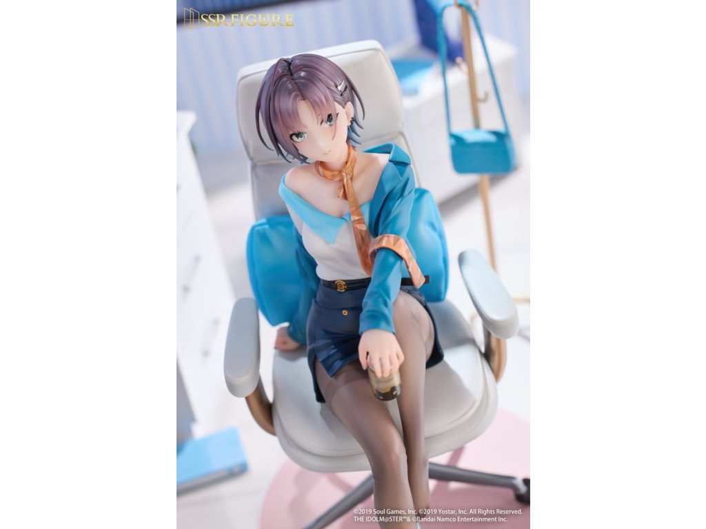 Z kultovních her THE IDOLM@STER Shiny Colors a Mahjong Soul přichází vysněná spolupráce! Asakura Tooru ze skupiny noctchill je zde představena jako figurka v měřítku 1/7, oblečená v obleku "Leisurely Grace"! Úplně odlišná od svého obvyklého stylu, tentokrát se představuje v inteligentním, avšak účelném stylu kancelářské dámy. Obléka si volný modrý kabátik spolu s jemně texturovanými černými punčochami, což krásně vynáší její charakteristickou průsvitnou auru a zralý šarm. Od detailního zpracování kancelářského křesla až po jemně viditelný odstín pleti pod punčochami, vše bylo pečlivě vytesáno. Ujistěte se, že do své sbírky přidáte tuto unikátně okouzlující verzi Asakura Tooru, a užijte si s ní relaxační chvíle. Velikost: 18 x 18 x 21 cm