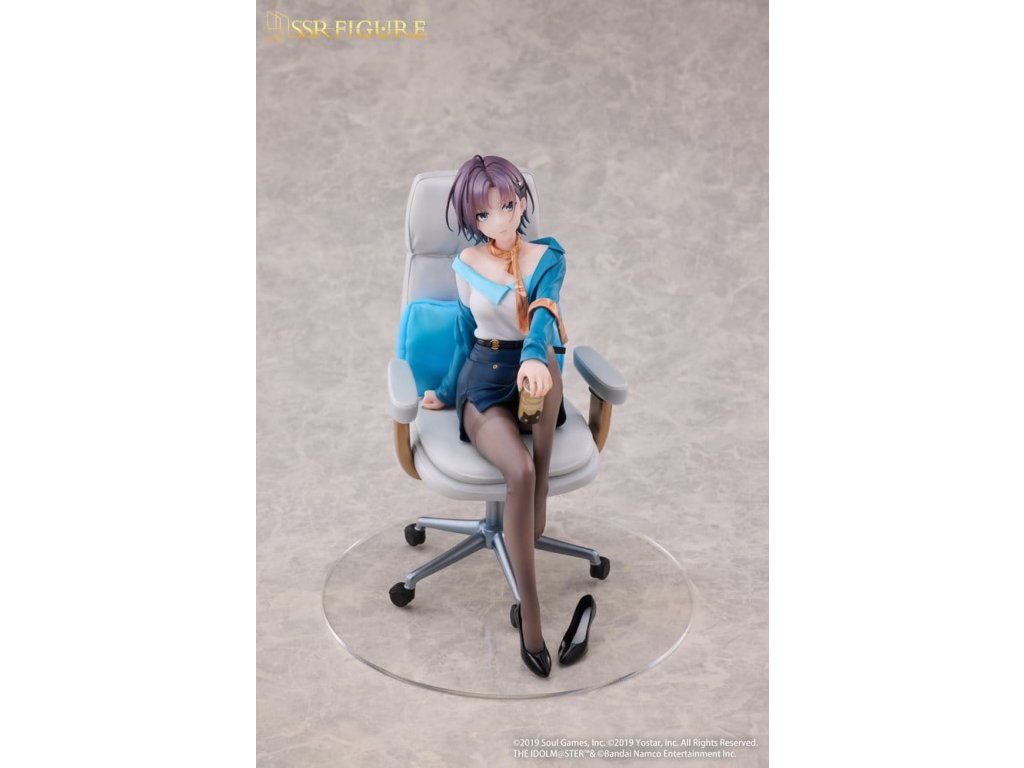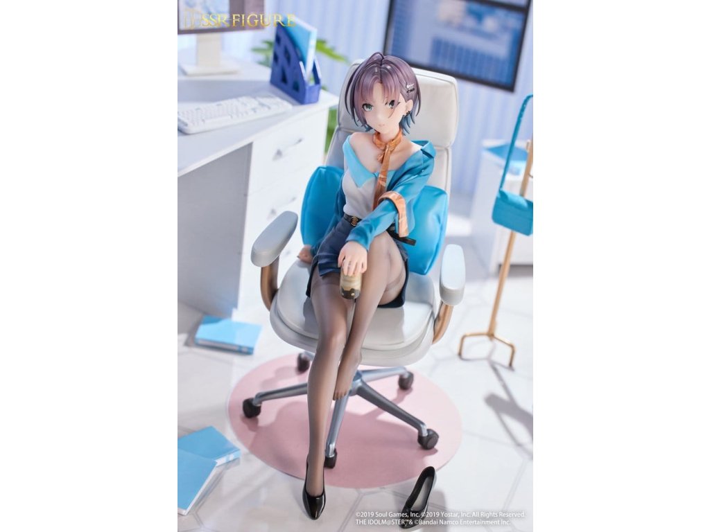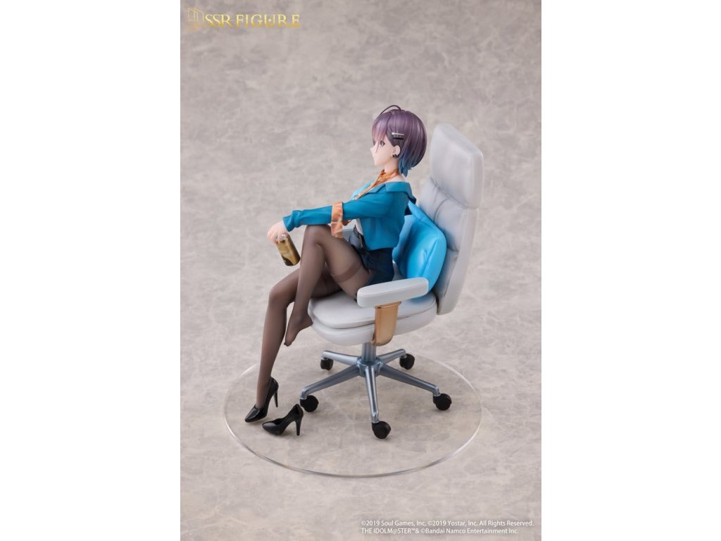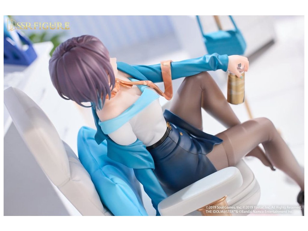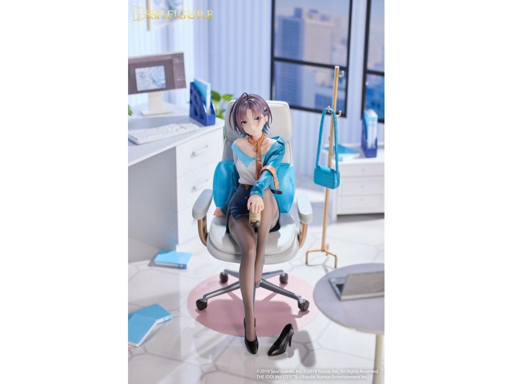 Z kultovních her THE IDOLM@STER Shiny Colors a Mahjong Soul přichází vysněná spolupráce! Asakura Tooru ze skupiny noctchill je zde představena jako figurka v měřítku 1/7, oblečená v obleku "Leisurely Grace"! Úplně odlišná od svého obvyklého stylu, tentokrát se představuje v inteligentním, avšak účelném stylu kancelářské dámy. Obléka si volný modrý kabátik spolu s jemně texturovanými černými punčochami, což krásně vynáší její charakteristickou průsvitnou auru a zralý šarm. Od detailního zpracování kancelářského křesla až po jemně viditelný odstín pleti pod punčochami, vše bylo pečlivě vytesáno. Ujistěte se, že do své sbírky přidáte tuto unikátně okouzlující verzi Asakura Tooru, a užijte si s ní relaxační chvíle. Velikost: 18 x 18 x 21 cm