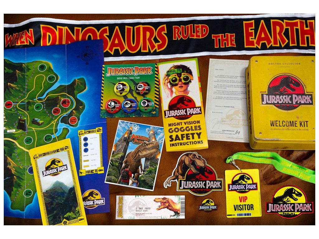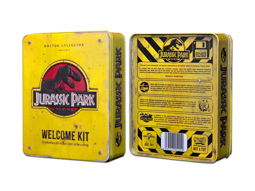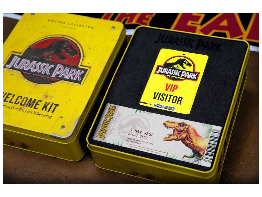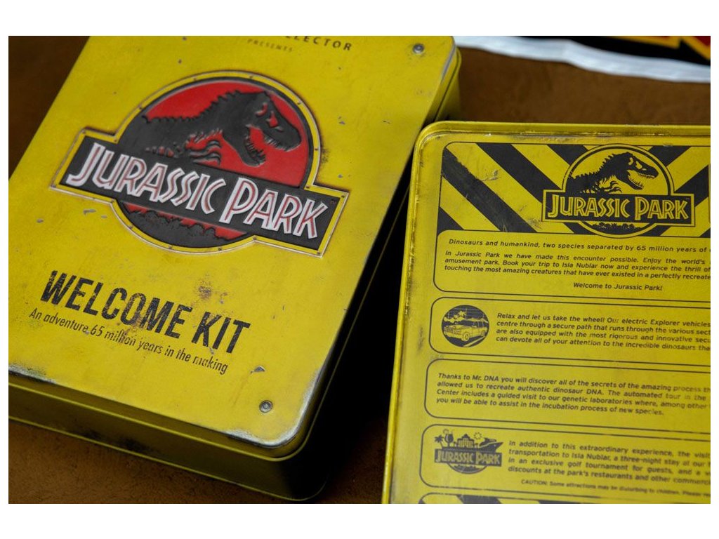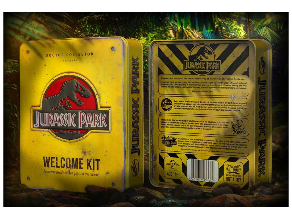 Jste připraveni navštívit Jurassic Park? Dovolte mi představit vám úžasný Vítejte balíček. Obsah balíčku zahrnuje: - Kovovou krabici - uvítací dopis - vlajka s nápisem 'Když dinosauři ovládali zemi' - Brožurka mapy jurassic parku - noční brýle pokyny k bezpečnosti - VIP návštěvnický průkaz s popruhem - odznak s logem Jurassic Parku - výšivka - exkluzivní odznaky Jurassic Parku - exkluzivní pohlednici Jurassic Parku - 1 nálepku Prosím, všimněte si: vzhledem k malému nákladu a velké poptávce po této položce se očekává, že se alocace objeví.
