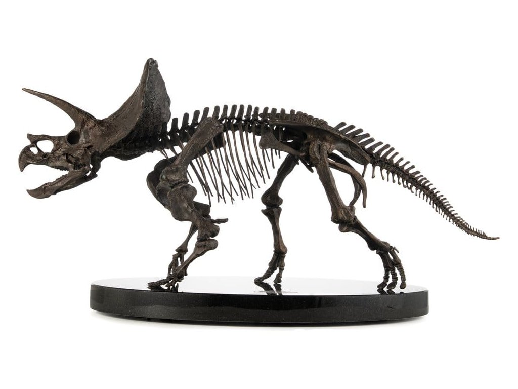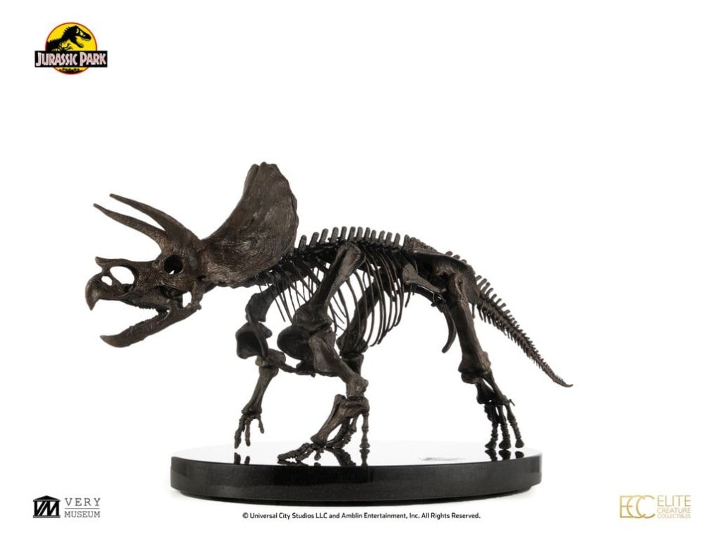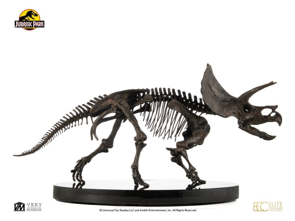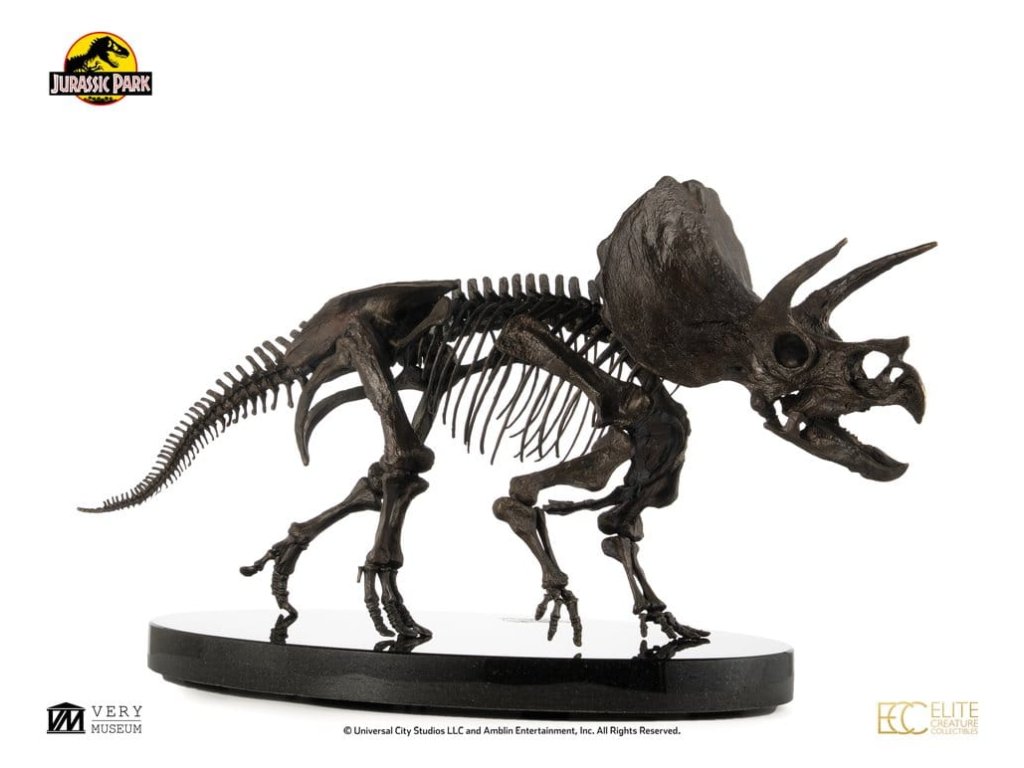 Triceratops je vyhynulý rod býložravého dinosaura z podčeledi chasmosaurini z čeledi rohatých dinosaurů ceratopsidů, který žil v Severní Americe v období pozdní křídy. Je také jedním ze čtyř dinosaurů, kteří se objevili ve všech filmech Jurský svět. Mezi nejvýznamnější objevené fosilie dinosaurů patří právě fosilie Triceratopse, který se v Jurských filmech objevuje jen krátce, avšak jeho výstup je vždy pamětihodný.Elite Creature Collectibles s hrdostí představuje Triceratops Fossil Skeleton v měřítku 1:12 ve bronzovém provedení. Uznávaný umělec Bitan z ILM, který měl možnost pracovat s fosilními sbírkami muzeí, věrně zrekonstruoval kostru triceratopa, přičemž nejen vycházel z reálných fosilních referencí, ale také přesně kopíroval anatomický design viděný na filmovém plátně.Tento úchvatný kus je pečlivě zpracován z výtvarného bronzu s patinou ve vzoru fosilii a je namontován na elegantním mramorovém podstavci. Specifikace: - Výška cca 33 cm - Šířka cca 60 cm - Hloubka cca 29 cm - Výtvarný bronz s mramorovým podstavcem - Součástí je Certifikát o autentičnosti podepsaný Bitanem - Výrobek na objednávku - LIMITOVANÁ EDICE: Počet kusů je celosvětově omezen na 30. Orientační datum vydání: listopad 2026