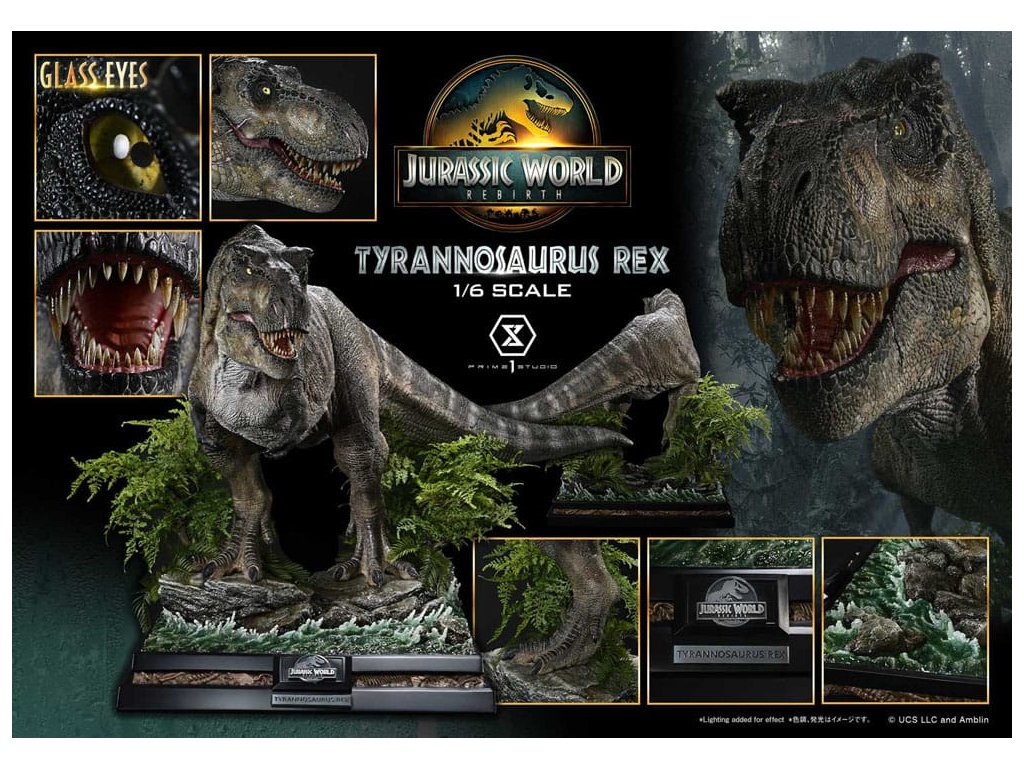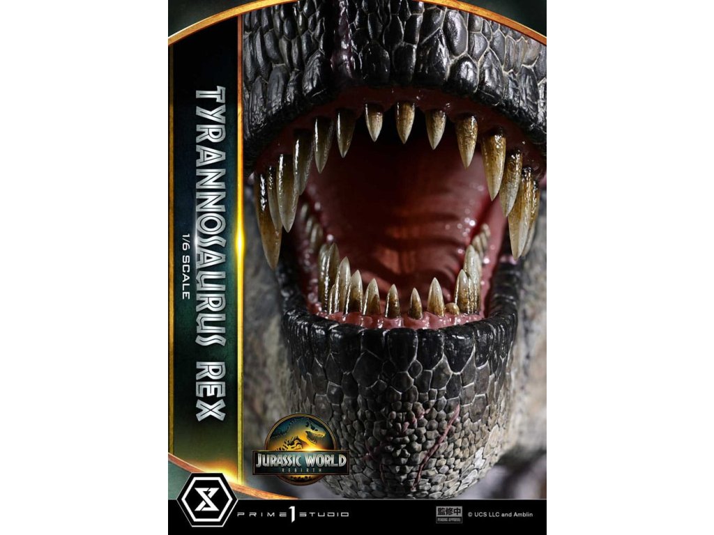 Symbol série se tyčí na délce 1,38 metru. Běsnící čelist a mocné tělo - nyní vypuštěné v měřítku 1/6. Z nejnovější kapitoly ikonické série 'Jurassic' přichází nový Tyrannosaurus Rex, který se nyní připojuje k kolekci Legacy Museum Collection. Ostrov, kdysi domov tajného výzkumného zařízení původního Jurassic Parku, je svědkem vzestupu nového tyrana. Tato socha zachycuje jeho děsivou přítomnost prostřednictvím obrovského měřítka 1/6 - o délce přibližně 1,38 metru. Jako jeden z největších dinosaurů Prime 1 Studio vůbec táto socha znázorňuje zoufalství při setkání a neodvratný strach z lovu po pevnině i vodě. Ale velikost je pouze začátek. Výrazné hrany nad jeho očima. Kostidla drcící čelist lemovaná břitkými zuby uvnitř realisticky ztvárněné tlamy. Svalnaté tělo označené odvážnými pruhy. Každý detail tohoto Tyrannosaura Rexa - jak jako druhu, tak jako jednotlivého živého tvora - byl věrně otesán a nabarven. Je to úroveň přesnosti a přítomnosti nemožná v menších měřítcích. Tyrannosaurus Rex dlouho symbolizoval franšízu 'Jurassic World'. Nyní přichází jeho nejnovější inkarnace - dodávaná s nepřekonatelnou velikostí, sochařskou věrností a mistrovským malováním.