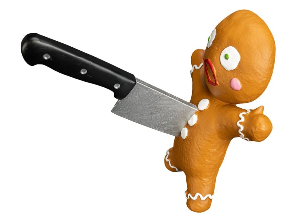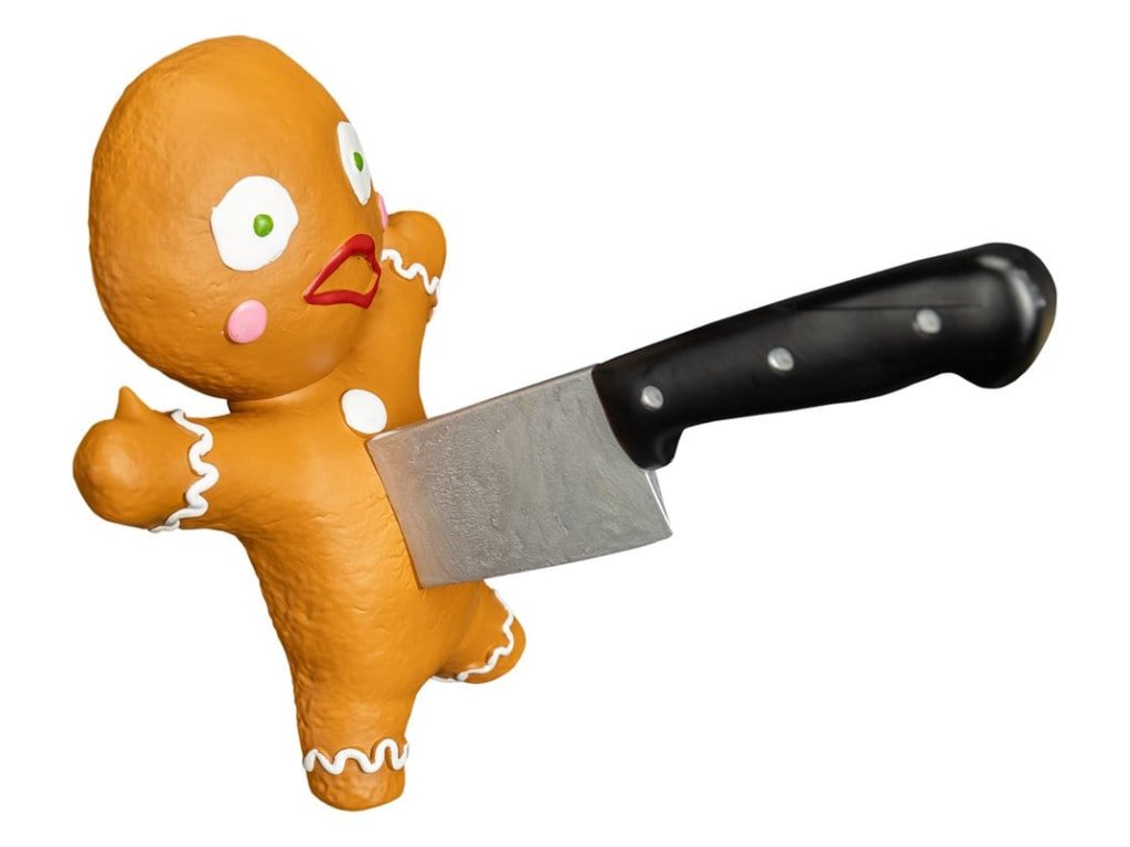 Studia Trick or Treat s hrdostí představují oficiálně licencovaný Krampus - Magnet ve tvaru zázvorníkového mužíčka! Z hororu pro svátky Michaela Doughertyho, tento obrazově přesný Magnet zázvorníkového mužíčka měří přibližně 25cm x 18cm a je vyroben z flexibilní pěny latexu se zádí z odolného plastu. Rekvizita je dodávána s plastovým nožem (zajištěný, ale snímatelný) a obsahuje zarážku na zeď a magnet, což vám dává několik možností zobrazení: připevněte ho na lednici, vystavte ho na zeď, nebo ho uchovávejte jako součást vaší sváteční hororové sbírky.