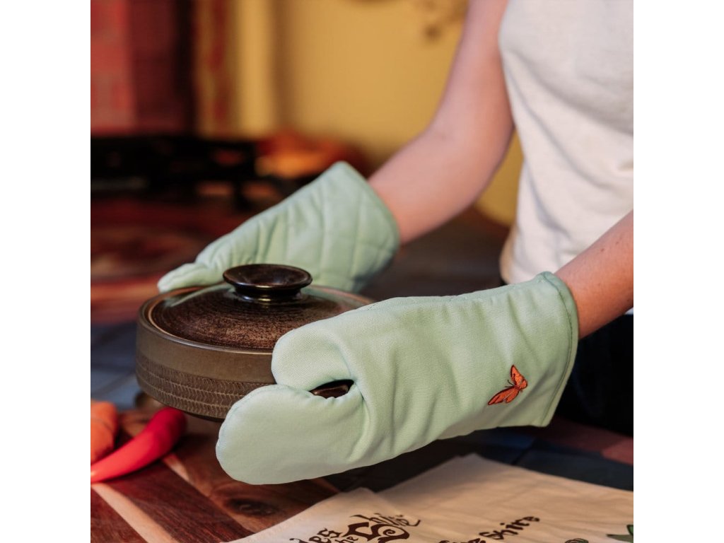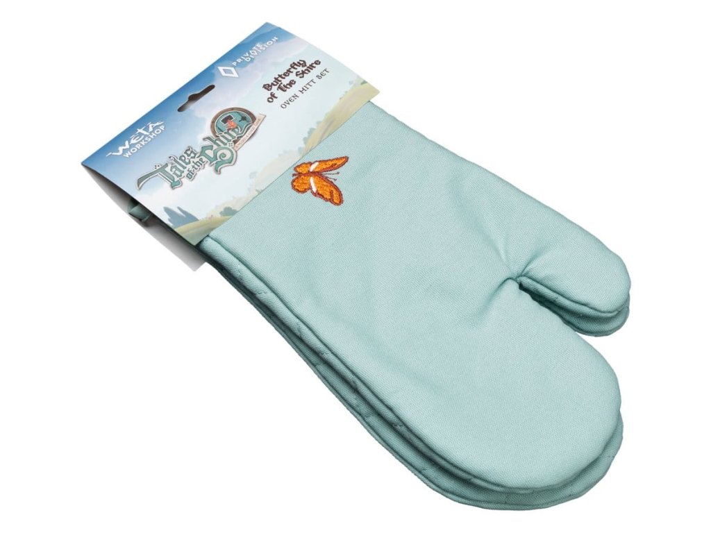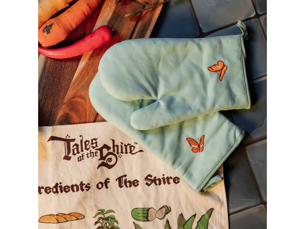 Příběhy z Kraje jsou hra simuluje útulný život, kde hráč zahradničí, rybaří, vaří a sdílí jídla, zatímco zdobí svůj dům a objevuje překrásně klidnou krajinu Kraje. Od zahrady po váš krb, hojnost z Bywateru je vždy na dosah ruky. Do svých dobrodružství s pečením přineste špetku hobitského kouzla s rukavicemi na pečení Motýl z Kraje. Jejich měkký modrý odstín a vyšívané logo motýla vás přenese přímo do rolovacích luk Kraje. Chraňte své ruce teplem a rošťáctvím, které může poskytnout pouze Kraj. - Ikona logo motýla Příběhy z Kraje, krásně vyšívaná. - Tepluvzdorný materiál pro ochranu rukou během kuchyňských dobrodružství. - Pohodlné pro hobity i lidi. - Velikost: 17cm x 30cm x 2cm
