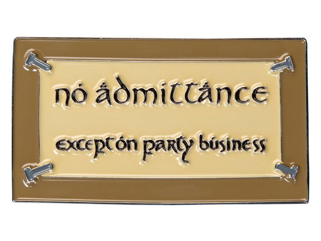 Vstupte do ducha Bilbovy legenární pohostinnosti a vydejte se na svou vlastní epickou výpravu s magnetem Bez vstupu. Přidejte špetku kouzla Středozemě do svého okolí a nechte začít dobrodružství. Perfektní pro zdobení lednic, šanonů nebo jakéhokoli jiného magnetického plátna, ať vám tento kousek připomíná každý den úžasné cesty, které čekají za branou. Ať už jste zkušený sběratel nebo vášnivý fanoušek Středozemě, tento magnet přinese do každé magnetické plochy nádech dobrodružství a nostalgie. - Inspirovano ikonickou cedulí 'Bez vstupu kromě na oslavu' na Bilbově přední bráně. - Vyhotoveno ze odolných kvalitních materiálů stejnými oceněnými umělci, kteří stojí za renomovanými suvenýry Weta Workshop. - Přineste kousek Středozemě do svého domova, ideální pro lednice, desky nebo jakýkoli kovový povrch, spojující funkčnost s fantazii. - Oficiálně licencovaný smaltovaný magnet. Rozměry: 1,37" x 2,44" x 0,16" (Š x V x H) 3,5 cm x 6,2 cm x 0,4 cm.