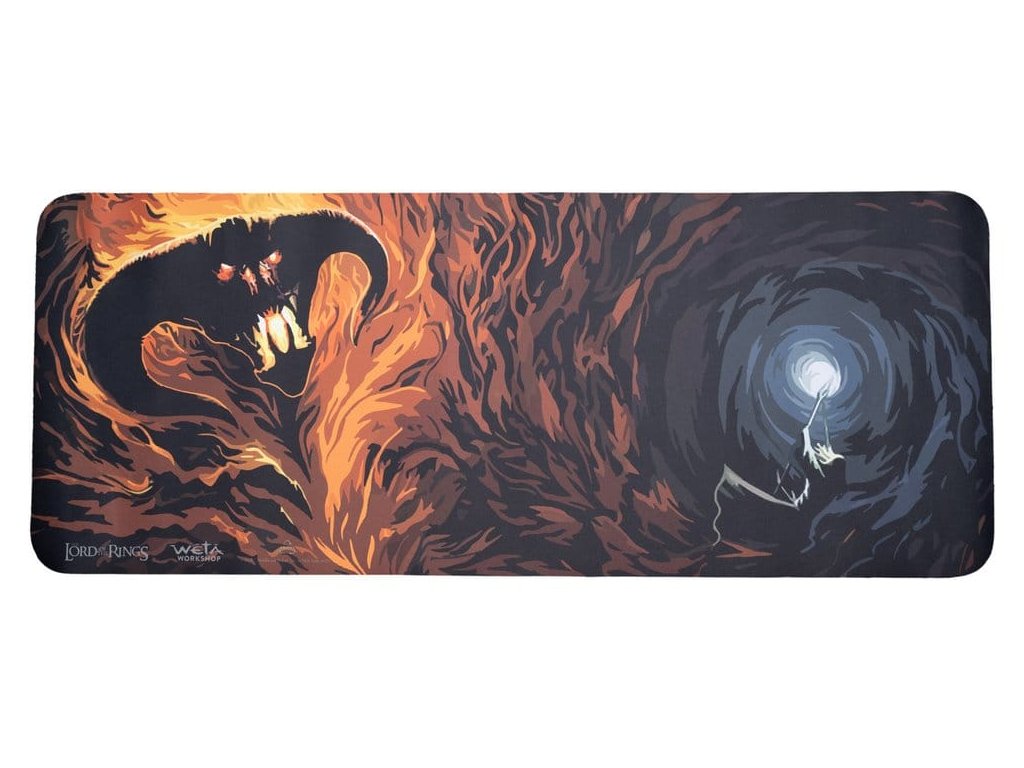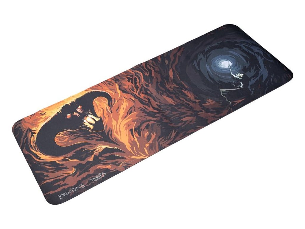 Gandalf, nechtíc vidět rozbitou cestu Společenstva v tak vážné situaci, stál pevně. Postoupil vpřed, sám a neústupný, mezi svými druhy a monstrózním démonem stínu a plamenů. Naděje byla slabá, ale on neochabl. S hlasem jako hrom, uplatňuje veškerou sílu a moudrost věků, zvedl vysoko svůj meč a hůl: „Neprojdeš!“ Proměňte své pracovní místo na scénu přímo ze Středozemě s naší novou podložkou na stole, která zobrazuje ikonické střetnutí Gandalfa s Balrogem v Morii. Ať už bojujete s pracovním termínem nebo se ponořujete do nového dobrodružství, tato podložka vám připomene, že i v nejtemnějších chvílích čaroděj (nebo dobře organizovaný stůl) vždy najde světlo. S její výraznou grafikou, velkou velikostí a hladkou plochou je dokonalá pro udržení myši a klávesnice pod kontrolou a přidává kouzlo do vašeho dne. - Robustní podložka pod klávesnici s ilustrací od Weta Workshop; - Zobrazuje legendární střetnutí Gandalfa s Balrogem, jak je vidět v Družině prstenu - Rozměr: 74cm x 29,5cm x 0,4cm.