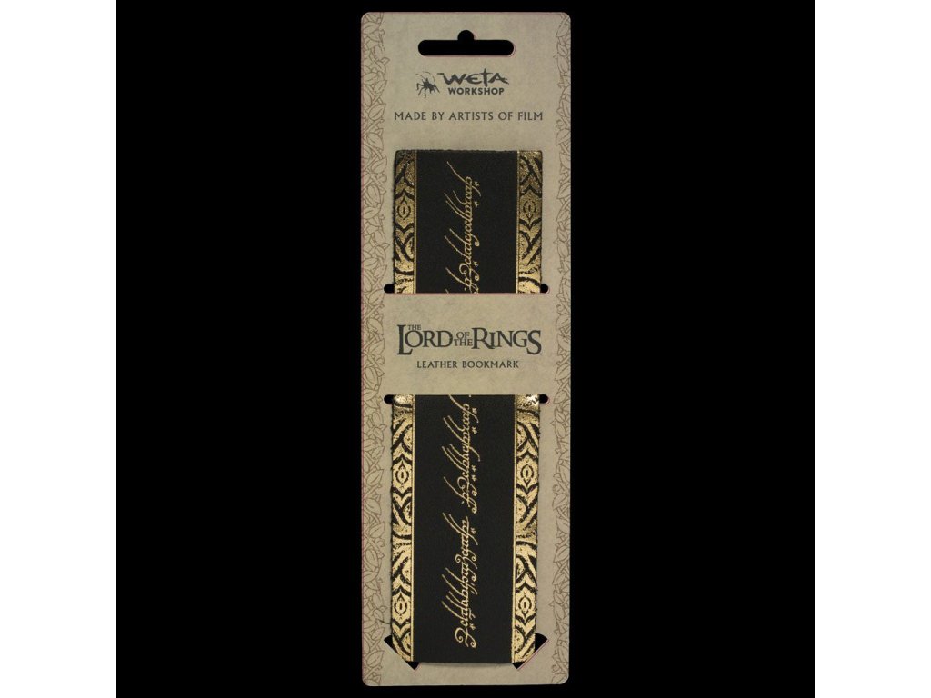 Tato krásná kožená záložka vám vydrží celý život. Byla vyrobena ve Wellingtonu na Novém Zélandu z ohebné kůže. Jedná se o přírodní produkt s jedinečnými barevnými a texturovými variacemi. Záložka bude skvěle vypadat ve vaší dětské kopii Pána prstenů nebo proč ne v jedné z uměleckých knih z filmů? Nebo ji jednoduše použijte v kterékoliv knize, kterou právě čtete, aby vás připomněla, že vaší další knihou by měl být Pán prstenů. Znovu... Tyto záložky jsou velmi hmatové, krásné na pohled a mají neodolatelnou vůni 'nového auta'. Rozměry: 17,3 x 5 x 0,2 cm.