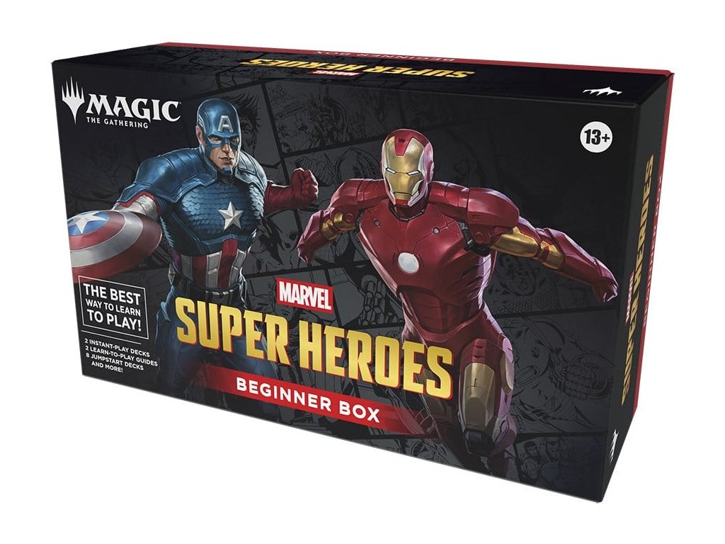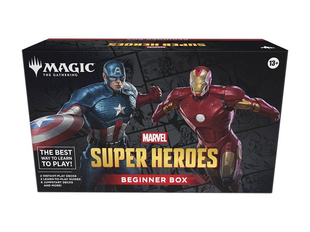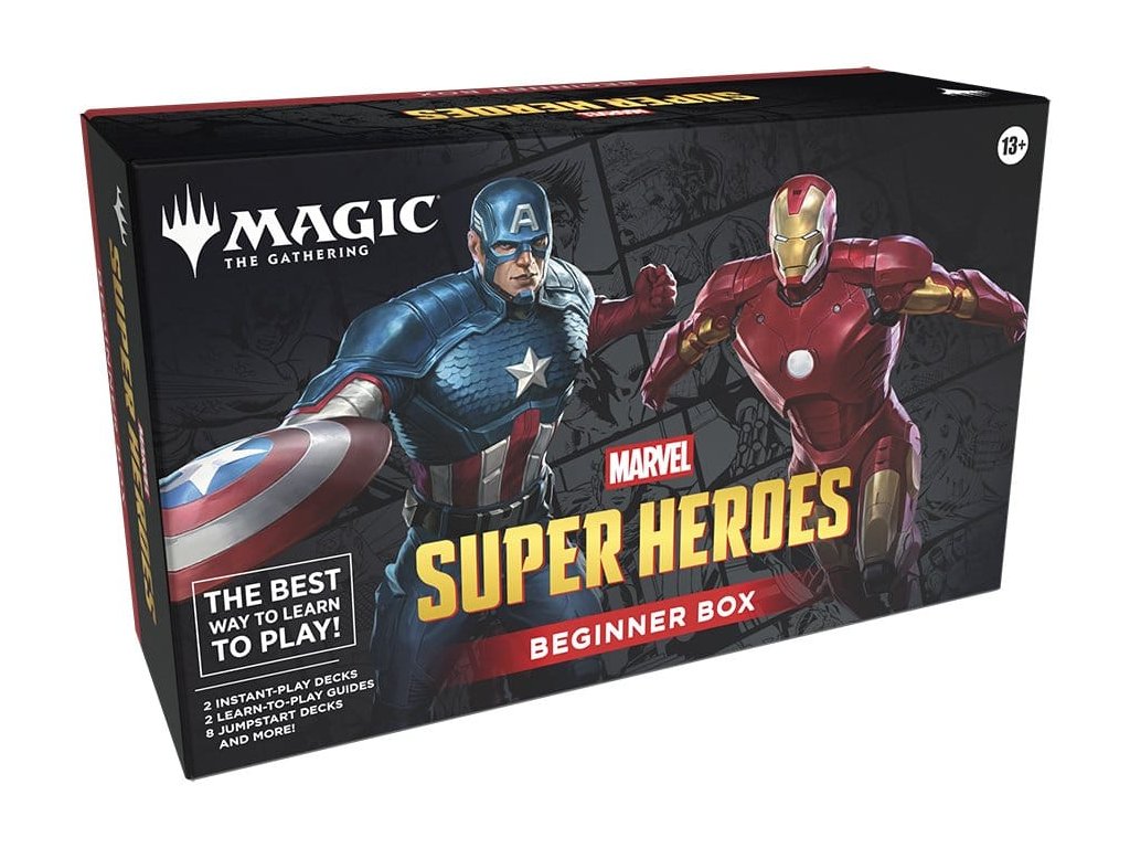 Vaše cesta Magic: The Gathering začíná vedle vás přítel! Zahrajte si svou první hru v řízeném boji Kapitána Ameriku proti Iron Manovi. Vyberte si svou stranu a pošlete své síly do boje, zatímco se učíte základní herní lekce. Poté, až zvládnete základy, uvědomte si svůj skutečný potenciál vytvořením balíčků s tématem Marvel Super Heroes - stačí kombinovat jakékoli dvě z osmi 20karetních půlbalíčků a hrát. Karty přicházejí ve dvou baleních po 100 kartách, každý obsahuje jeden 20karetní výukový balíček a čtyři 20karetní tematické půlbalíčky.