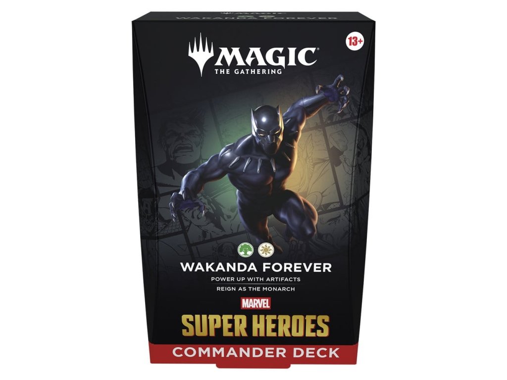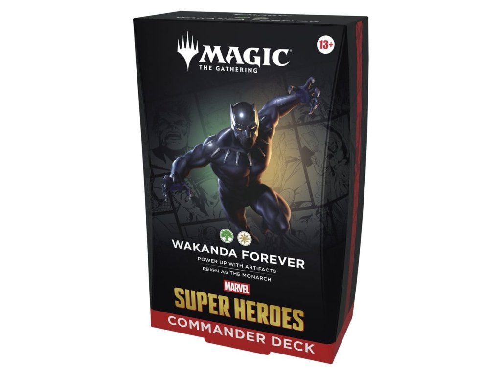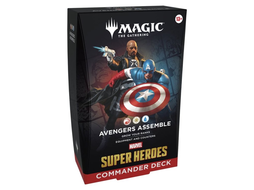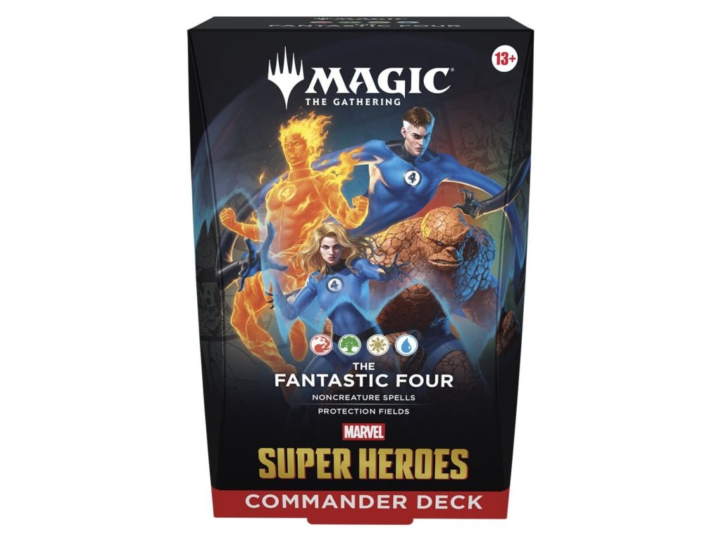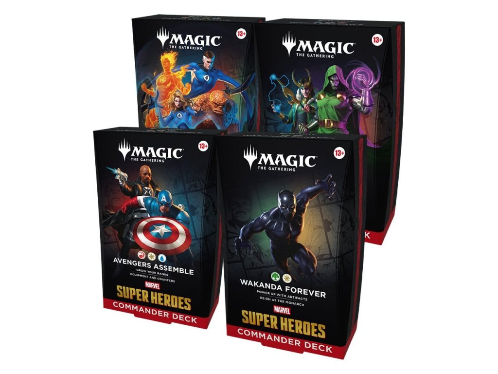 Tento balíček obsahuje všechny 4 sady karet Magic: The Gathering Marvel Super Heroes: Avengers Assemble, Wakanda Forever, The Fantastic Four a Doom Prevails. Každá sada obsahuje 1 balíček o 100 kartách Magic, 10 dvoustranných žetonových karet, 1 krabičku na karty (může pojmout 100 obalených karet), 1 strategický průvodce a 1 referenční kartu. Sady Avengers Assemble, Wakanda Forever a Doctor Doom každá obsahují 1 kartu Traditional Foil Borderless a 99 běžných karet. Sada The Fantastic Four obsahuje 4 karty Traditional Foil Borderless a 96 běžných karet.