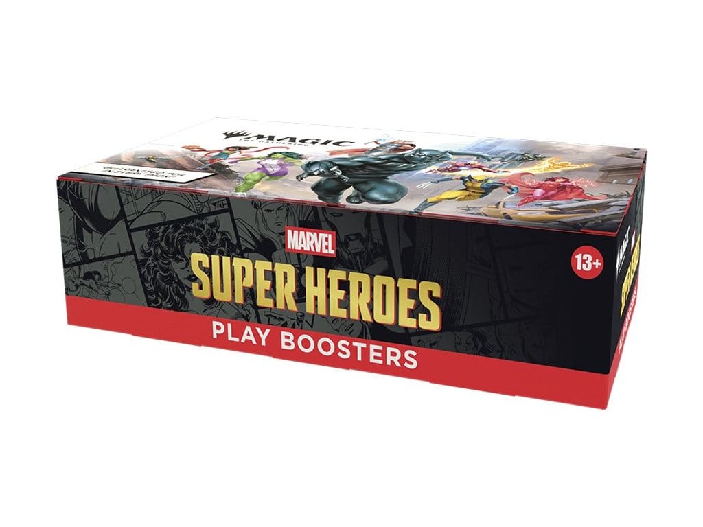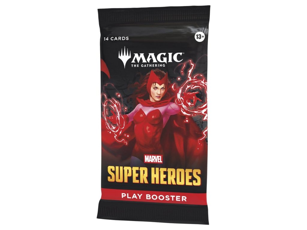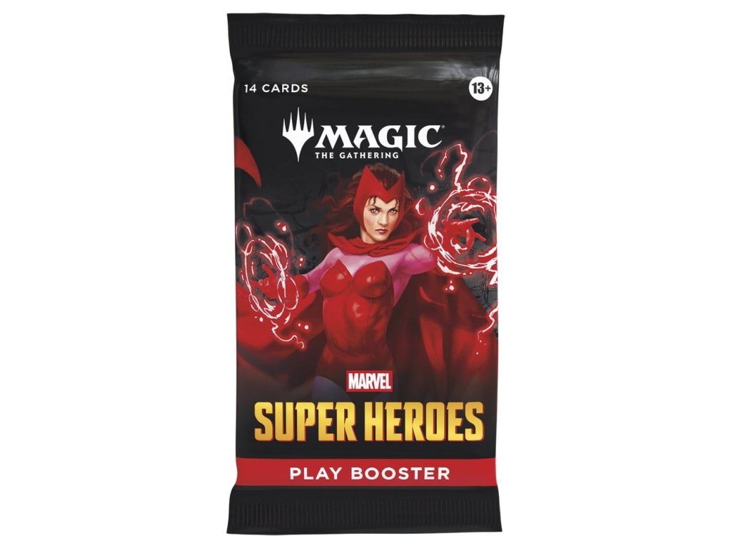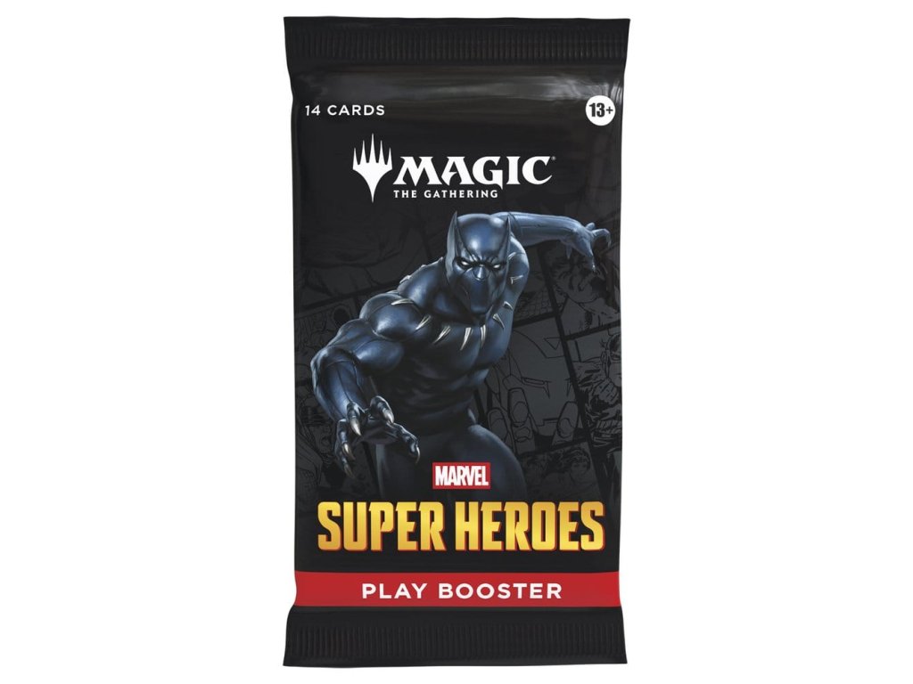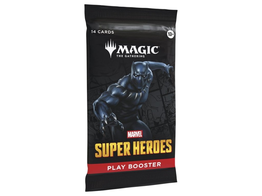 Marvel Universe dorazilo naplno! Hvězdnou sestavu těžkých váhařů skáče z komiksů na bojiště a osud světa je v rovnováze. Vzlétněte, udeřte a rozdejte si cestu k vítězství v Magic: The Gathering Marvel Super Heroes! Hrací boostery jsou ideální pro hraní s přáteli a otevírání balíčků jen pro zábavu. Každý balíček obsahuje 14 karet, včetně 1–4 karet s vzácností Rare nebo vyšší a 3-5 Uncommon, 6-9 Common a 1 Land karty. 1 karta jakékoliv vzácnosti je tradiční Foil. Foil Bezrámový Mythic v <1% z boosterů. Tradiční Foil Land nahrazuje Land v 20% boosterů.