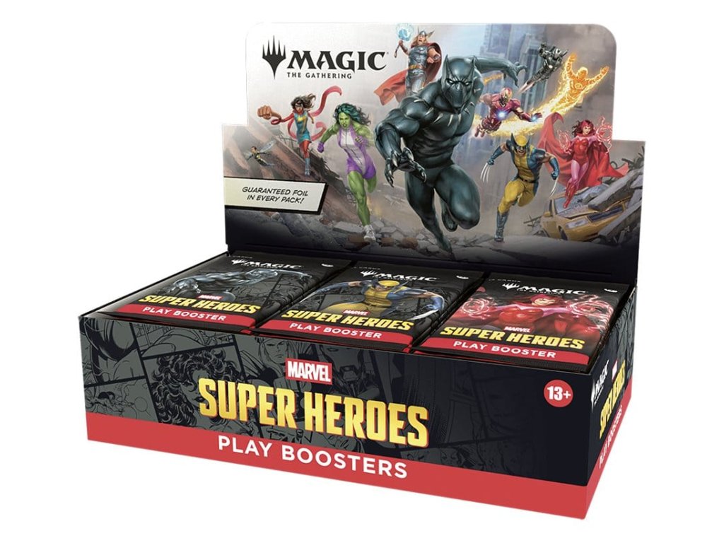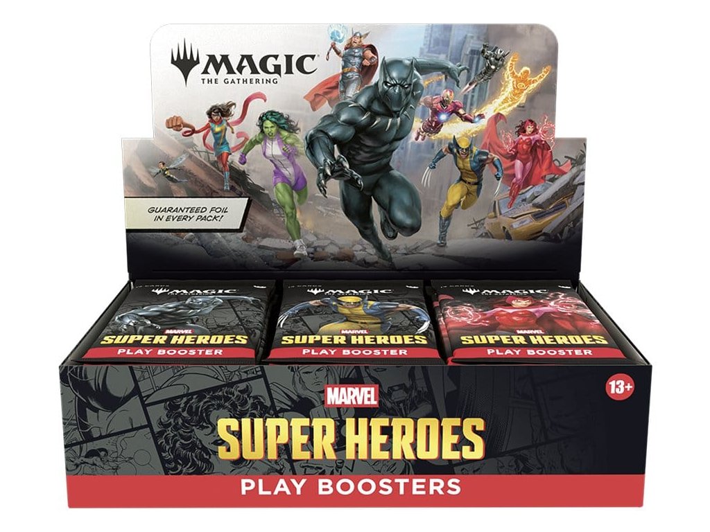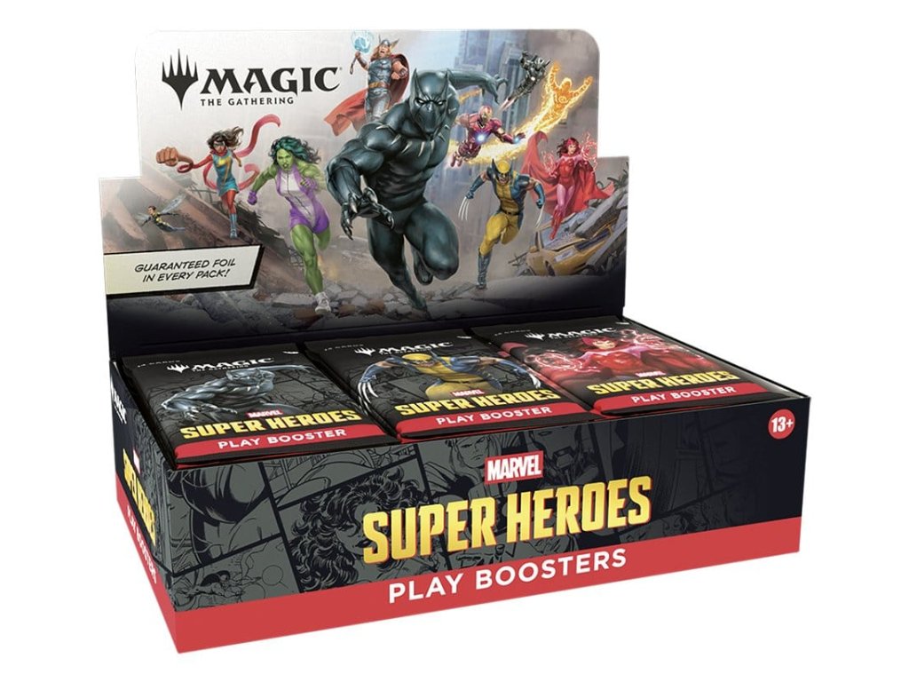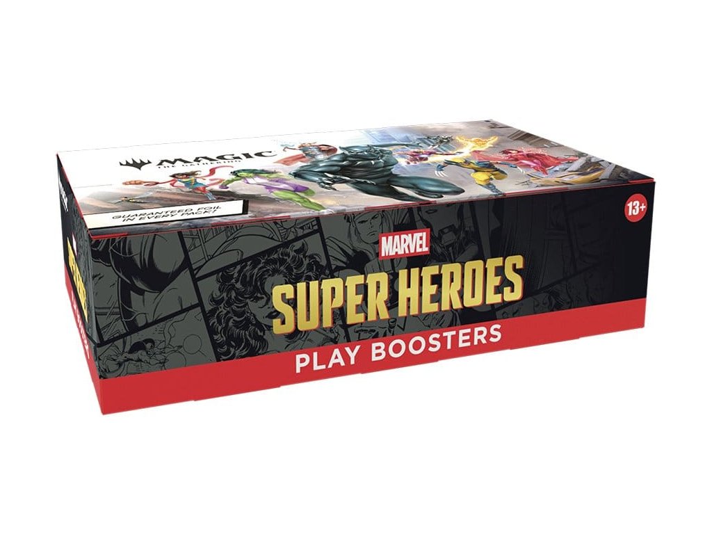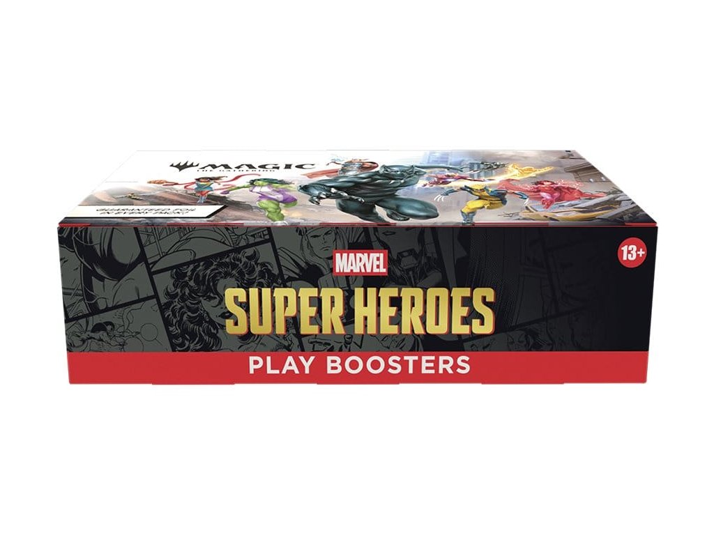 Marvel Universe dorazilo naplno! Hvězdnou sestavu těžkých váhařů skáče z komiksů na bojiště a osud světa je v rovnováze. Vzlétněte, udeřte a rozdejte si cestu k vítězství v Magic: The Gathering Marvel Super Heroes! Hrací boostery jsou ideální pro hraní s přáteli a otevírání balíčků jen pro zábavu. Každý balíček obsahuje 14 karet, včetně 1–4 karet s vzácností Rare nebo vyšší a 3-5 Uncommon, 6-9 Common a 1 Land karty. 1 karta jakékoliv vzácnosti je tradiční Foil. Foil Bezrámový Mythic v <1% z boosterů. Tradiční Foil Land nahrazuje Land v 20% boosterů.