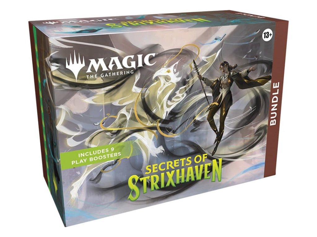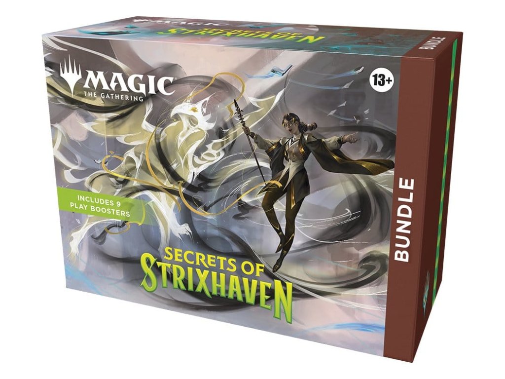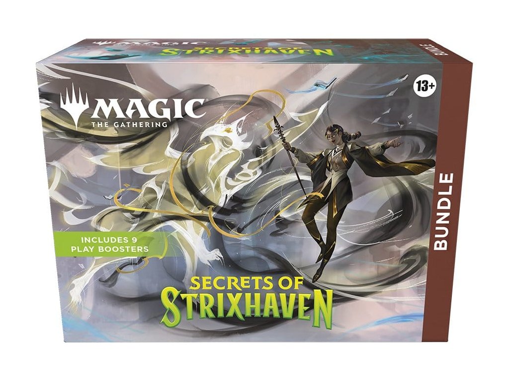 Posvátné sály Strixhavenu vás zvou zpět do školy! Vyberte si svoje kolegium magických studií a rozšiřte své vzdělání v širším světě Arcaviosu. Tato sada obsahuje 9 boosterů Tajemství Strixhaven, 1 klasickou fóliovanou kartu s alternativním designem, který je specifický pro balíček, 15 klasických fóliovaných (5 s plným uměleckým ztvárněním) a 15 ne-fóliovaných Land karet (5 s plným uměleckým ztvárněním), 1 padák pro počítání živing bodů, 1 box pro ukládání karet Tajemství Strixhavenu a 2 referenční karty.