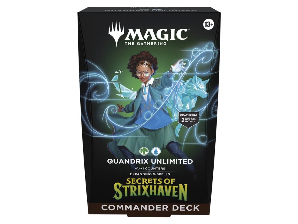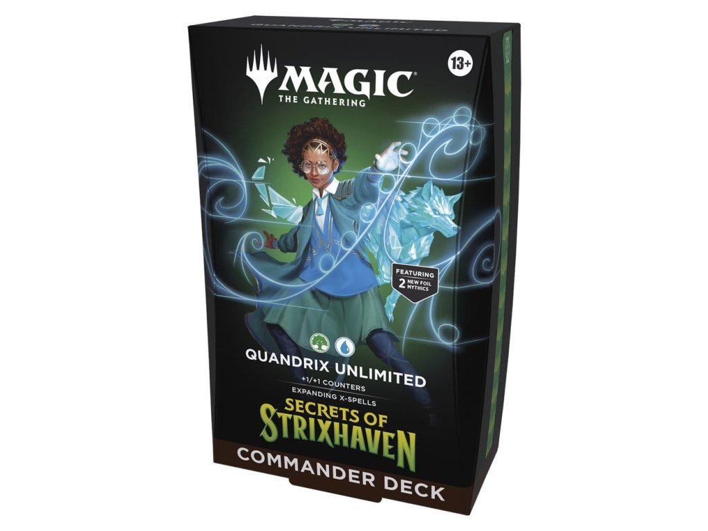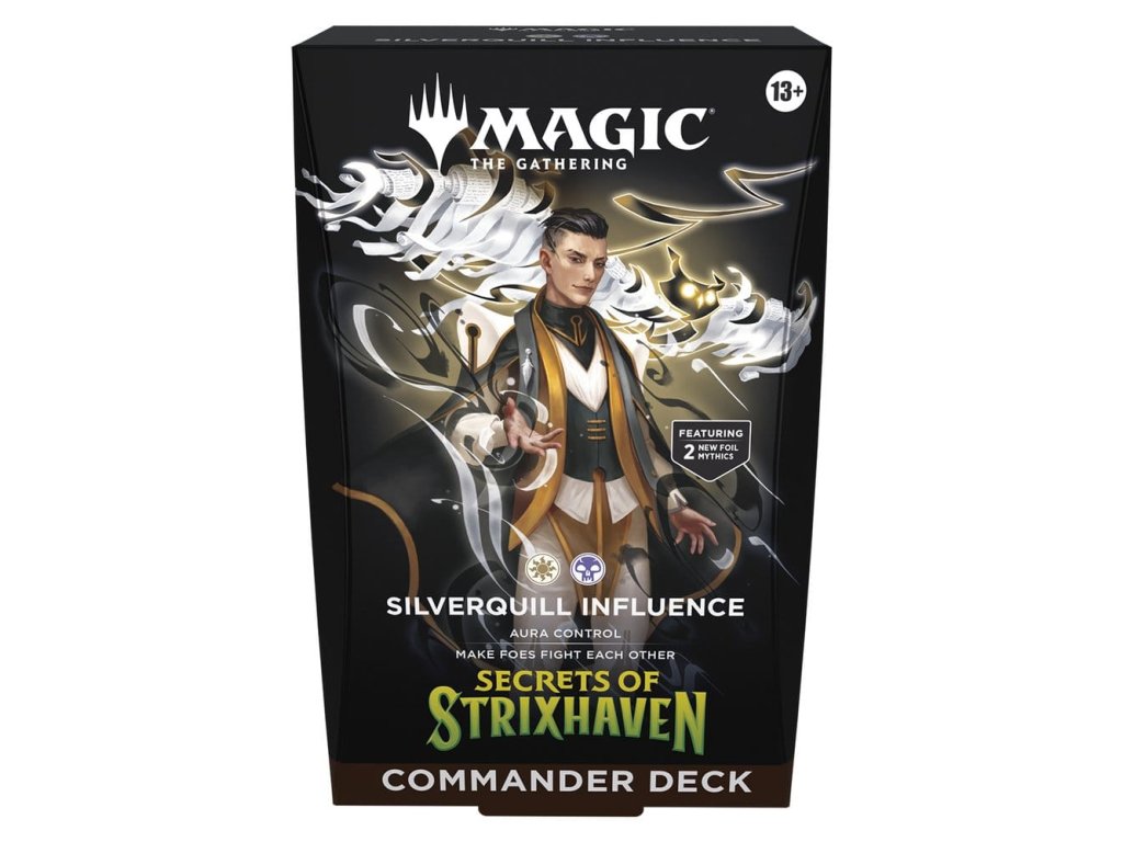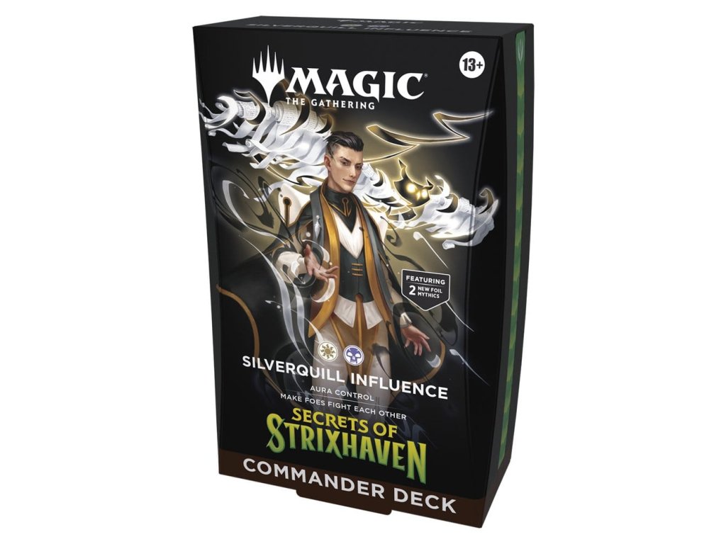 Tento svazek obsahuje všech 5 balíčků Kouzla shromažďování Tajemství Strixhaven: Silverquill Influence, Prismari Artistry, Witherbloom Pestilence, Lorehold Spirit, Quandrix Unlimited. Každý obsahuje 1 balíček se 100 kartami Kouzla (2 tradiční fóliové bezešvé karty, 98 běžných karet), 10 dvoustranných tokenových karet, 1 krabici na balíček (může pojmout 100 potažených karet), 1 průvodce strategií a 1 referenční kartu.