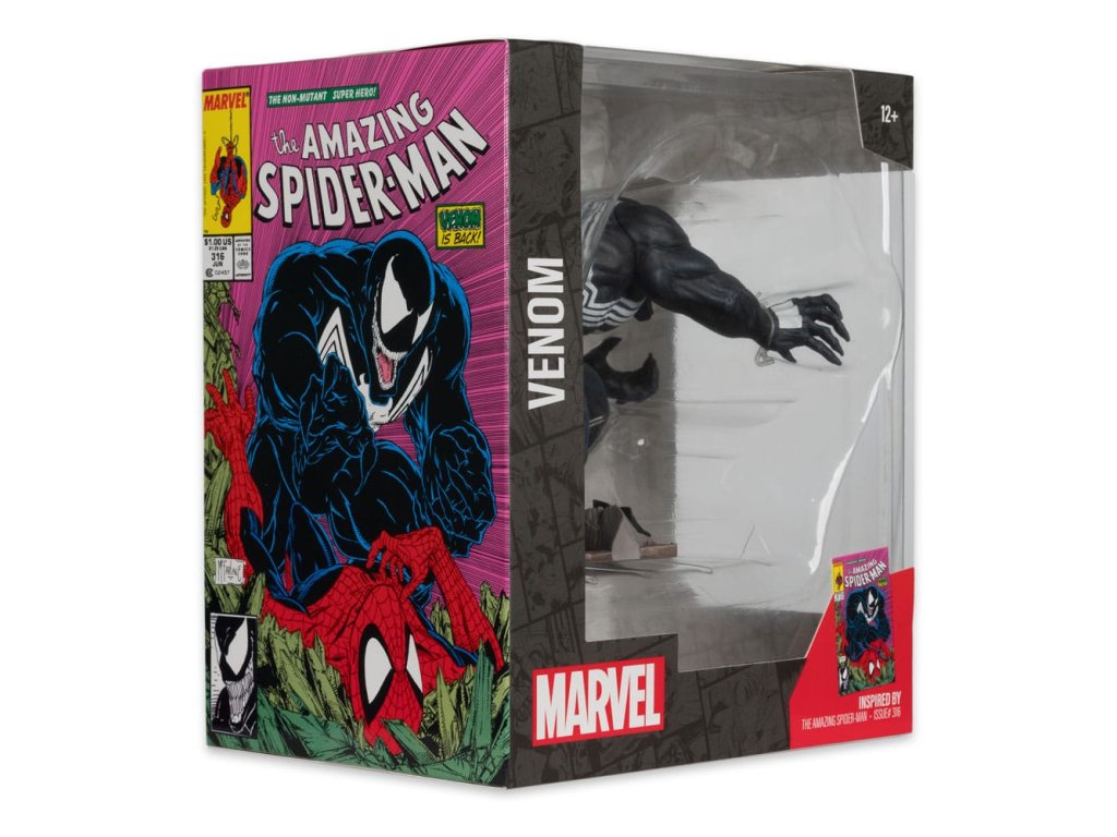 Venom se vrátil a je připraven udělat Spider-Manovi zle! Ale proč Venom tak nenávidí Spideyho? S Toddem McFarlanem u tužek je skutečnou otázkou: Kdo se stará? - Inspirováno vydáním Amazing Spider-Man číslo #316 - Kolekciová figurka v měřítku 1:10 s prostředím a pozadím scény - Součástí je umělecká karta s kresbou postavy na přední straně a stručným popisem příběhu z komiksu