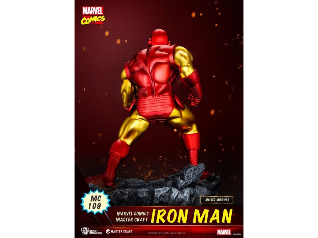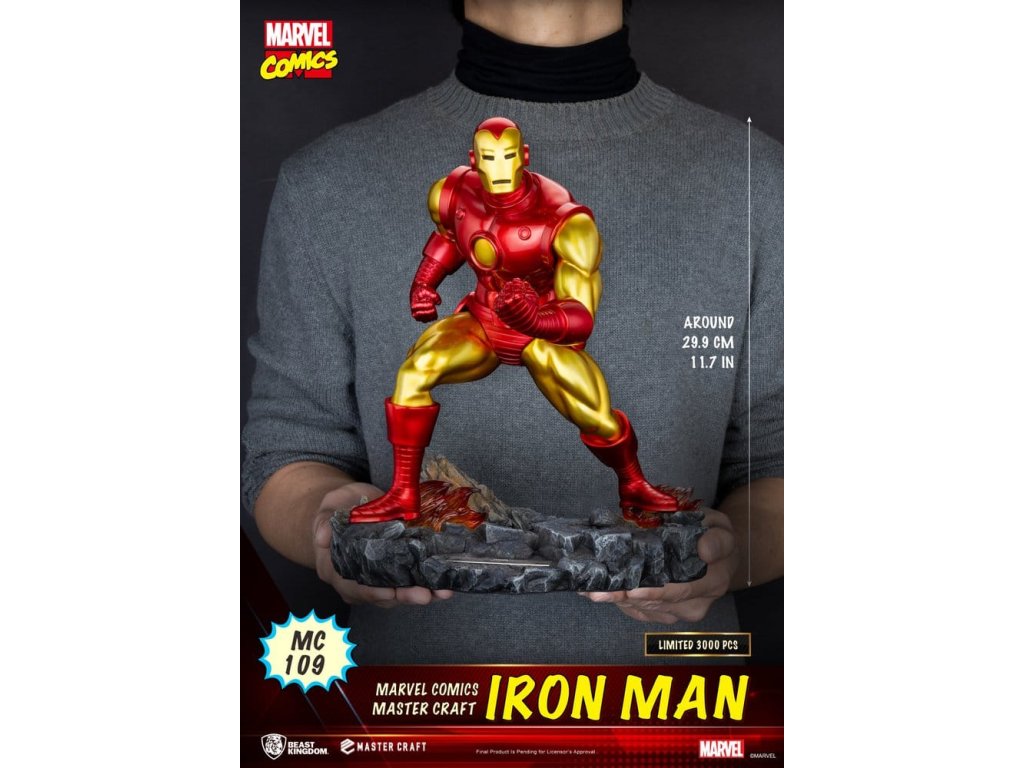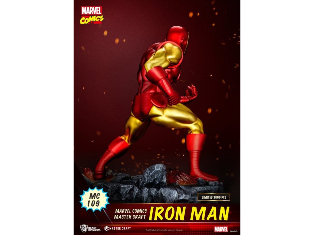 Narozen ze zářícího ohně a špičkové technologie, ikonický červený a zlatý plášť přináší Iron Mana z komiksu k životu. Série **Master Craft** od společnosti Beast Kingdom představuje oblíbený moment fanoušků inspirovaný obálkou *Nezdolný Iron Man* **#126** (1979), věrně zachycuje ikonické brnění Iron Mana a bojovou pózu. Vysoká přesnost 3D modelování a prémiový metalický lak zdůrazňují ostré linie panelů, vrstvené brnění a ikonický reaktor obloukového světla na hrudi ve zlatém a červeném lesklém provedení. Nízká póza a skálová bitevní základna se zničeným kamením a efekty připomínající lávu zvyšují akci ze všech úhlů. Limitováno na **3,000 kusů na celém světě**, každý kus zahrnuje exkluzivní číslovanou kovovou destičku s názvem - určenou pro oddané sběratele Marvelu. "Obviněný z vraždy, Iron Man bojuje proti muži jménem... KLADIVO!" Přineste Iron Mana z komiksů domů a udělejte z něj středobod své sbírky Marvelu.