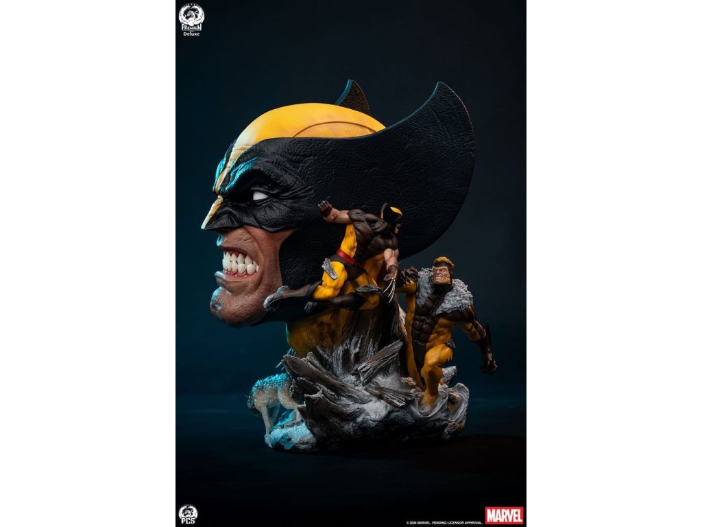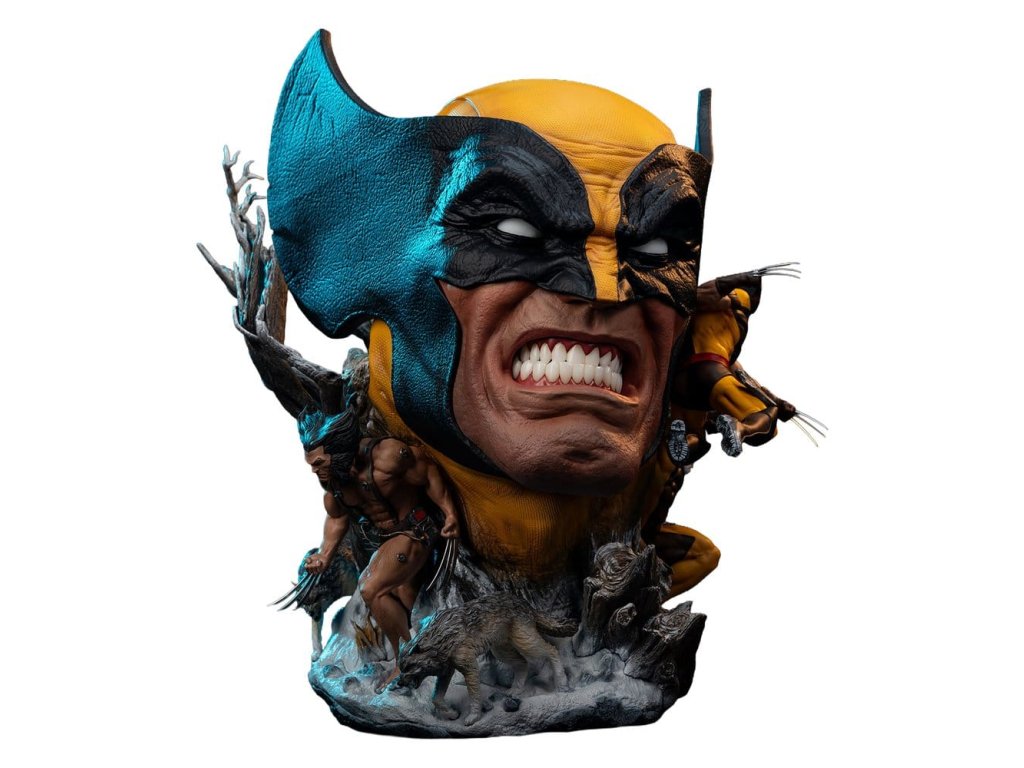 Premium Collectibles Studio s hrdostí představuje Marvel Wolverine Umělecká Busta Deluxe Edition, nejnovější v naší řadě pečlivě vypracovaných poct nejvíce vzrušujícím postavám a příběhům Marvel Universe. Tento plně sochařsky zpracovaný sběratelský předmět je téměř 20'' vysoký a soustředí se na nádherně vytesaný portrét Wolverinea se skutečných texturou na kostýmu a mistrovsky vytvořenými akrylovými zuby, které přivádějí Wolverinovu charakteristickou úškleb k životu. Podstavec také prezentuje dva scénáře nezbytné pro historii postavy: Jeho putování mrazivou divočinou po útěku z zařízení Weapon X a bitvu s jeho celoživotním nepřítelem, Sabretoothem. Scéna Weapon X zobrazuje divokého testovacího subjektu, jak se brodí sněhem se svými drápy odhalenými a párem vlků po jeho bocích. Na druhé straně busty je Wolverine zobrazen v plném kostýmu, vrhající se do bitvy proti svému úhlavnímu nepříteli Sabretoothovi. Tato Deluxe Edition prezentuje Wolverinea v jeho klasickém hnědém a žlutém kostýmu. Přidejte ultimátní středobod do své sbírky Wolverine a ještě dnes si pořiďte Wolverine - Fine Art Busta Deluxe Edition od PCS! *Omezená edice: 250