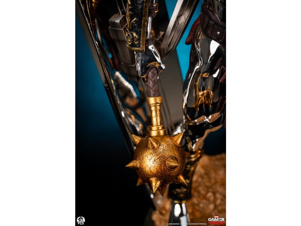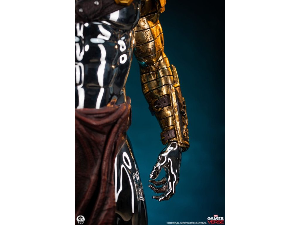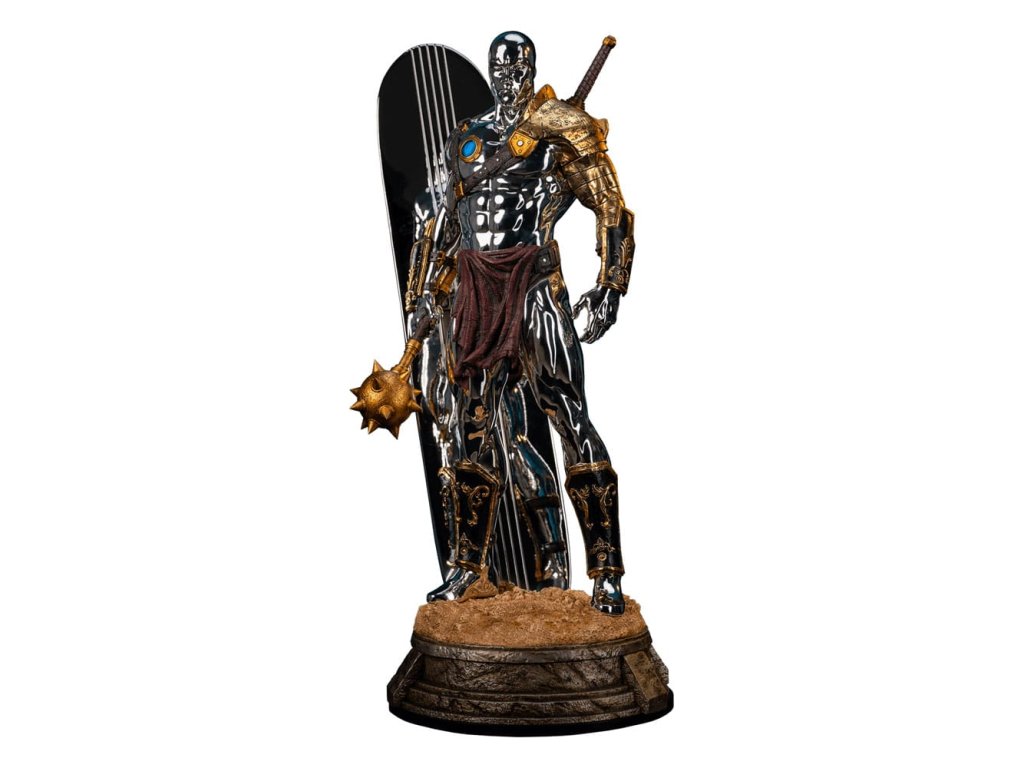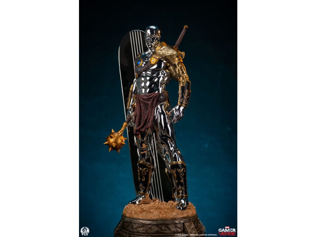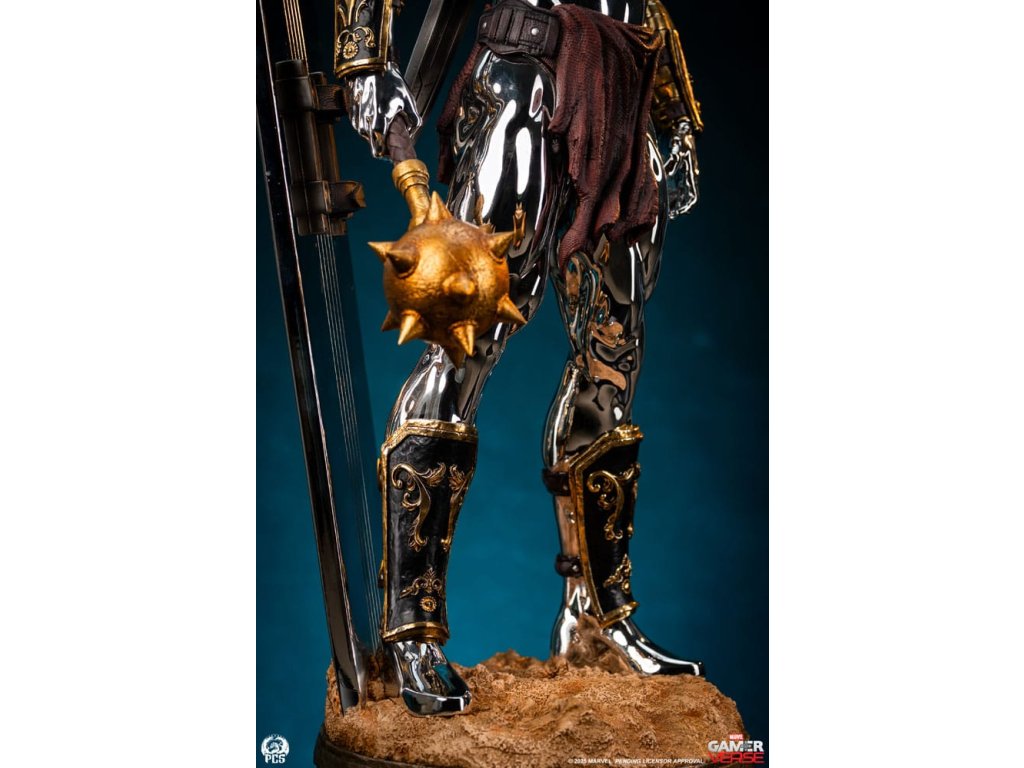 Studio Premium Collectibles s hrdostí představuje Silver Surfer - sochu v měřítku 1:3, inspirovanou hvězdným poslem ve variantě gladiátora v nesmírně oblíbené mobilní hře Marvel Snap! Tato úchvatná sběratelská položka, vysoká impozantních 77 cm, zachycuje nepohnutou intenzitou Silver Surfera ozbrojeného proti své vůli (díky modrému ovládacímu disku připevněnému na hrudi) v bojových jámách Sakaaru. Tato populární podoba klasické postavy Marvelu je vyzdobena různorodou zbrojí a zbraněmi slepenými z improvizované arzenálu arény. Hrubý bronzový náprseník na jeho levém rameni je pokrytý poškozeními a spojuje se s řadou popruhů, které také slouží jako pouzdro pro obrovský meč na jeho zádech. Jeho bohatě zdobené rukavice a holeňové chrániče, spolu s cihlově červenou zástěrou, dávají tomuto galaktickému cestovateli výrazně římský vzhled, což je vhodné pro obrovskou arénu, v níž je držen jako rukojmí. Samotný Silver Surfer je pokrytý oslnivou, odrazivou chromovou vrstvou od hlavy až k patě. Tato vrstva ještě více vyniká na pozadí opotřebované zbroje a zbraní, kterými je ozdoben. V pravé ruce drží ostnatý palcát, zatímco za ním jeho ikonický surfboard, proměněný v improvizovaný štít, vyčnívá z podstavce, který je vytesán s realistickou texturou písku, aby navodil pocit drsného terénu. Nastavte kurs pro dobrodružství a dnes přidejte sochu Silver Surfer v měřítku 1:3 od PCS do své sbírky Marvel Gamerverse! Limitovaná edice: 250 kusů Velikost: 77 x 39 x 32 cm