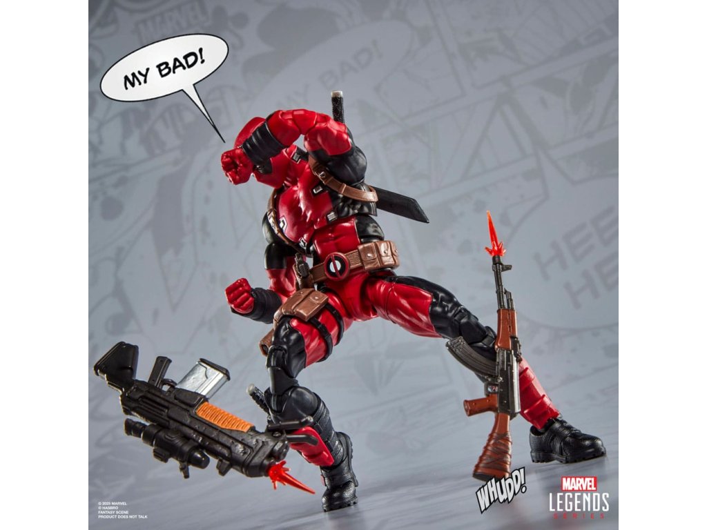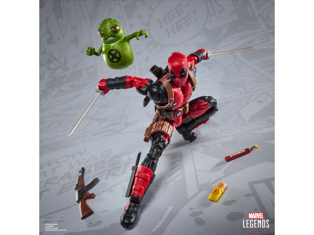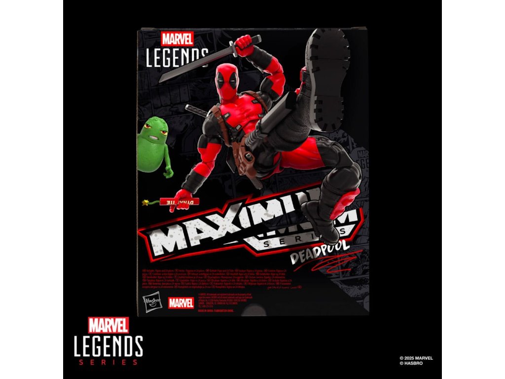 Přineste vzrušení a kouzlo vesmíru Marvel do své sbírky s figurkou Deadpool ze série Marvel Legends Maximum od firmy Hasbro! Tato sběratelská figurka je detailně zpracována tak, aby vypadala jako postava z komiksů Deadpool, X-Men a X-Force od Marvelu. 6palcové figurky Marvel jsou plně artikulovány s pohyblivou hlavou, pažemi a nohami. Sada akčních figurek série Maximum je napěchovaná 24 doplňky, včetně: alternativní hlavy; 2 ukazovací ruce; palec nahoru, v ruce vítězství, 2 pěsti, 2 úchopové ruce, nůž, 2 meče, blástr, 3 efekty výbuchu, tyč dynamitu, chimichanga (pro případ, že byste měli hlad) a doplňky zbraní; plus ten roztomilý brambor Doop s průhledným stojanem na vznášení. 6palcový měřítko akčních figurek Hasbro Marvel je skvělé pro pózování a vystavování ve sbírkách fanoušků. Představte si na své poličce scény inspirované komiksy Deadpool, které narušují čtvrtý rozměr, s akčními figurkami Marvel Legends.