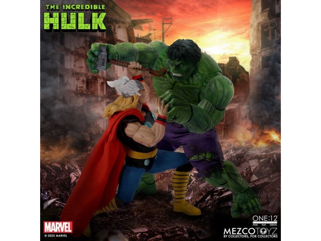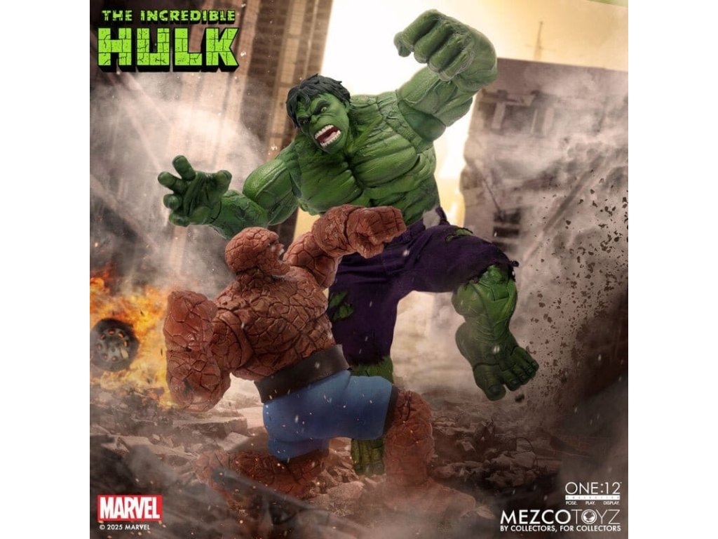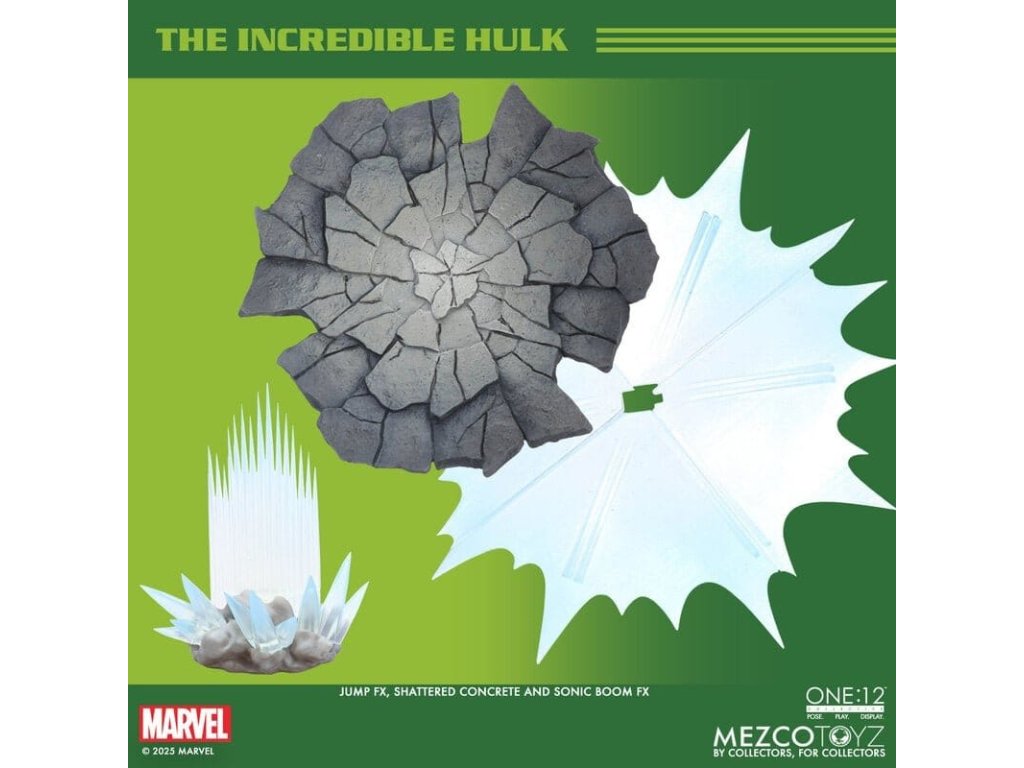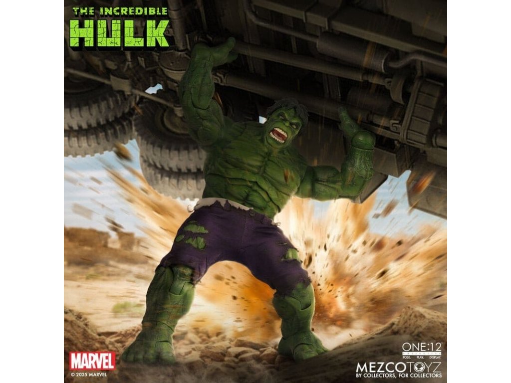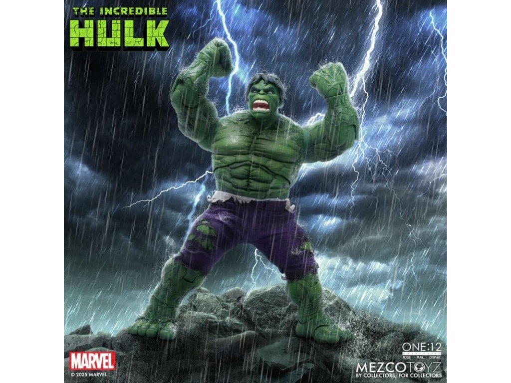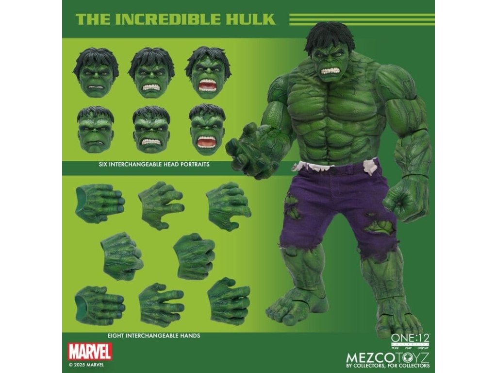 Neuvěřitelný Hulk se prorazil do řady The One:12 Collective s neústupným vztekem a nezastavitelnou silou. Tato mohutná 19 cm postavička Hulk je zachycena v plné síle gama paprsků, postavena na zbrusu novém, hyper-artikulovaném těle navrženém k projevování syrové, řádící energie. Hulk je oděn do svých typických potrhaných kalhot ušitých ze speciálního strečového džínovinu a je připraven SMASH. Kompletně vybaven 6 výrazovými hlavami, které zachycují každou fázi jeho náladových výkyvů, od ponurého přes rozzuřený až po plně vyhrocený řádící záchvat. Hulk je také vybaven sbírkou silných FX doplňků, díky kterým může zrekonstruovat své nejikoničtější pohyby: hromový potlesk, který rozechvívá bitevní pole, skok do vzduchu poháněný dynamickou skokovou základnou, a INCREDIBLE One:12 Collective země otřásající dopadovou základnou s pohyblivými troskami. SOUBOR THE INCREDIBLE HULK THE ONE:12 COLLECTIVE OBSAHUJE: - 1 x tělo One:12 Collective s více než 32 artikulačními body - Ručně malované autentické detaily - Výška přibližně 19 cm - 6 vyměnitelných hlavových portrétů - 15 vyměnitelných rukou KOSTÝM: - 1 x potrhané strečové kalhoty (fialový odstín) DOPLŇKY: - 1 x pár pěstí pro efekt SMASH (L&R) - 1 x efekt hromového tlesku - 1 x skákací základna - 1 x základna dopadu s 7 pohyblivými kusy rozbitého betonu - 1 x ohýbatelný lampión - 1 x ohybný I-nosník - 1 x zobrazovací základna One:12 Collective s logem - 1 x nastavitelný displejový sloupek One:12 Collective The Incredible Hulk je balen v sběratelsky přívětivé krabici, která je navržena s ohledem na sběratele.