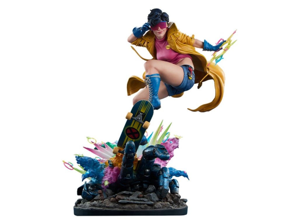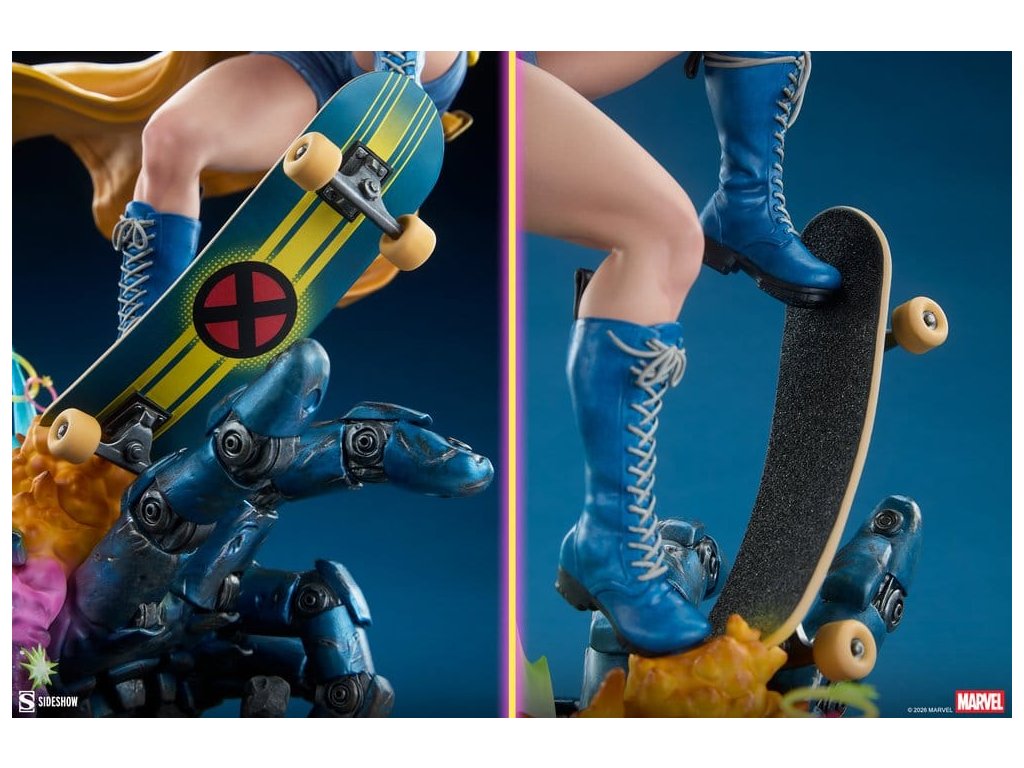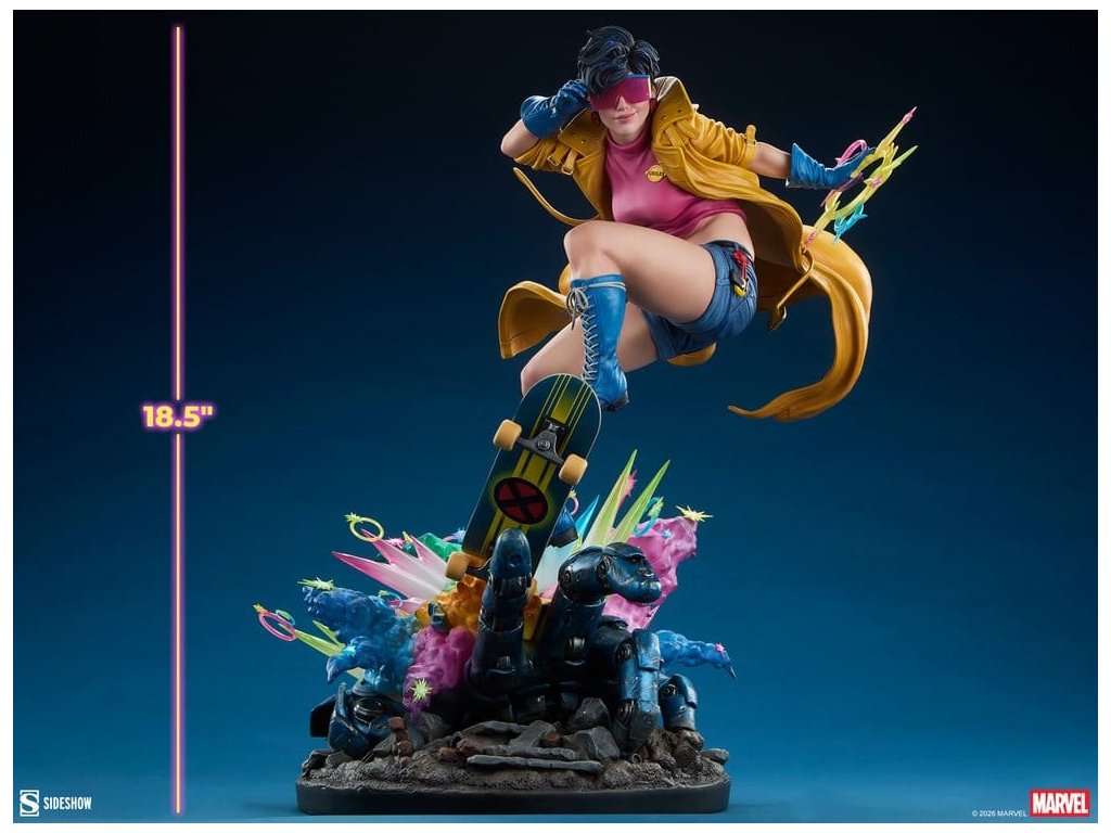 Sideshow představuje sochu Jubilee Premium Formát ™, hravý sběratelský předmět Marvel, který je připraven rozsvítit ohňostroj na vaší displeji. Figurka Jubilee Premium Formát ™ měří 18,5 palce (47 cm) na výšku, 16,3 palce (41,4 cm) na šířku a 13,3 palce (33,7 cm) na hloubku, jak tato odvážná mutantka vstupuje na scénu plná barvy a charismatu. Hlasitě, hrdě a nikdy se nevzdává, postava Jubilation Lee má ve své ruce ohňostroj ve tvaru hvězdy. Cvičená gymnastka Jubilee provádí ollie na specializovaném skateboardu, rámovém super nabitémi výbuchy plasmy. Ať už jde do nákupního centra nebo bojuje proti Sentinelům, tahle holka opravdu ví, jak cestovat s grácií. Na základě vzhledu postavy v komiksech Marvel je tato plně sochařská sběratelská figurka X-Menů zobrazuje Jubilee ve svém létajícím oblečení devadesátých let. Má na sobě žlutý trenchcoat, růžový krátký top, modré kraťasy, stejně tak barvou laděné boty a rukavice plus přívěsek na klíče. Čtvrtletní Marvelova socha obsahuje dvě portréty: jeden vykazuje nadšení Jubilee typu bubblegum-pop a druhý má ochranné brýle. Ty vícebarevné výbuchy na základně svítí díky LED podsvícení, což dodává Jubilee ještě více světla. Napněte, pokrakujte, pukněte figurkou Jubilee Premium Format ™ do své sbírky dnes! Rozměr produktu: 47 x 41 x 34 cm. Orientační datum vydání: leden 2027