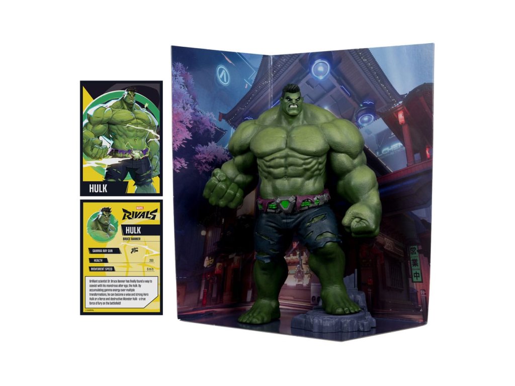 Vynikající vědec Dr. Bruce Banner konečně našel způsob, jak koexistovat se svým monstrózním alter egem, Hulkem. Shromažďováním gama energie přes několik transformací se může stát moudrým a silným Hrdinou Hulkem nebo divokým a destruktivním Monstrem Hulkem - skutečnou silou zuřivosti na bojišti! - Insipováno sérií Marvel Rivals - Sběratelský model v měřítku 1:6 s prostředím a scénickým pozadím - Stojí přibližně 27 cm vysoký - Zahrnuje komiks Marvel Rivals číslo 1 - Obsahuje sběratelskou uměleckou kartu s kresbou postavy - Sbírejte všechny sběratelské předměty McFarlane Toys Marvel a Marvel Rivals