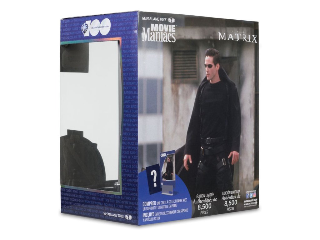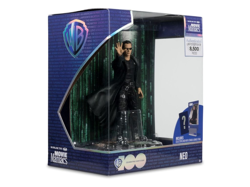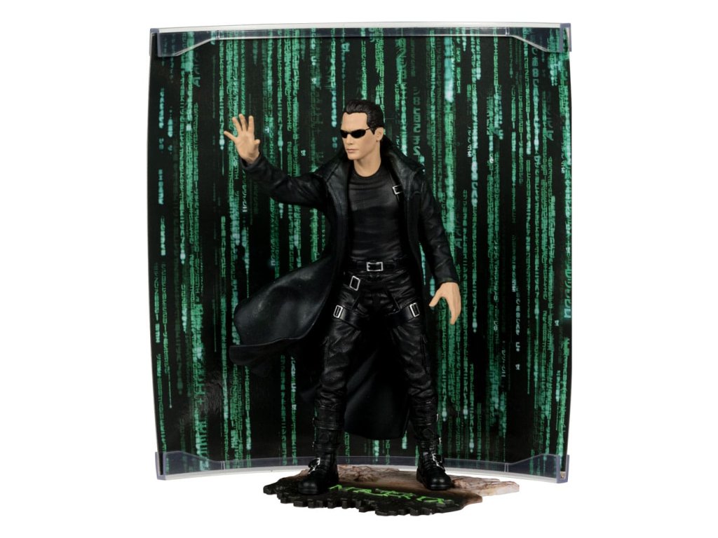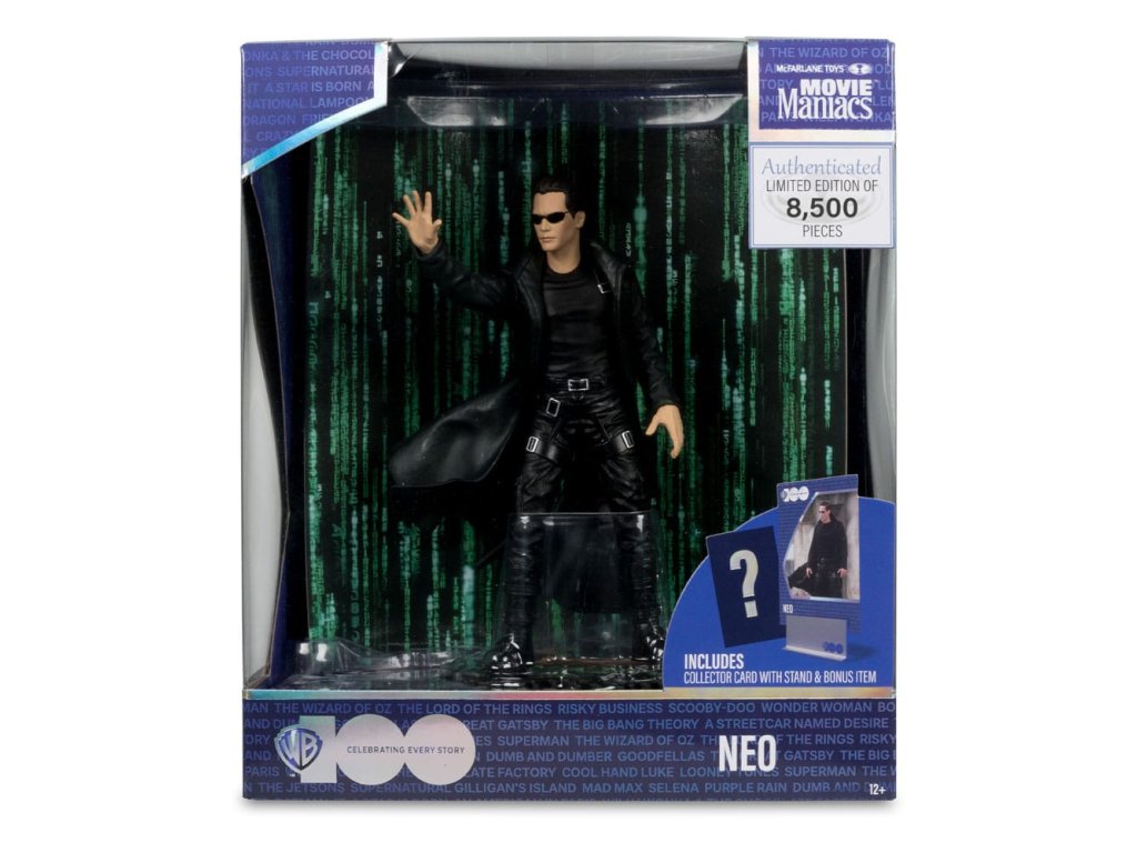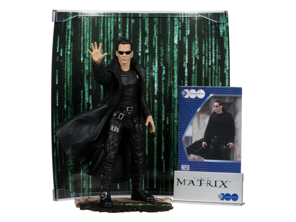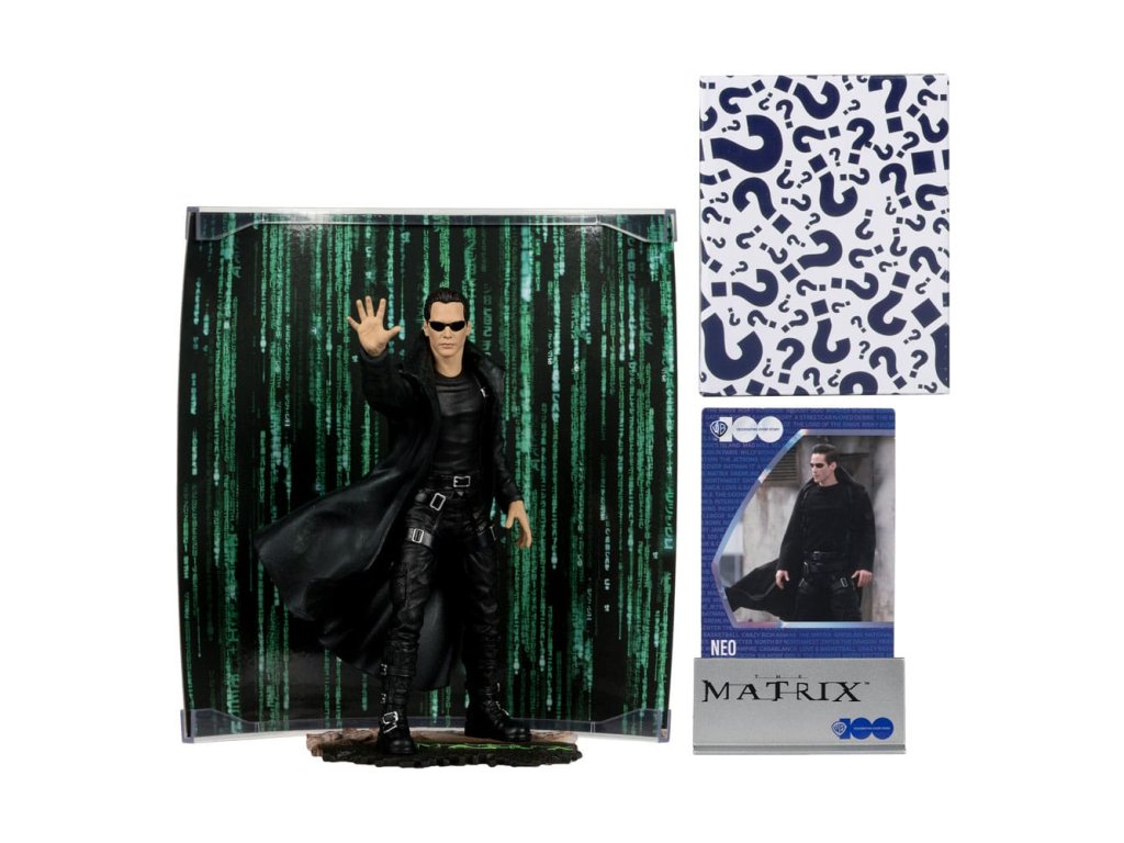 Neo je mladý softwareový inženýr a dočasný hacker, který je vybrán nějakými tajemnými postavami, které ho chtějí uvest do tajemství matrixu. Zdá se, že ho sleduje také policie, a on se rozhodne zjistit, co vždy tušil: že svět není zcela takový, jakým se zdá, a že v pozadí funguje zlomyslné spiknutí. - Nesmírně detailní omezená edice 15cm postavy - Obsahuje scenický tištěný pozadí a základnu pro zobrazení prostředí - Obsahuje uměleckou kartu s číslovaným certifikátem pravosti a držákem karet. Přiložené skryté překvapení.