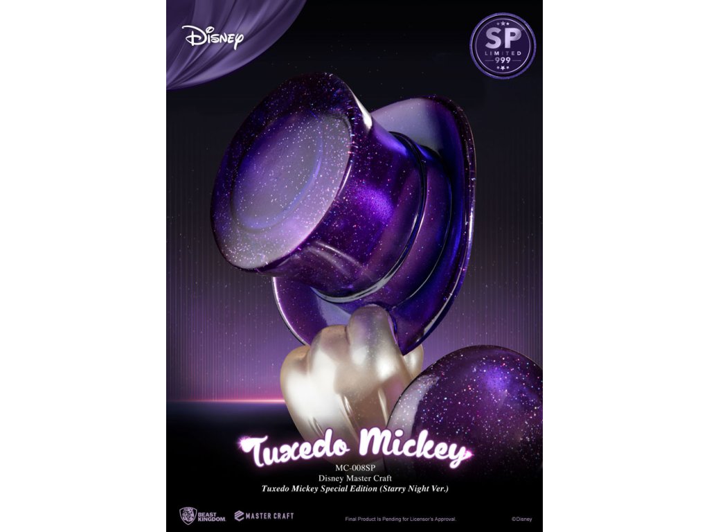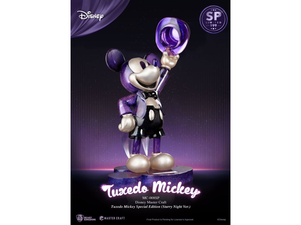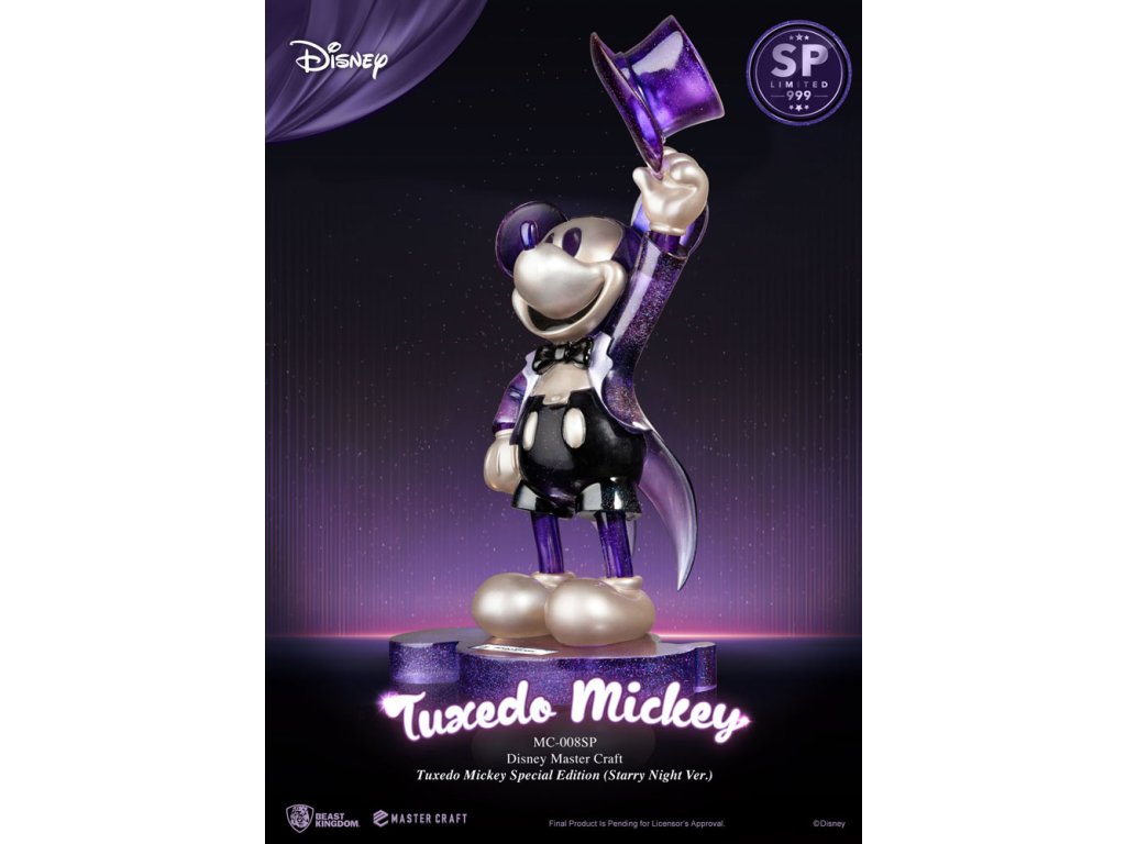 Mickey Mouse, nejikoničtější postava Disney v historii, se vrací v záři Master Craft, připravena ohromit fanoušky po celém světě! Tato ikonická postava, která byla poprvé představena světu v roce 1928, se stala oficiálním maskotem Disney a všech Disney parků, dokonce má svou vlastní hvězdu na Hollywoodském chodníku slávy! Značka 'Entertainment Experience Brand' Beast Kingdom s hrdostí uvádí nejnovější sochu MasterCraft pro fanoušky Mickey Mouse. Toto speciální vydání přivádí k životu Hvězdnou noc v fraku Mickey, s unikátním efektem perlového světla. Ručně vyrobený, profesionálně namalovaný, jedinečný kus je limitován na pouhých 999 kusů na celém světě, což z něj dělá sběratelský kousek, který si nesmíte nechat ujít. Socha MC-008SP MasterCraft je pro fanoušky pouze těch nejlepších sběratelských návrhů. Objednejte si svoji pouze z oficiálního obchodu Beast Kingdom! Rozměr produktu: 47 x 25 x 21 cm. Limitováno na 999 kusů!Doplňkové parametry