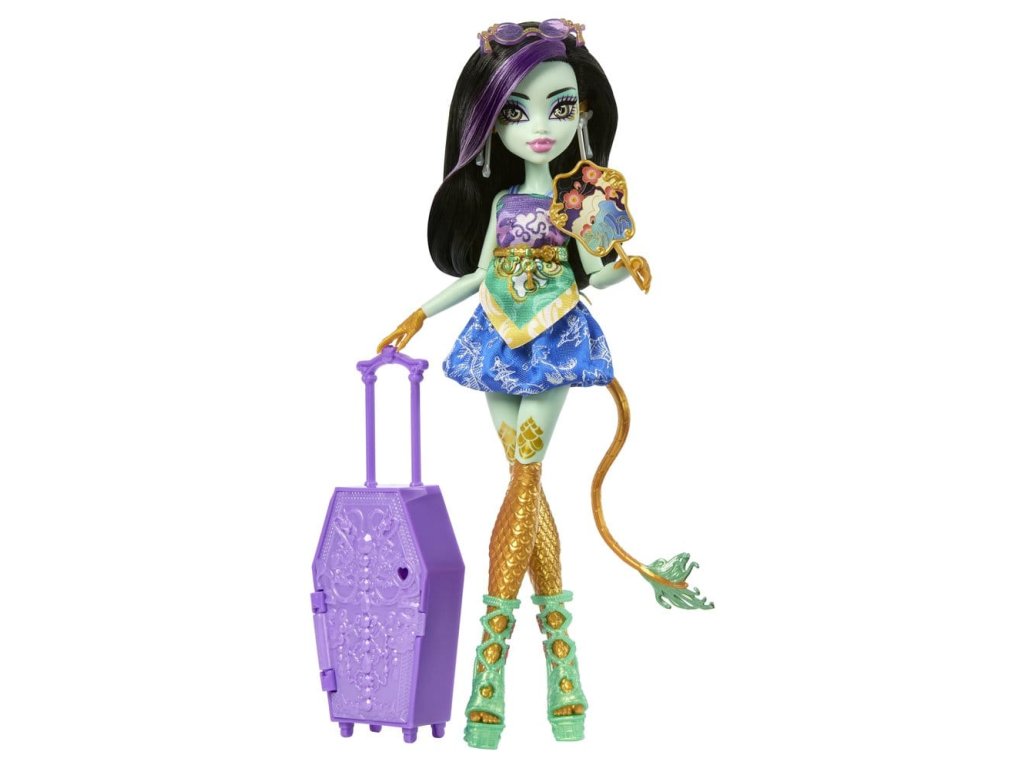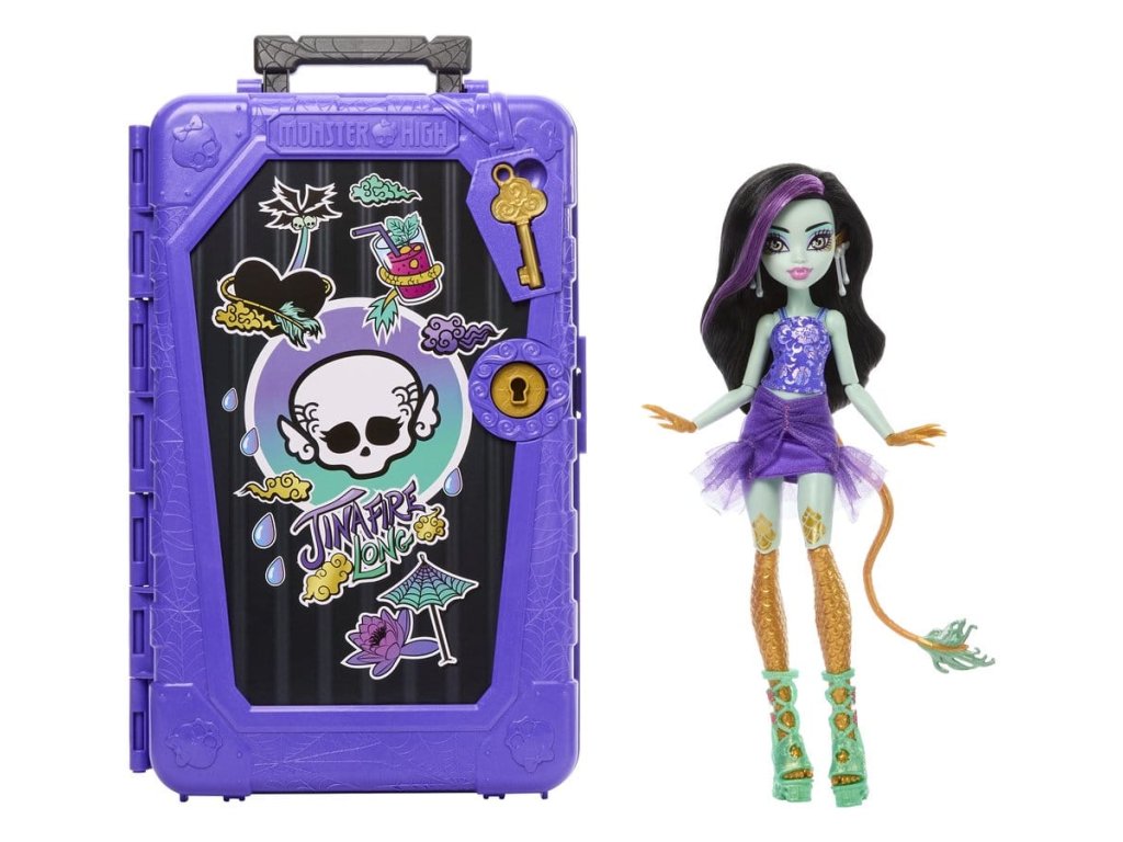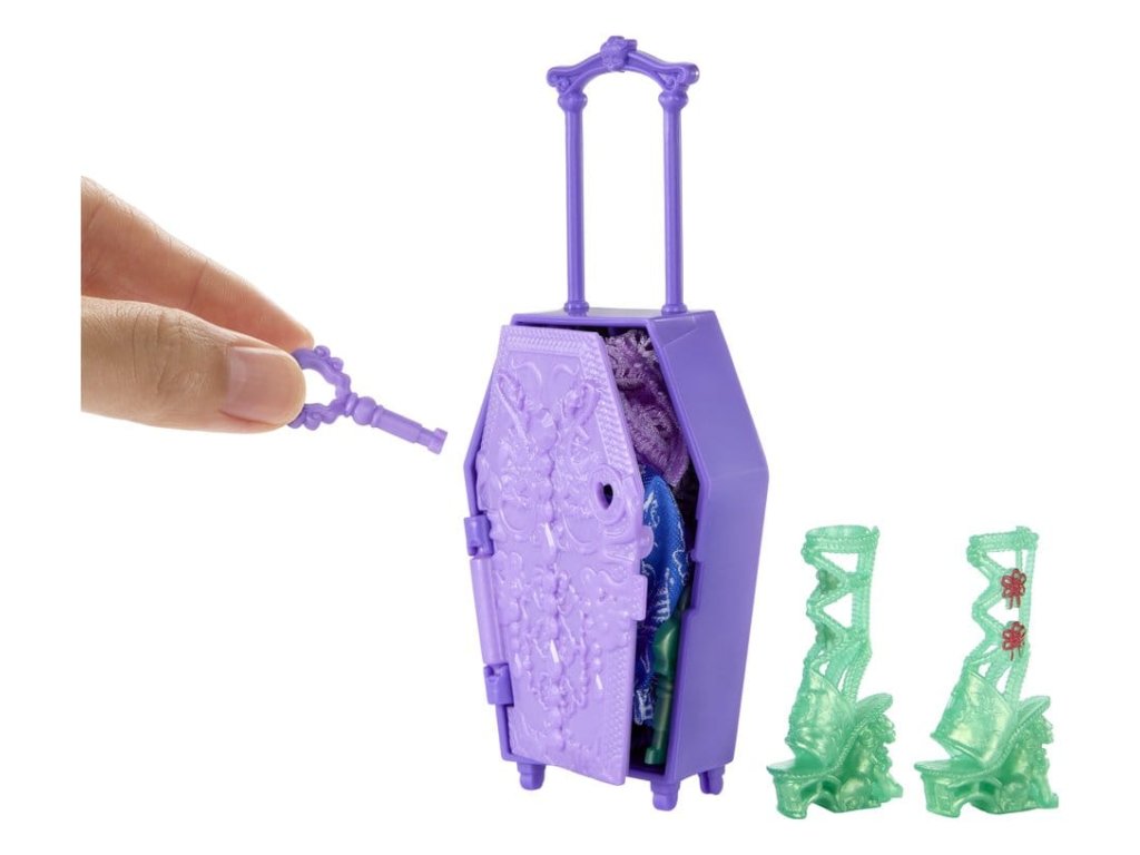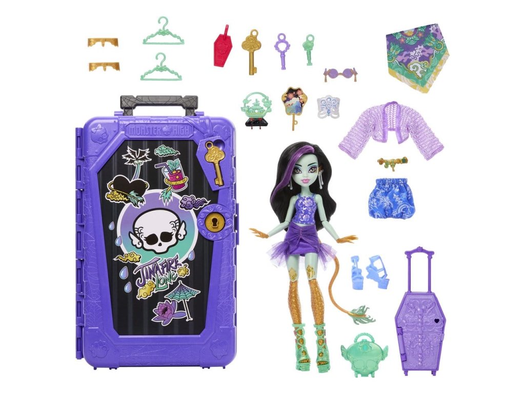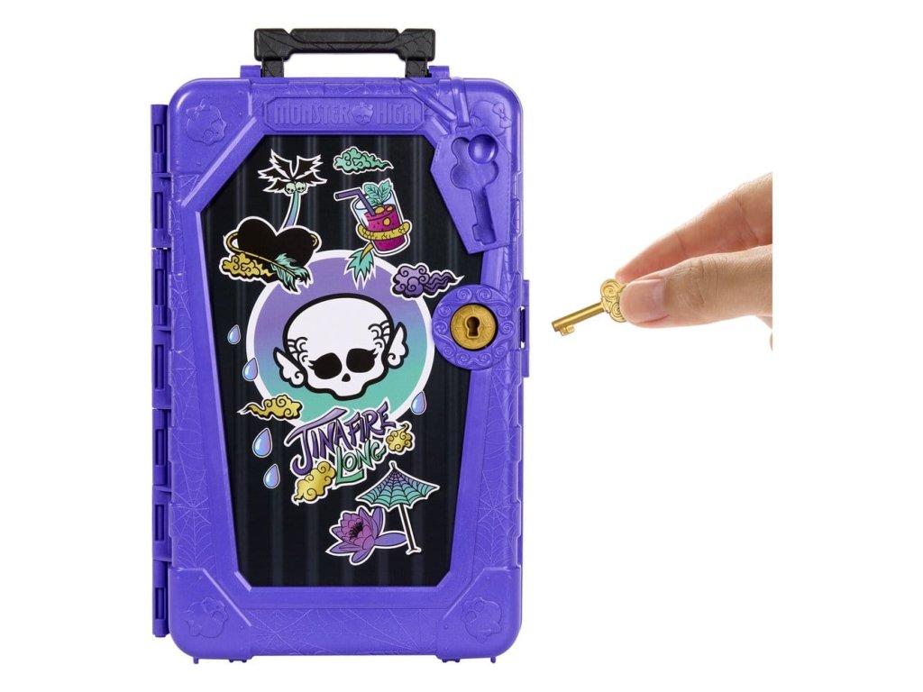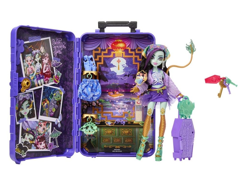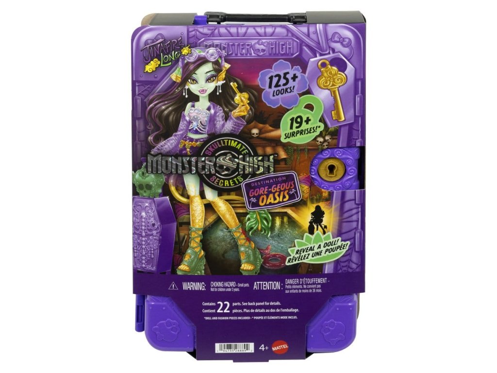 Objevte panenku Monster High s doplňky a vydejte se na cestu s Skulltimate Secrets, Cílová destinace: Nádherná oáza! Tato strašidelně krásná sada bere děti na děsivě snovou dovolenou. Sada obsahuje více než 19 překvapení. Ale nejdříve musí být postupně nalezeny tři klíče, aby bylo možné objevit cestovní oblečení a doplňky! Všechny položky se prodávají samostatně. Některé položky nejsou dostupné ve všech zemích. Plně pohyblivé. Panenky nemohou stát samy. Barvy a designy se mohou lišit.