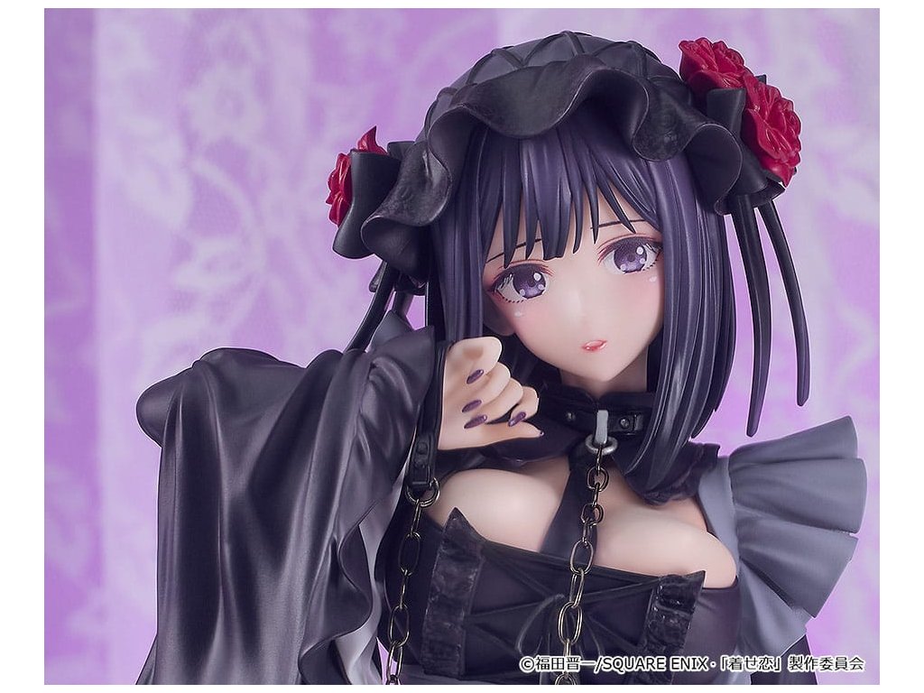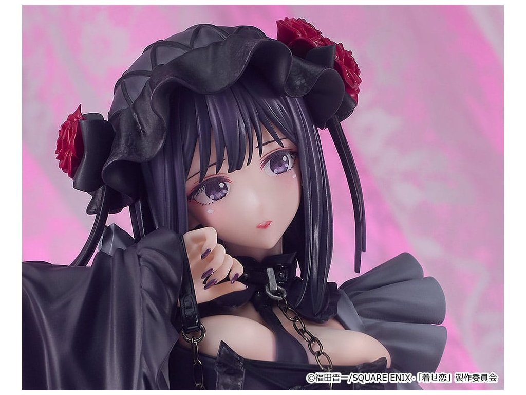 Z anime 'My Dress-Up Darling' přichází figurka ve velikém měřítku Marin Kitagawa, která se převléká za Shizuku-tan v dosud nevídané póze! Doprovázena jejími jemnými špičkami prstů, které zvedají lem svého oblečení, Marinovy stehna vykukují zpod jejího šatů, spolu s její měkkou kůží vyčnívající z výstřihu. Toto vizuální zaujetí je ještě více zvýrazněno jejím smyslným, ale přechodným výrazem. Šaty, které byly věrně zrekonstruovány ve formě figurky, mají dvojitou vrstvu plnou objemných krajkových ozdob a volánů, přičemž textura látky použité v původním designu byla převedena do života prostřednictvím dovedného sochařství a malby. Výsledkem je impozantní figurka, která fanoušky ohromí svými detaily, sochařstvím a malbou. Figurka byla pečlivě vyráběna až do nejmenších detailů, dokonce i v oblastech, které nejsou na první pohled vidět.
