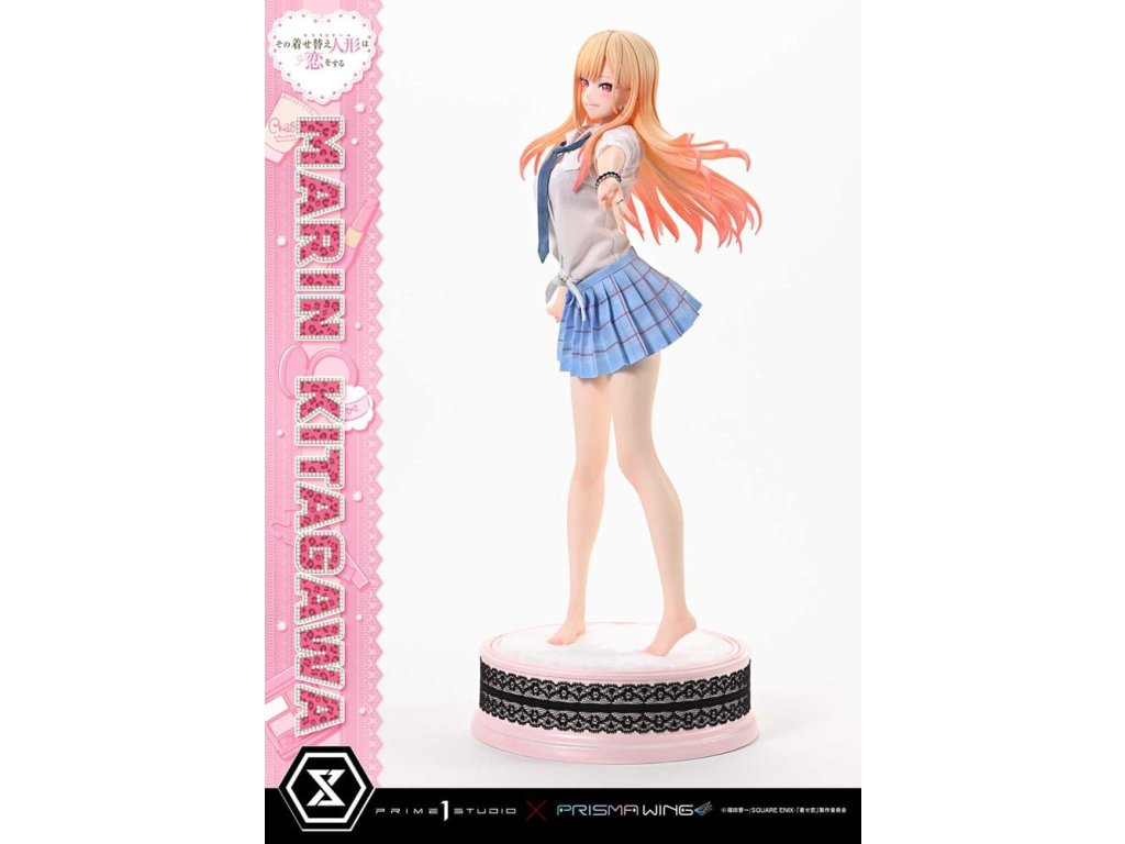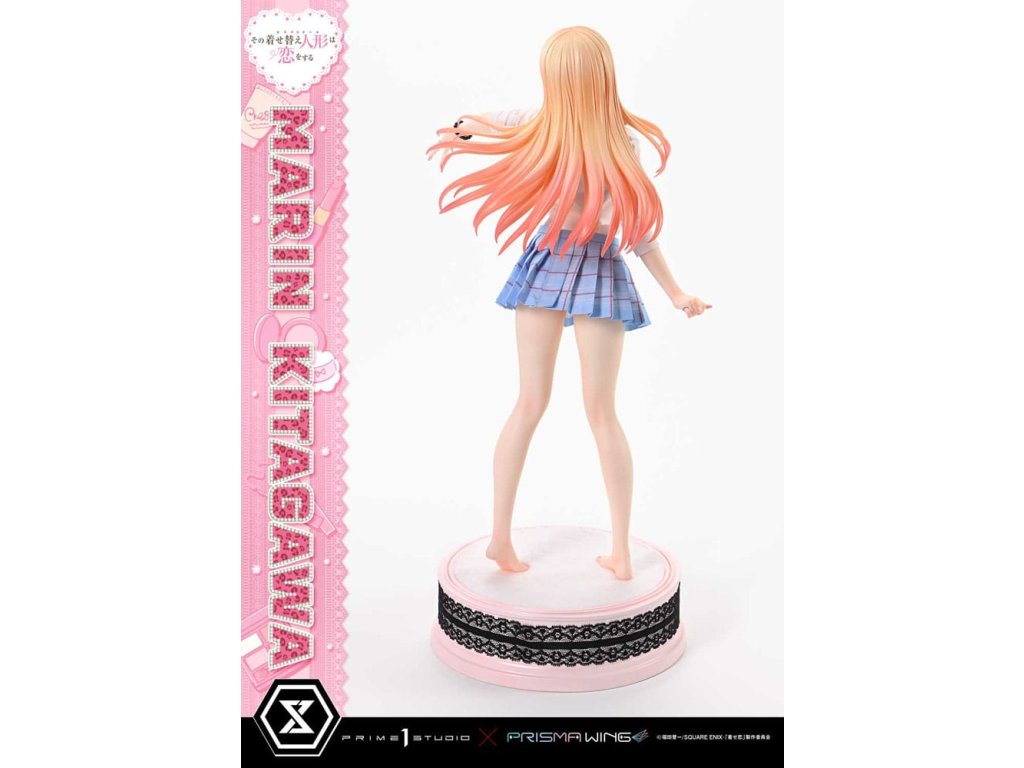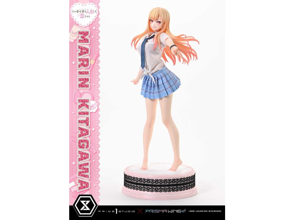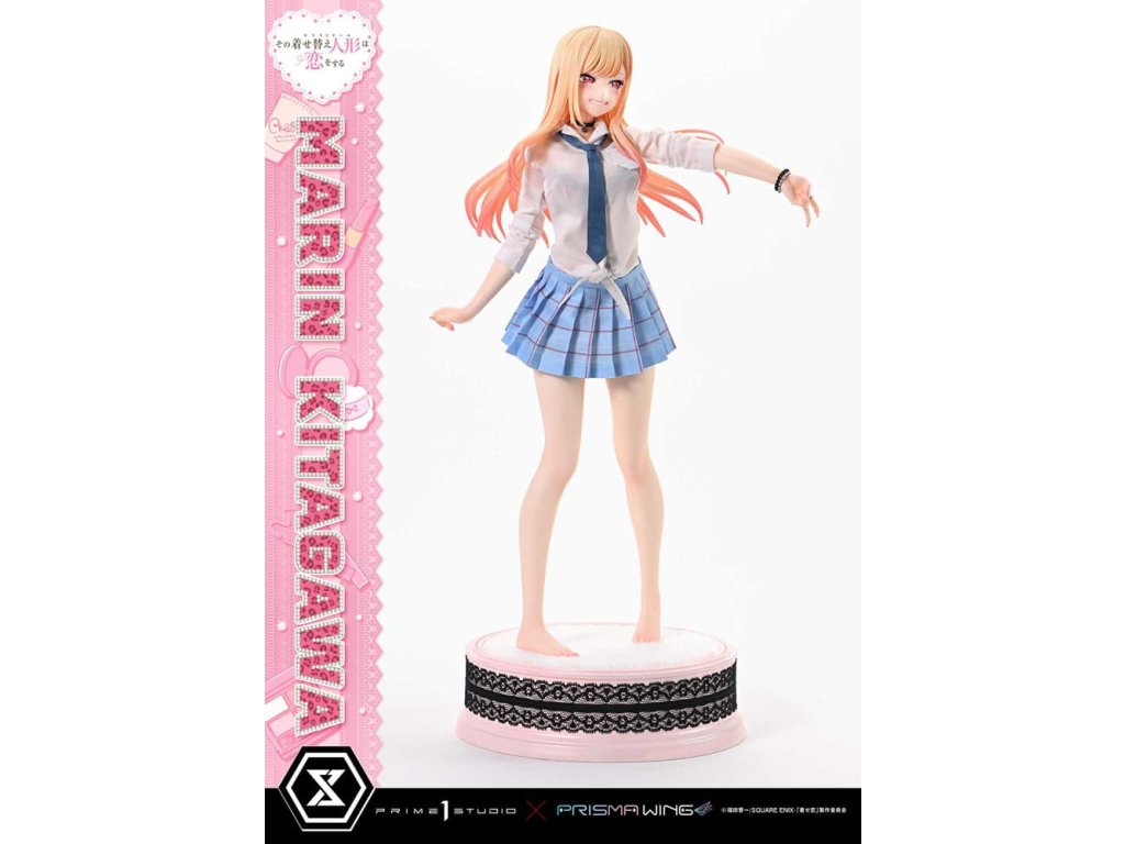 Z televizní animace My Dress-Up Darling, Marin Kitagawa přináší život ve dvou odlišných stylech. Marin Kitagawa se připojuje k sérii Premium Masterline! Tato soška v měřítku 1/4 zachycuje každou část jejího kouzla. Její přirozená póza, zobrazovaná skrze její dlouhé a štíhlé končetiny, byla pečlivě vypracována s důrazem na celkovou rovnováhu těla a jemný posun její váhy. Sběratelská soška je vysoce detailně zpracovaná, včetně výrazu tváře, tvaru těla a barvy. Její lehké, vlající vlasy, měkký ruměnec na tvářích a jemná textura její průhledné pleti - všechny dojmy z anime jsou živě přeneseny do života. Doplněk, jako je obojek, náramky a lesklé nehty, dodávají dotek elegance a noblesy. Zvlášť navržená základna, ozdobená kožešinou a krajkou, zvyšuje svěží, zářivý pocit kusu. Její školní uniforma, kravata a sukně jsou vyrobeny z opravdové látky. Materiály a velikosti byly pečlivě vybrány, aby dokonale rekonstruovaly její uvolněný, nenáročný styl. Pod uniformou odhaluje elegantní prádelník, usmívá se s módní barevnou škálou a zdravým, živým postavou. Kromě toho tato bonusová verze zahrnuje vyměnitelnou levou ruku, která umožňuje odlišnou pózu. S touto částí těsně sepne ruce a sladce hledí dopředu, což je speciální dotyk, který vás s ní ještě více zamiluje. Marin Kitagawa, krásně realizovaná ve dvou odlišných stylech - nenechte si ujít příležitost ji přidat do své sbírky!Technické parametry produktu: - Základna s tématikou My Dress-Up Darling - 1 x vyměnitelná levá ruka (signál míru) - 1 x vyměnitelná levá ruka (zavřená ruka) [BONUSOVÁ ČÁST].