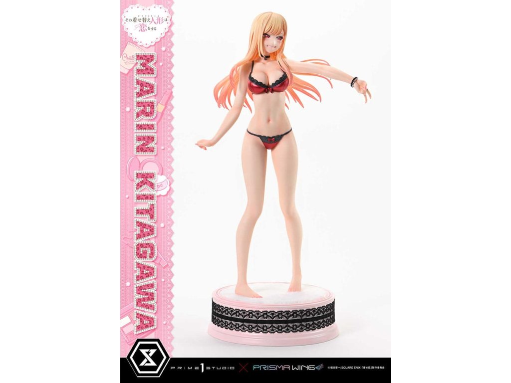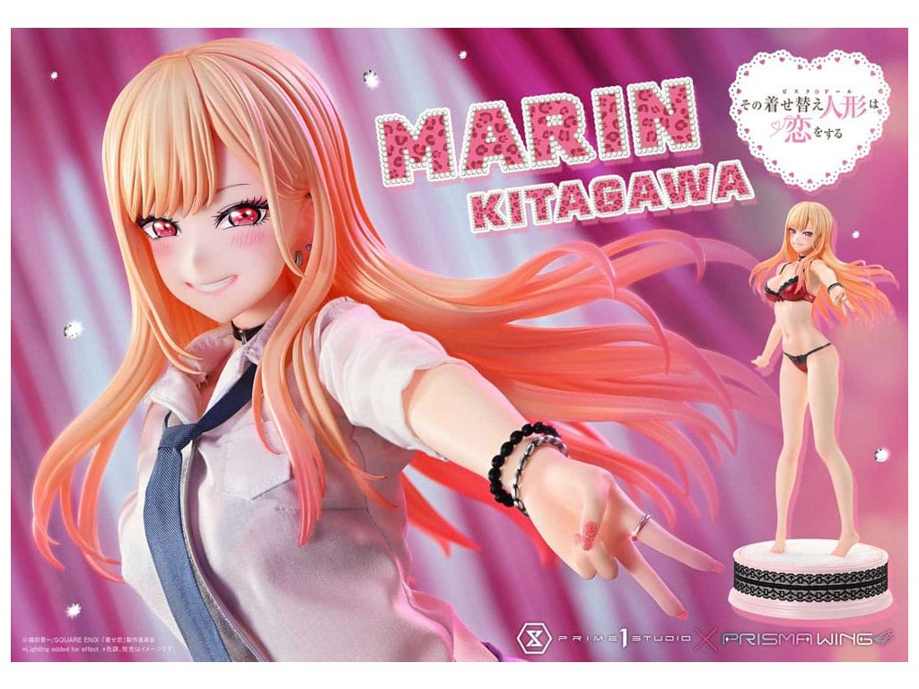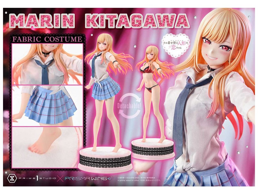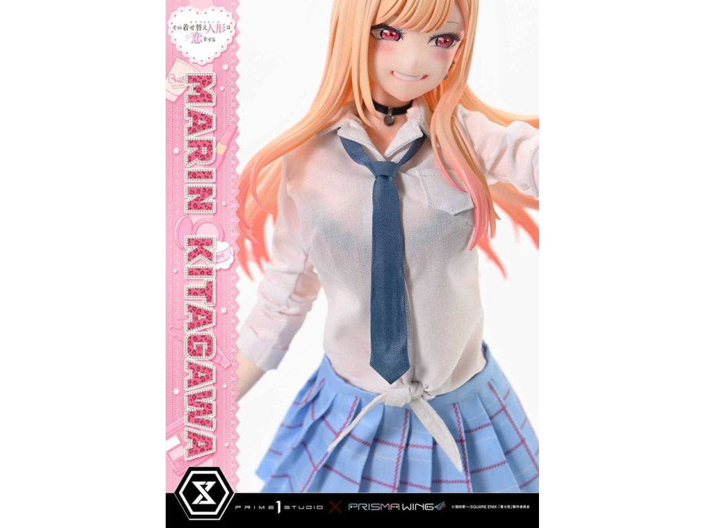 Z televizní animace My Dress-Up Darling, Marin Kitagawa přináší život ve dvou odlišných stylech. Marin Kitagawa se připojuje k sérii Premium Masterline! Tato soška v měřítku 1/4 zachycuje každou část jejího kouzla. Její přirozená póza, zobrazovaná skrze její dlouhé a štíhlé končetiny, byla pečlivě vypracována s důrazem na celkovou rovnováhu těla a jemný posun její váhy. Sběratelská soška je vysoce detailně zpracovaná, včetně výrazu tváře, tvaru těla a barvy. Její lehké, vlající vlasy, měkký ruměnec na tvářích a jemná textura její průhledné pleti - všechny dojmy z anime jsou živě přeneseny do života. Doplněk, jako je obojek, náramky a lesklé nehty, dodávají dotek elegance a noblesy. Zvlášť navržená základna, ozdobená kožešinou a krajkou, zvyšuje svěží, zářivý pocit kusu. Její školní uniforma, kravata a sukně jsou vyrobeny z opravdové látky. Materiály a velikosti byly pečlivě vybrány, aby dokonale rekonstruovaly její uvolněný, nenáročný styl. Pod uniformou odhaluje elegantní prádelník, usmívá se s módní barevnou škálou a zdravým, živým postavou. Kromě toho tato bonusová verze zahrnuje vyměnitelnou levou ruku, která umožňuje odlišnou pózu. S touto částí těsně sepne ruce a sladce hledí dopředu, což je speciální dotyk, který vás s ní ještě více zamiluje. Marin Kitagawa, krásně realizovaná ve dvou odlišných stylech - nenechte si ujít příležitost ji přidat do své sbírky!Technické parametry produktu: - Základna s tématikou My Dress-Up Darling - 1 x vyměnitelná levá ruka (signál míru) - 1 x vyměnitelná levá ruka (zavřená ruka) [BONUSOVÁ ČÁST].