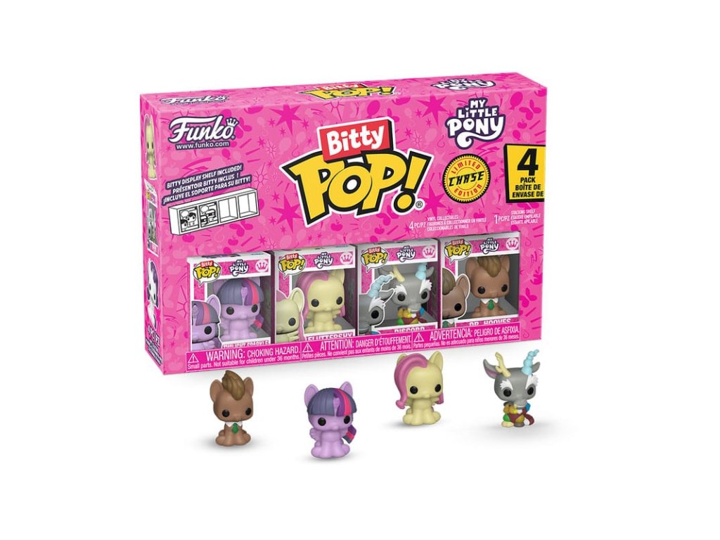 Vaše oblíbené Popky! se zmenšily do Bitty Popů! Rozšířete svoji sbírku tímto sortimentem figurek Bitty Pop! s vašimi nejoblíbenějšími postavami z kreslených seriálů! Každé balení o 4 kusech obsahuje jednu vzácnou nebo hyper vzácnou tajemnou figurku Bitty Pop! pro dokončení série. Bitty Popy! jsou baleny v tvrdých akrylových obalech s oddělitelnými spodními víky. Oddělitelná spodní víka slouží jako akrylové základny, na které jsou figurky Bitty Pop! připevněny.