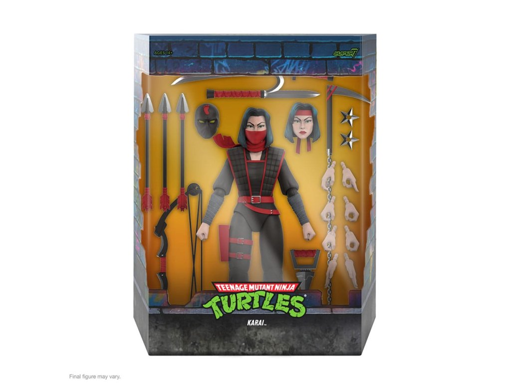 Vůdce nožního klanu v Japonsku a Shredderovou pravou rukou, Karai je nikdo, s kým byste chtěli zůstat v kontaktu! Tato 7' měřítková akční figurka Ninja Želvy ULTIMATES! Karai má několik vyměnitelných hlav a rukou, stejně jako široký sortiment zbraní s čepelí, složeného luku a šípů a vrhacích hvězd. Může být nebezpečným nepřítelem nebo silným spojencem, ale jediný způsob, jak to zjistit, je přidat ULTIMATES Karai na míru do vaší sbírky a zjistit to první rukou!Příslušenství:- 3x výměnné hlavy- 1x hlava s čelenkou- 1x maskovaná hlava- 1x hlava vůdce nožního klanu- 10x výměnných rukou- 2x pěstní ruce- 2x držící ruce (svisle) - 2x držící ruce (vodorovně) - 2x ruce pro výstřel z luku- 2x ruce karate chop- 1x šála z měkkého drátu- 1x katana- 1x kama- 1x kopací dýka- 1x Kusarigama s ocelovým řetězem- 2x vrhací hvězdy- 3x šípy- 1x složený luk.Doplňkové parametry