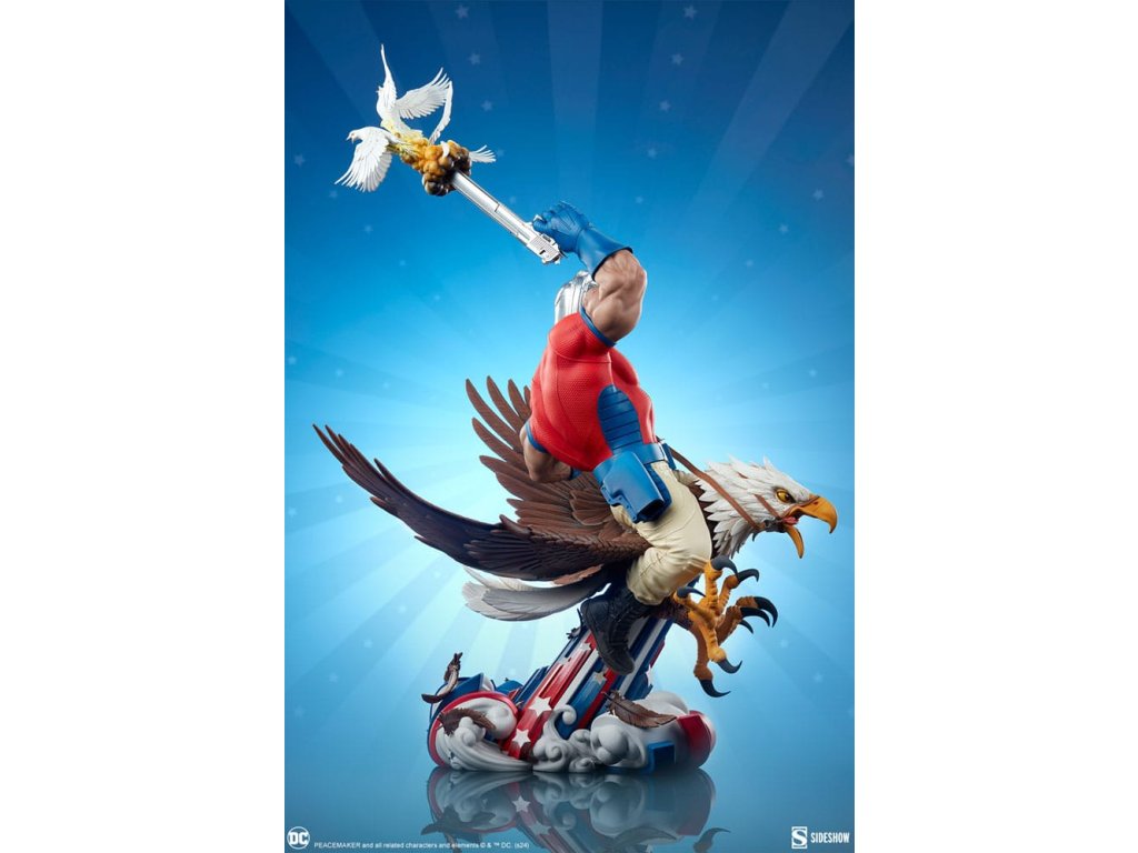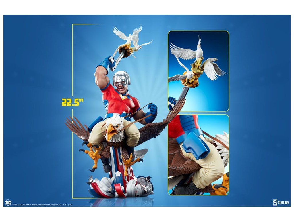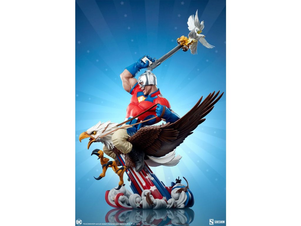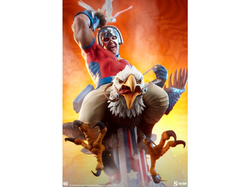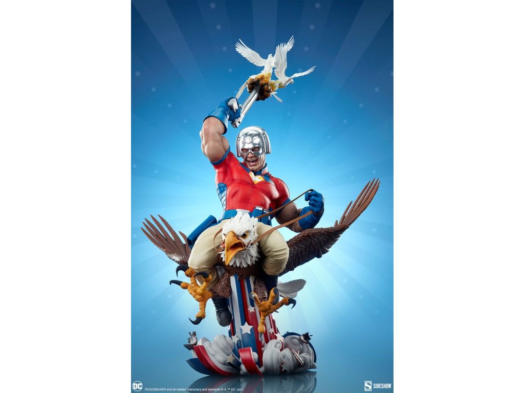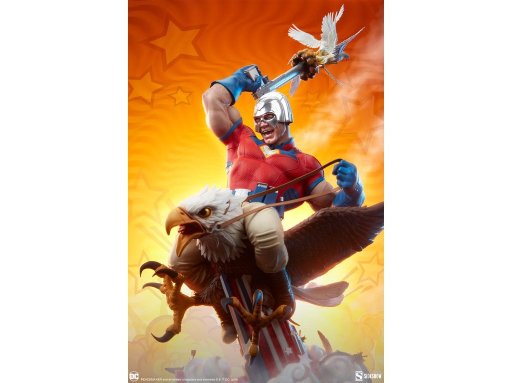 Sideshow představuje sochu Peacemaker: Jíst mír... Tento šíleně skvělý sběratelský předmět z DC je inspirován televizním seriálem Peacemaker a je také nejvěrnějším a nejúžasnějším ztvárněním Christophera Smithe v celém multiversu. Navíc je to pořádně hardcore, člověče. Socha měří 57 cm na výšku, 41 cm na šířku a 40 cm na hloubku, prezentuje Chrise v naprosto věrohodné situaci, kdy na bojiště přilétá na pleších orlímu. Tento plně sochařsky zpracovaný Peacemaker sběratelský předmět ukazuje Christophera Smithe v jeho nejimpozantnější podobě... což je samozřejmě pořád. Patriotický hrdina nosí červený, bílý a béžový oblek a k nim modré rukavice na nafouklých svalích. Jeho logo holubice míru vyniká v jasně žluté a bílé barvě uprostřed jeho hrudi, odvážně září, tak jako ten proslulý stříbrný helm. POZOR!!! Uvolněte místo pro přistání, než si vezmete sochu Peacemaker: Jíst mír... od Sideshow domů, do svého sladkého domova.Velikost produktu: 57 x 41 x 40 cm.