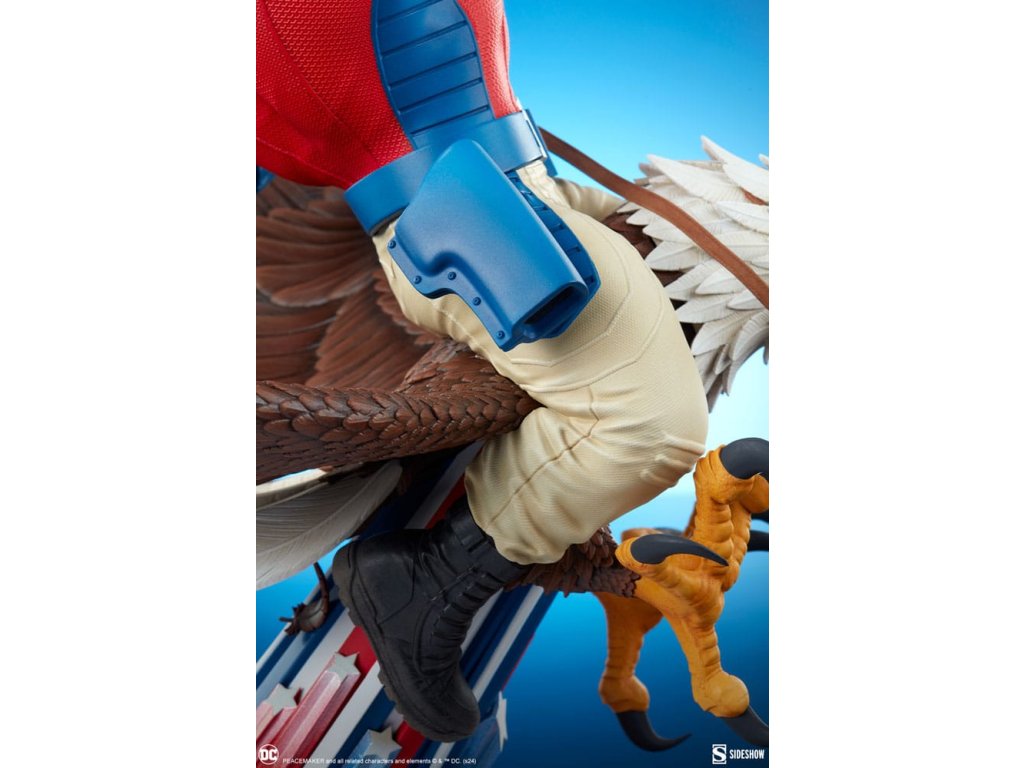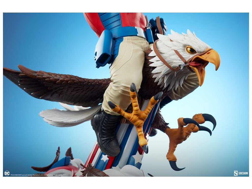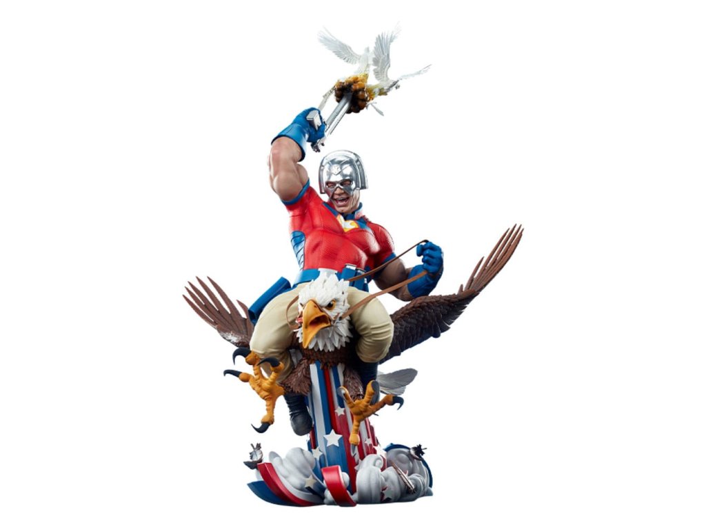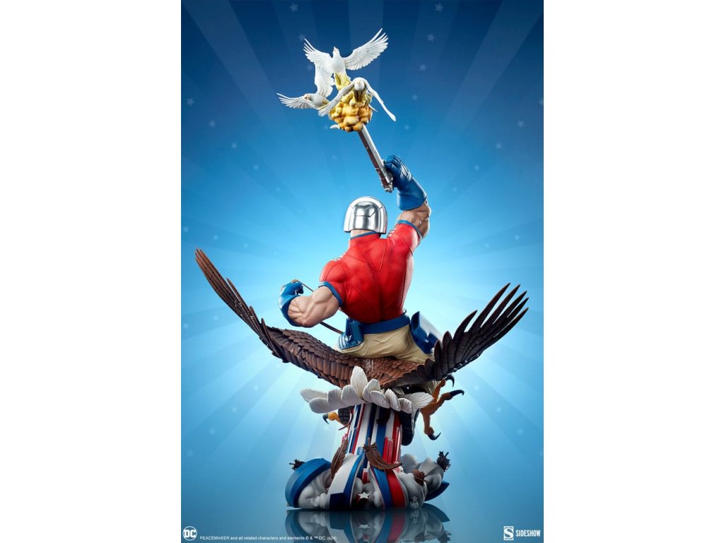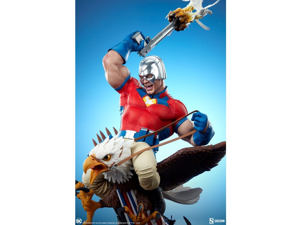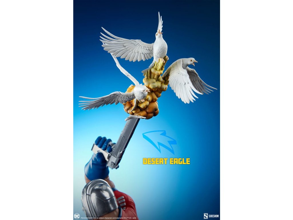 Sideshow představuje sochu Peacemaker: Jíst mír... Tento šíleně skvělý sběratelský předmět z DC je inspirován televizním seriálem Peacemaker a je také nejvěrnějším a nejúžasnějším ztvárněním Christophera Smithe v celém multiversu. Navíc je to pořádně hardcore, člověče. Socha měří 57 cm na výšku, 41 cm na šířku a 40 cm na hloubku, prezentuje Chrise v naprosto věrohodné situaci, kdy na bojiště přilétá na pleších orlímu. Tento plně sochařsky zpracovaný Peacemaker sběratelský předmět ukazuje Christophera Smithe v jeho nejimpozantnější podobě... což je samozřejmě pořád. Patriotický hrdina nosí červený, bílý a béžový oblek a k nim modré rukavice na nafouklých svalích. Jeho logo holubice míru vyniká v jasně žluté a bílé barvě uprostřed jeho hrudi, odvážně září, tak jako ten proslulý stříbrný helm. POZOR!!! Uvolněte místo pro přistání, než si vezmete sochu Peacemaker: Jíst mír... od Sideshow domů, do svého sladkého domova.Velikost produktu: 57 x 41 x 40 cm.
