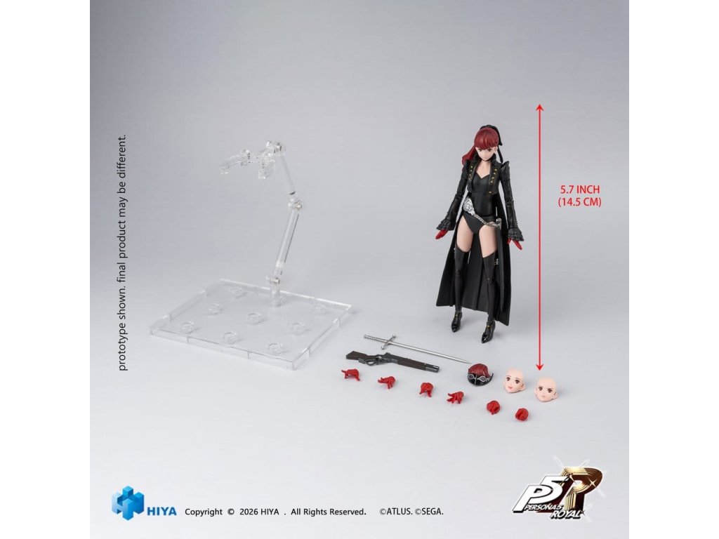 Čepel v ruce, odhodlání v pohybu. Z Persony 5 Royal se Violet poprvé představuje v sérii HIYA TOYS EXQUISITE BASIC. Krásná dívka, která se stěhuje na Shujin Academy ve stejném období jako hlavní hrdina. Je talentovaná gymnastka již od střední školy a Shujin Academy do ní vkládá velké naděje kvůli jejím vynikajícím atletickým výsledkům. Tato zcela nová akční figurka Violet EXQUISITE BASIC měří 14,5CM na výšku a věrně zachycuje její charakteristický vzhled lupičky z Persony 5 Royal. Oblečená v černém V-krátkém overalu s vrstvenými manžetami na rukávech, řetězem v pase, vysokými rozparky a kozačkami až po kolena, prezentuje dobře definovanou siluetu, která zdůrazňuje Vyioletinu rovnováhu mezi silou a elegancí. Díky mnoha bodům pohyblivosti umožňuje Violet širokou škálu póz, jako jsou příklepy, držení meče a neutrální postoje. Kromě normální tváře jsou součástí také usmívající se a vážné tváře, spolu s příslušenstvím masky Phantom Thief pro různé možnosti zobrazení. Její charakteristický rapír a mušketa jsou součástí, stejně jako 6x vyměnitelné ruce. Tato kombinace příslušenství nabízí flexibilní pózování a vylepšený zážitek z prohlížení. Příslušenství:- 1 x Tělo- 6 x Vyměnitelné ruce- 2 x Vyměnitelné tváře- 1 x Vyměnitelné přední vlasy- 1 x Rapír- 1 x Mušketa- 1 x Podstavec* Obrázky jsou pouze pro orientaci, konkrétní produkty jsou rozhodující.