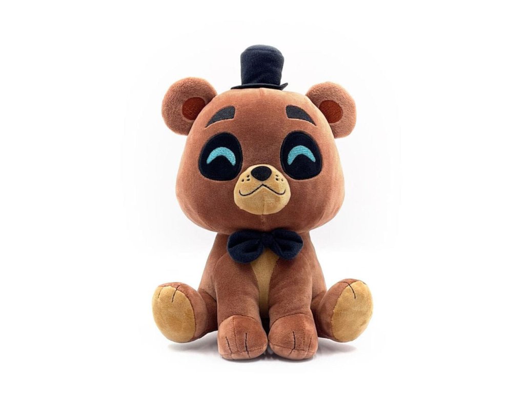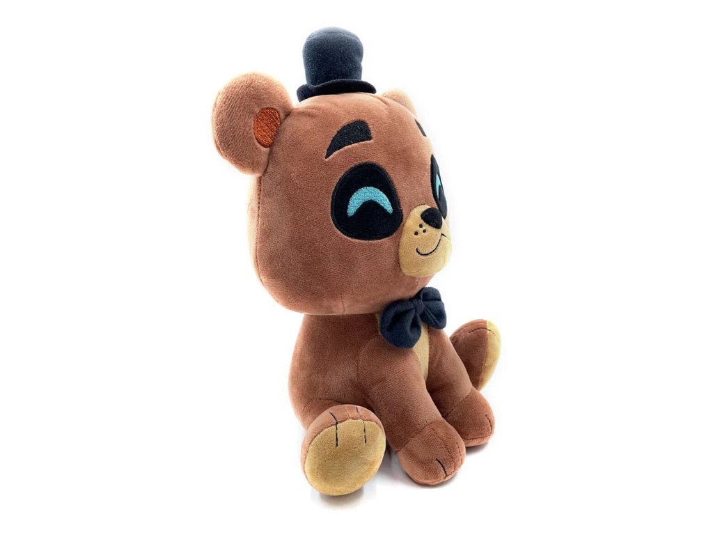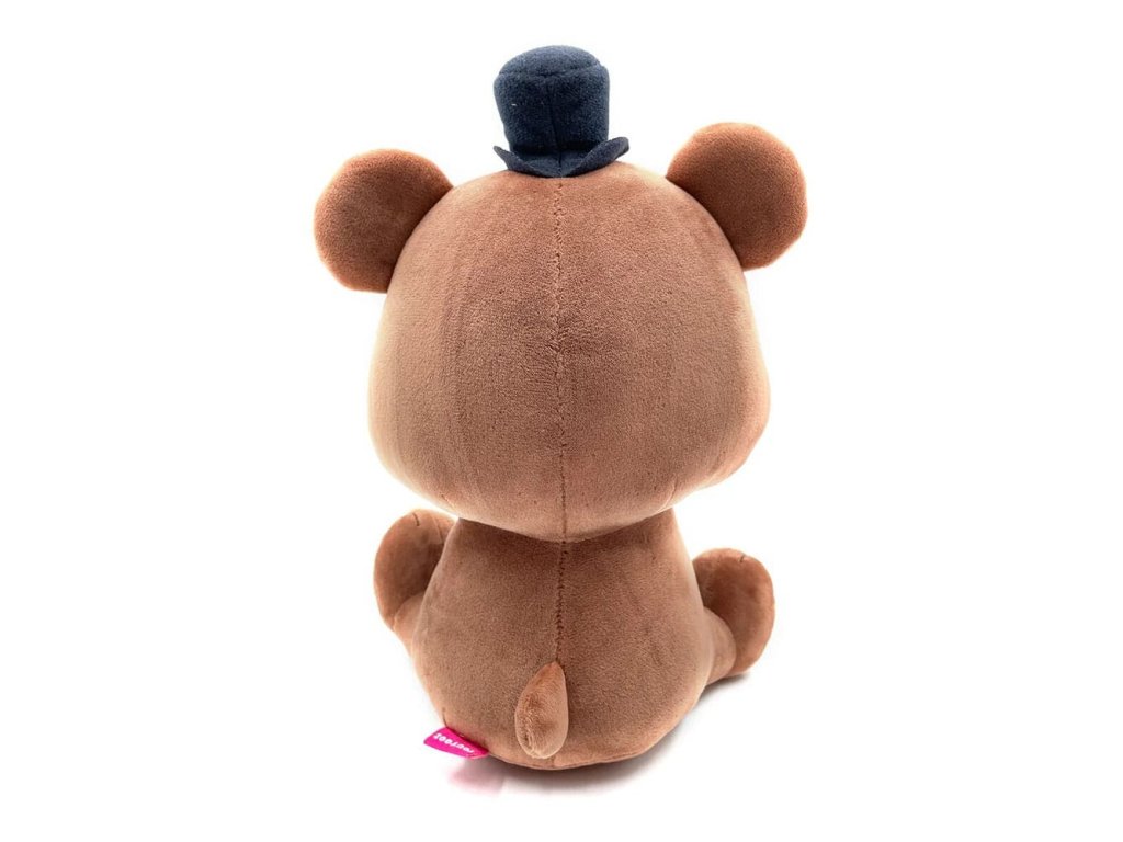 "Připravil jsem pro tebe zvláštní veselou zábavu." Je to třetí noc a Freddy se opět vrací do Youtooz, aby se pochlubil svým novým plyšákem! Měří 9 palců na výšku a je ztvárněn tak, že má své paže pevně umístěné mezi dvěma nataženými zadními nohami, jeho světle hnědé polštářky na tlapkách ladí s jeho bledým bříškem. Vyvýšený do pozoru, na své mohutné hnědé tváři nosí uklidňující úsměv, jehož modré zřítelnice jen září z jeho černých očí. Je jednoduše, ale vždy vkusně oblékaný, černý cylindr má mezi svými kulatými ušima a ladí s elegantní motýlkovou mašlí kolem krku. Tento plyšák je do švů nacpaný 100% bavlnou PP a je vyroben z normálního minky materiálu, naprosto perfektní pro mazlení, nebo pro úplně nevyděšený útěk, že?....ŽE?!O hře Pět Nocí u Freddyho: Pět Nocí u Freddyho je hororová přežití hra vytvořená Scottem Cawthonem. Hra se odehrává v prostředí, kde hráč pracuje jako noční strážce v rodinné pizzerii Freddy Fazbeara a rychle se dostává do sporu s kolekcí vědomých animatroniků. Krátce po vydání hry v roce 2014 získala kultovní následování a rychle se vyvinula v komplexní fiktivní vesmír plný lore a různých spin-offů.Doplňkové parametry