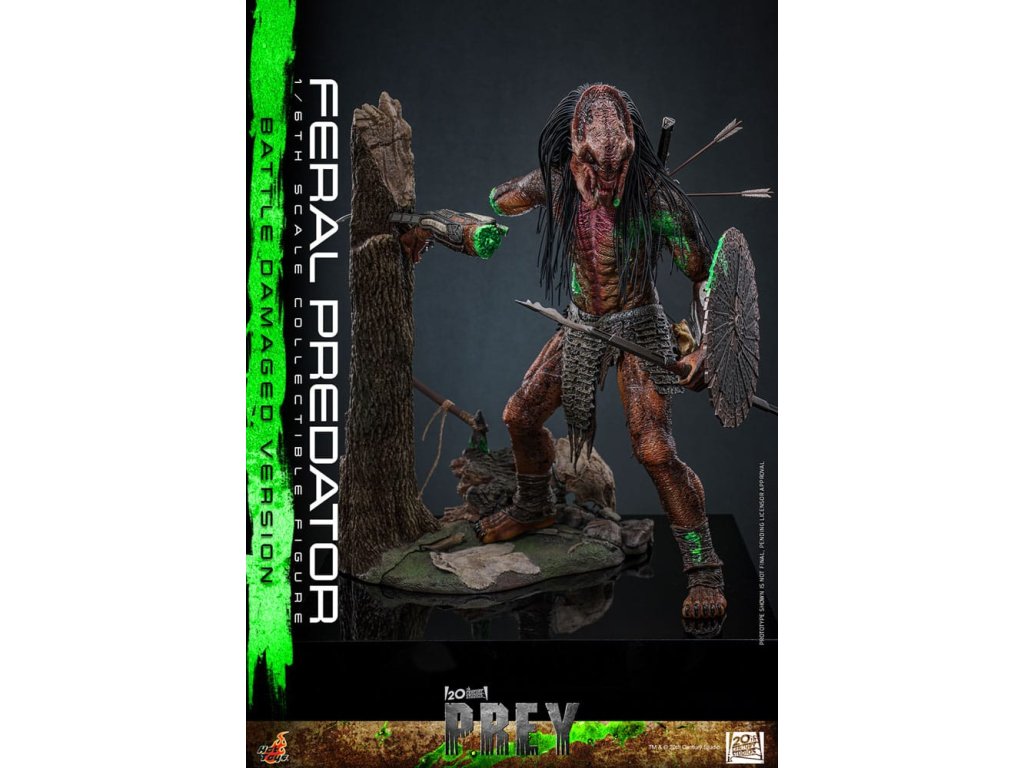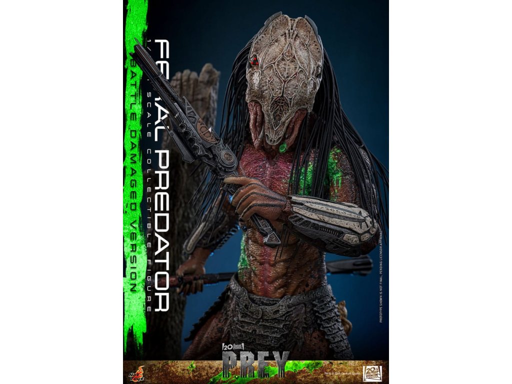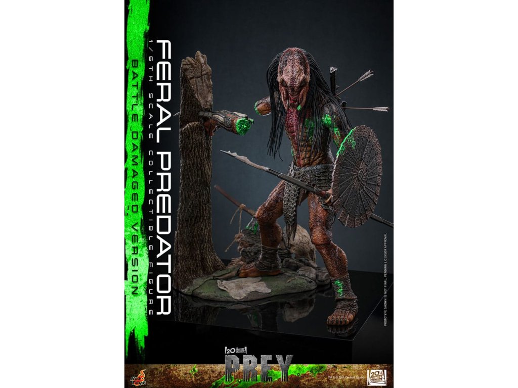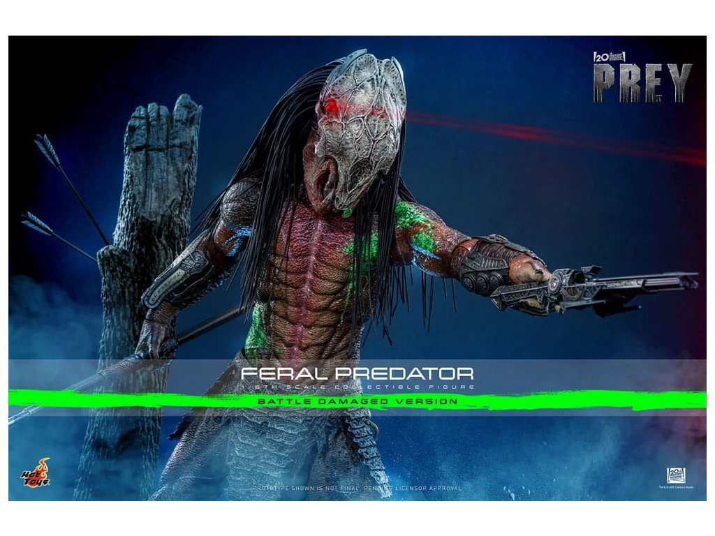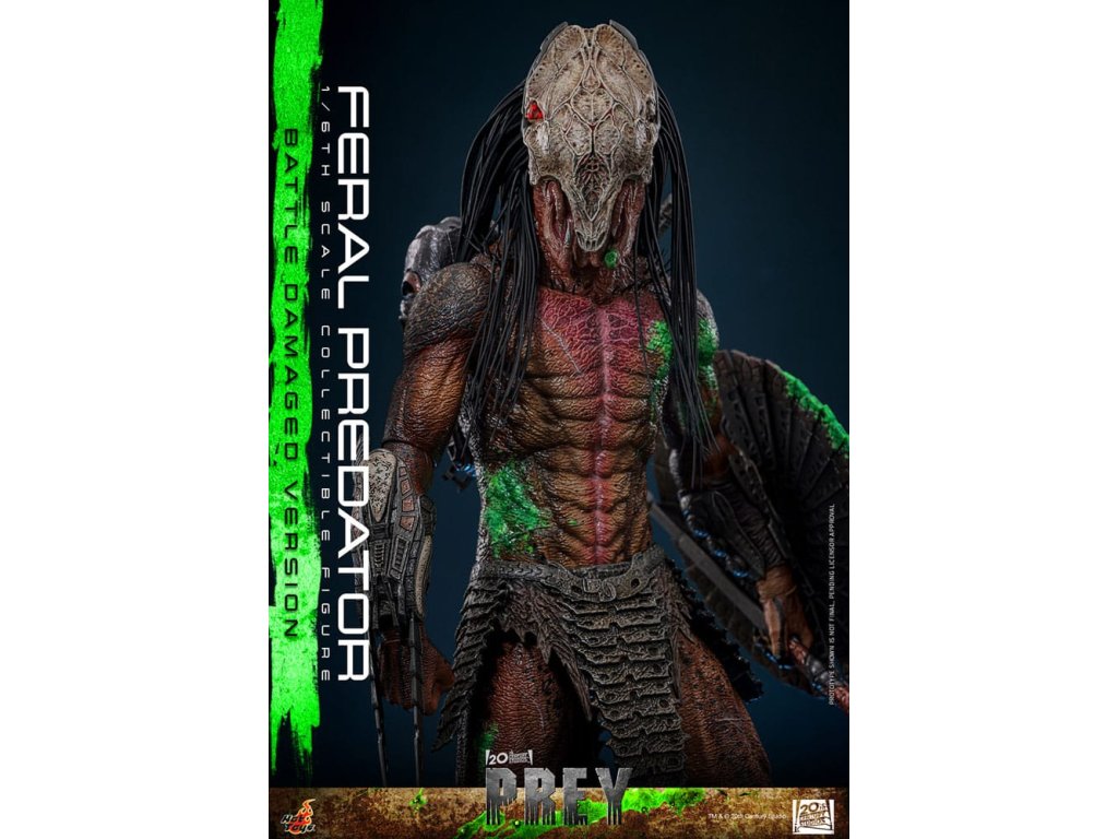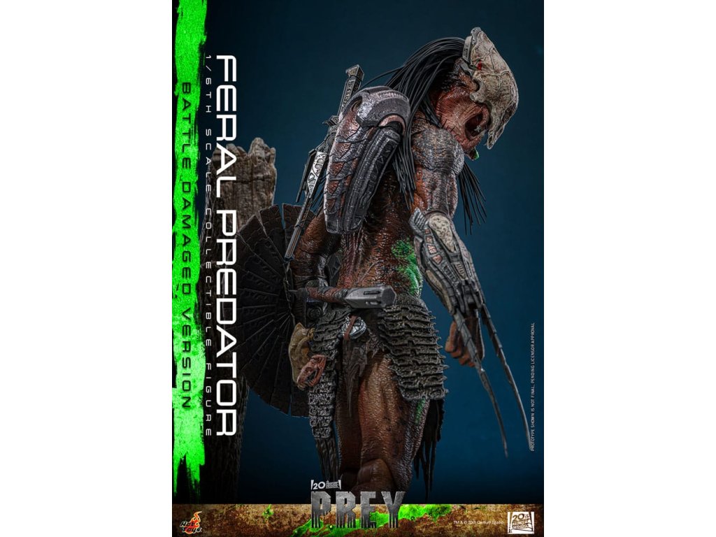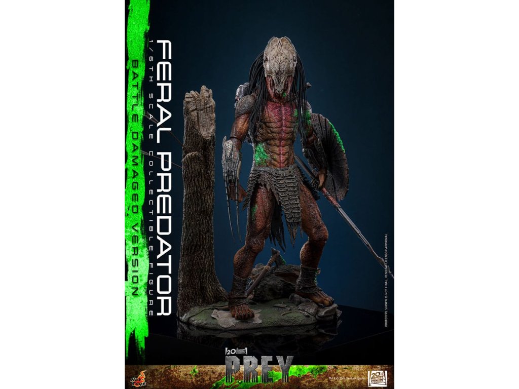 "To je tvoje konečná. Už ne dál. To je ono." - NaruKdyž se v práci Prey rozvíjí finální boj, Divoký Predátor se po nebezpečné honičce lesem a bažinou těžce zraní. Statečný válečník komančů Naru obrací technologii Predátora proti němu samotnému, bere mu masku a pomocí jeho cílovacího laseru přesměrovává smrtelný zásah zpět na hlavu stvoření. S tělem pokrytým jizvami a useknutými končetinami tato figurka po bitvě zachycuje brutální, syrový závěr lovu.Sideshow a Hot Toys s hrdostí představují Divokého Predátora (Verze po bitvě) ve škále šestkrát menší. Hlava figurky je opatřena novými barevnými aplikacemi a velmi detailní texturou kůže, která přesně odráží jeho vzhled v poslední bitvě, spolu s jemně zpracovanými, zvýrazněnými tenkými gumovými vlasy, které evokují divoký vzhled z filmu. Součástí jsou dvě sady vyměnitelných čelistí, jedna otevřená a jedna s ulomeným tesákem, aby odrážela zraněný stav Predátora. Figurka Predátora také zahrnuje šest kusů vyměnitelných rukou a vyměnitelnou useknutou pravou ruku, jejíž dolní část lze připevnit k kusu dřeva pro dramatické zobrazení.Poškozenou bitvu Predátora, který měří přibližně 37 cm, zobrazuje barva poškozená bitvou, která kopíruje jeho zelenou krev a jizvy z střetnutí. Jeho kostým zahrnuje pásek s kůží lamelární a pár sochařsky zpracovaných obinadel na kotníky. Jeho arzenál zbraní zahrnuje zápěstní štít, magnety připevnitelnou kuši, kombistick, který lze rozpojit, magneticky připevnitelný kombistick v zataženém stavu, bič a pár čepelí na zápěstí - což zachycuje směs primitivních a mimozemských zbraní, které definují Predátora z Prey. Pro zvýšení efektu zobrazení obsahuje sada kostěnou masku s červenou LED světelnou funkcí, batoh, dvě kosti zavěšené na opasku, diorámou lesa, která evokuje hustý les, kde se konal finální boj, a sekeru a dvě šípy, které lze připevnit k diorámě pro dojmem realismu.Tato figurka Divokého Predátora po bitvě je nepostradatelná pro všechny fanoušky Prey a sběratele, kteří oceňují divokou krásu lovu. Orientační datum vydání: únor 2027