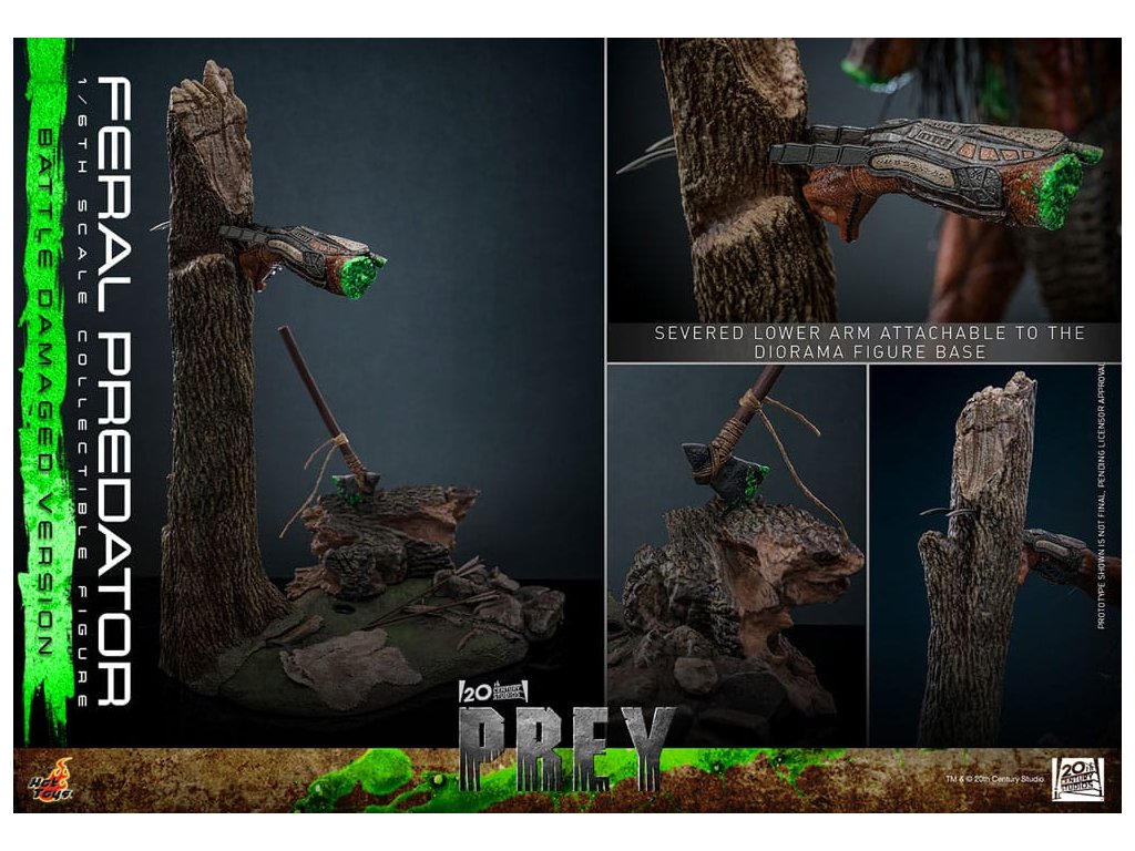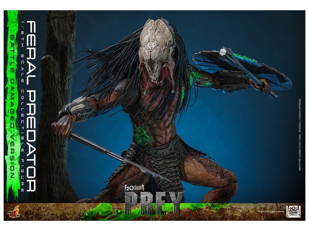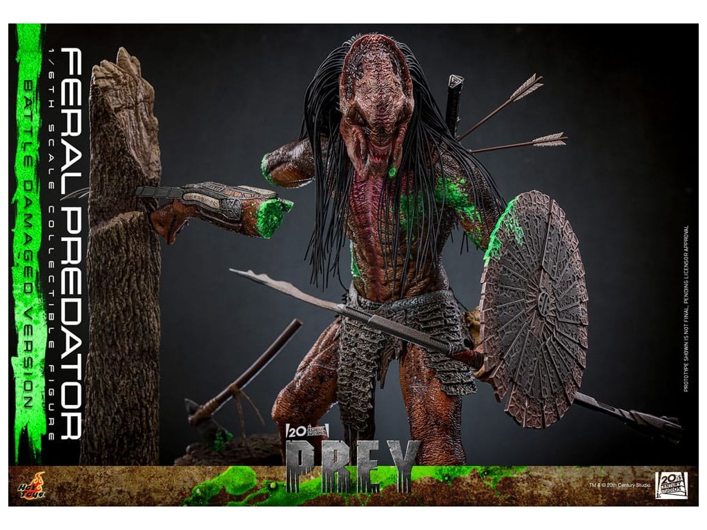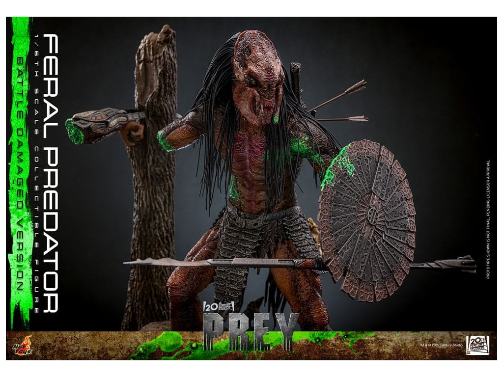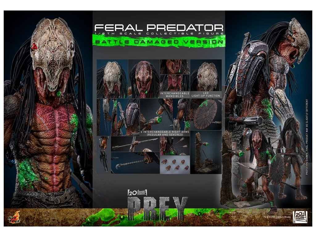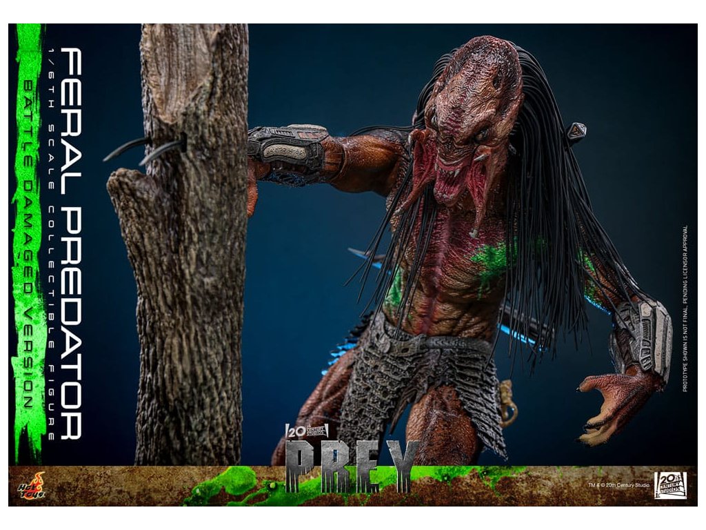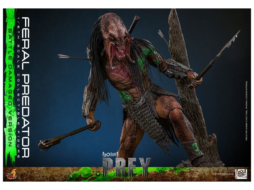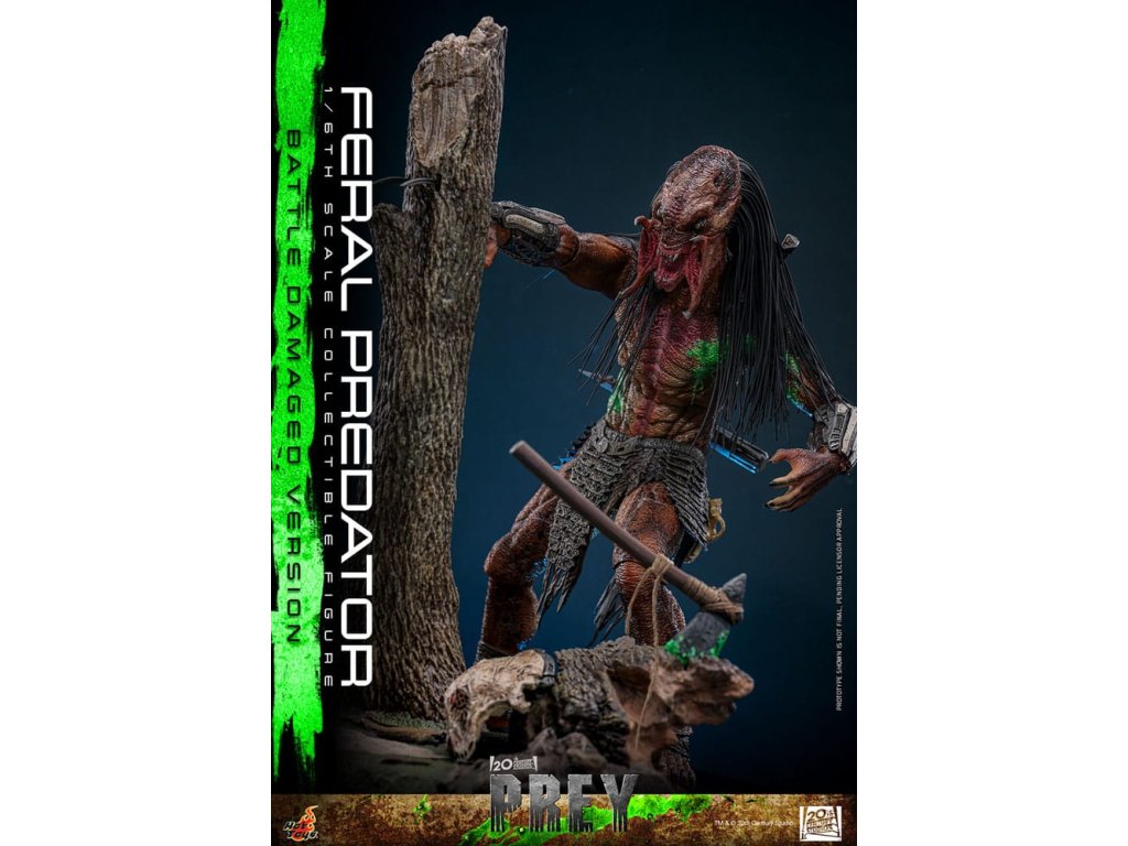 "To je tvoje konečná. Už ne dál. To je ono." - NaruKdyž se v práci Prey rozvíjí finální boj, Divoký Predátor se po nebezpečné honičce lesem a bažinou těžce zraní. Statečný válečník komančů Naru obrací technologii Predátora proti němu samotnému, bere mu masku a pomocí jeho cílovacího laseru přesměrovává smrtelný zásah zpět na hlavu stvoření. S tělem pokrytým jizvami a useknutými končetinami tato figurka po bitvě zachycuje brutální, syrový závěr lovu.Sideshow a Hot Toys s hrdostí představují Divokého Predátora (Verze po bitvě) ve škále šestkrát menší. Hlava figurky je opatřena novými barevnými aplikacemi a velmi detailní texturou kůže, která přesně odráží jeho vzhled v poslední bitvě, spolu s jemně zpracovanými, zvýrazněnými tenkými gumovými vlasy, které evokují divoký vzhled z filmu. Součástí jsou dvě sady vyměnitelných čelistí, jedna otevřená a jedna s ulomeným tesákem, aby odrážela zraněný stav Predátora. Figurka Predátora také zahrnuje šest kusů vyměnitelných rukou a vyměnitelnou useknutou pravou ruku, jejíž dolní část lze připevnit k kusu dřeva pro dramatické zobrazení.Poškozenou bitvu Predátora, který měří přibližně 37 cm, zobrazuje barva poškozená bitvou, která kopíruje jeho zelenou krev a jizvy z střetnutí. Jeho kostým zahrnuje pásek s kůží lamelární a pár sochařsky zpracovaných obinadel na kotníky. Jeho arzenál zbraní zahrnuje zápěstní štít, magnety připevnitelnou kuši, kombistick, který lze rozpojit, magneticky připevnitelný kombistick v zataženém stavu, bič a pár čepelí na zápěstí - což zachycuje směs primitivních a mimozemských zbraní, které definují Predátora z Prey. Pro zvýšení efektu zobrazení obsahuje sada kostěnou masku s červenou LED světelnou funkcí, batoh, dvě kosti zavěšené na opasku, diorámou lesa, která evokuje hustý les, kde se konal finální boj, a sekeru a dvě šípy, které lze připevnit k diorámě pro dojmem realismu.Tato figurka Divokého Predátora po bitvě je nepostradatelná pro všechny fanoušky Prey a sběratele, kteří oceňují divokou krásu lovu. Orientační datum vydání: únor 2027