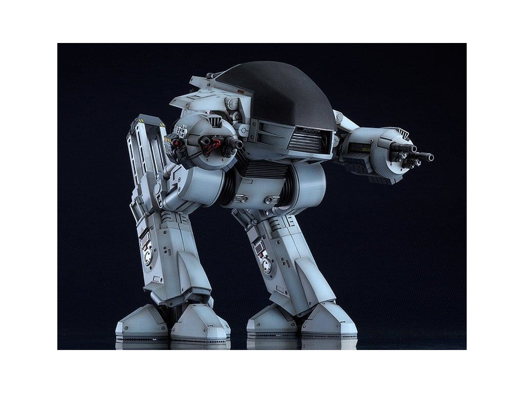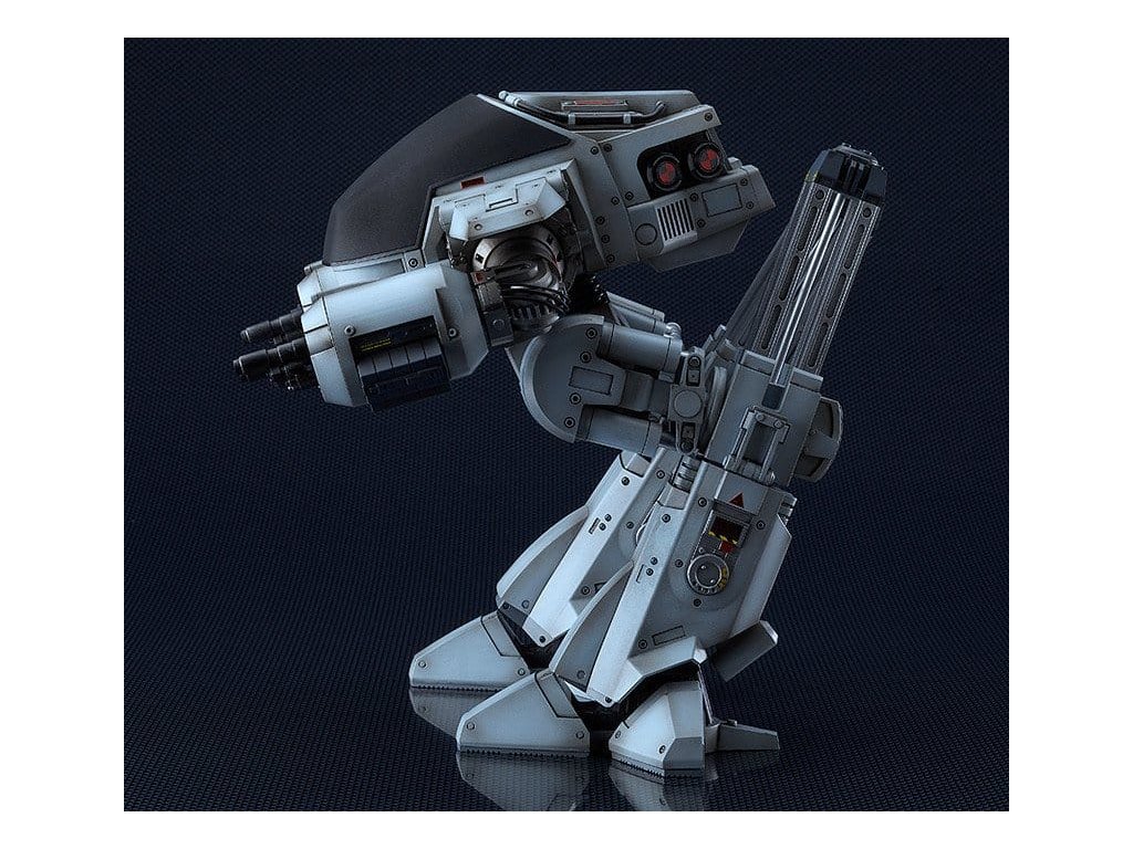 Z filmu 'ROBOCOP' přichází MODEROID plastový model ED-209, udržovací stroj vytvořený firmou Omni Consumer Products. Model po dokončení měří přibližně 20 cm na výšku. Jeho klouby, písty a posuvné lišty jsou všechny artikulované, což vám umožňuje vytvořit jak vyděšené, tak i komické pózy. Stavebnice je vyrobena z plastů PS a ABS, některé klouby jsou z POM a PE a obsahuje dílce rozdělené do čtyř barev (světle šedá, stříbrná, středně šedá, tmavě šedá). Dráty byly použity k napodobení kabelů připojených k jeho pažím. K dalšímu detailování jsou součástí modelu i vodou přenosné samolepky. Součástí stavebnice jsou předem sestavené klouby, což modelování usnadňuje. Nezapomeňte jej přidat do sbírky spolu s HAGANE WORKS ROBOCOP! Orientační datum vydání: srpen 2026