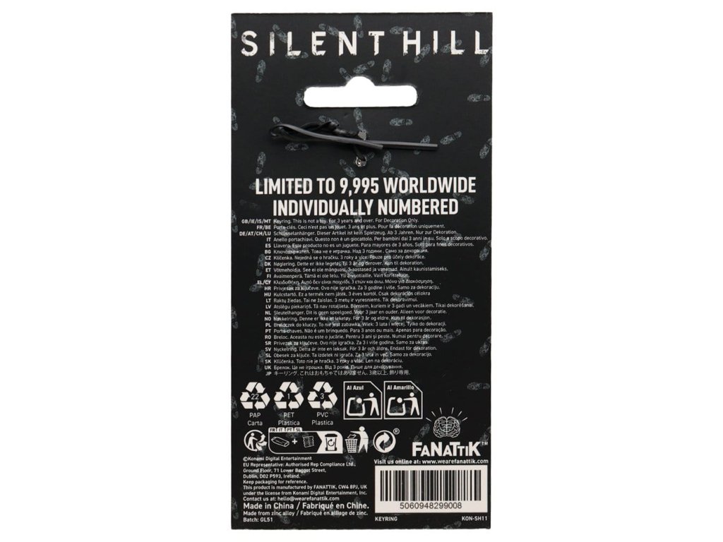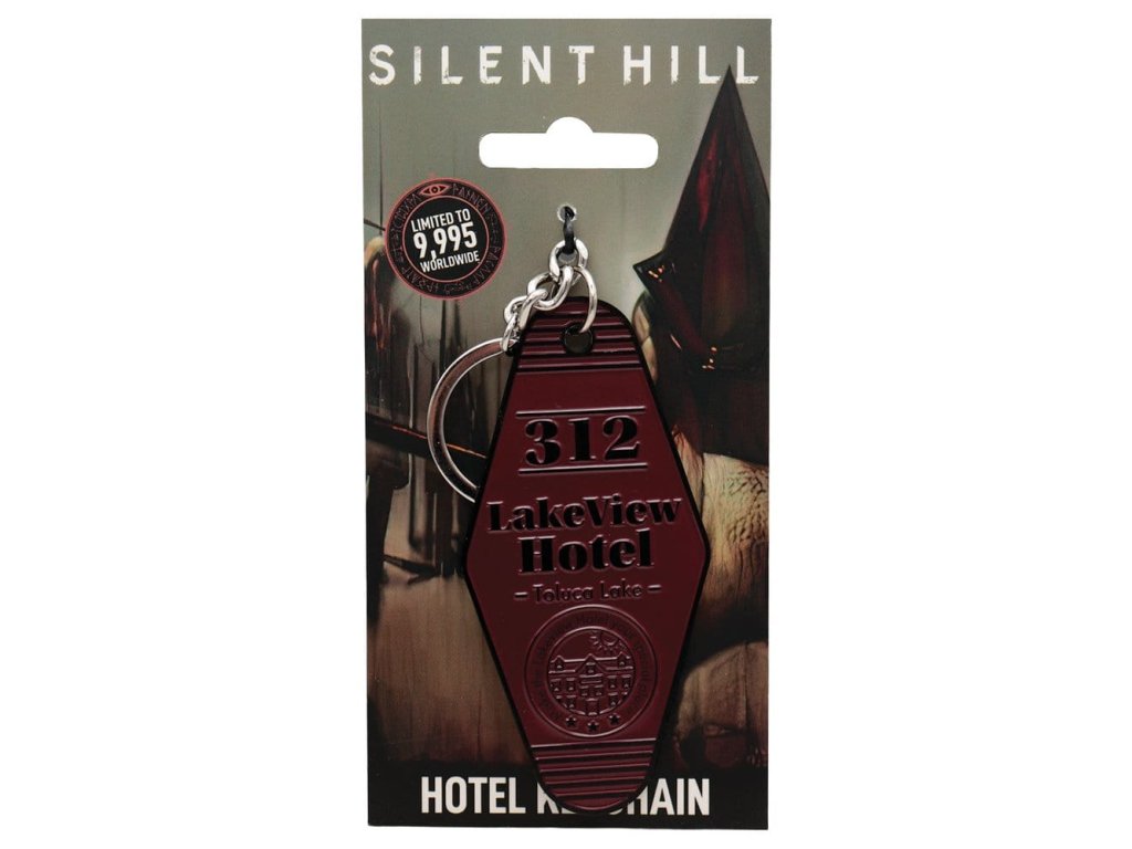Pokoj 312 v hotelu Lakeview, který se přehlíží na Toluca Lake ve městě Silent Hill, byl pokoj, ve kterém James a Mary strávili dovolenou krátce před Maryinou terminální diagnózou a stal se „zvláštním místem“ tohoto páru, jak je označeno v Maryině dopise Jamesovi v Silent Hill 2. Když James najde mapu hotelu při své návštěvě města v hledání Mary, „Čekám na tebe“ je napsáno na pokoji 312, což Jamesovi dodává naději, že tam je Mary a to je také napsáno na zadní straně tohoto klíčenky na hotel Lakeview, který je vyroben z kovu a dokončen červeným emailem, individuálně číslovaný a omezen na 9 995 kusů na celém světě. - Oficiálně licencované - Omezeno na 9 995 - Individuálně číslováno na hraně - Červené emailové dokončení - 89 x 43 mm