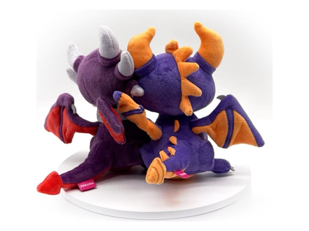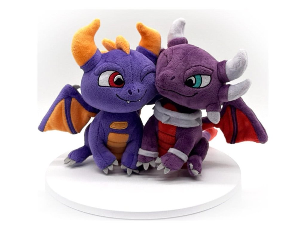 Láska je ve vzduchu a toto dynamické dračí duo vznáší se na obláčcích plných lásky! Sedící vedle sebe, vysokí 15 cm, jejich tváře se něžně dotýkají, když jeden na druhého mrkají. Cynder sedí o něco výše než její král Spyro s tělem v hluboké fialové, růžové a šedé barvě. Zatímco Spyro sedí vedle ní s tělem v lehké fialové a oranžové barvě, obě jejich křídla jsou roztažená a připravena surfovat na větru lásky. Tento plyšák je nacpaný do švů 100% PP bavlnou a je vyroben z nejeměkčího materiálu minky, ideální k mazlení nebo pro zamilování! O Skylanders: Skylanders je série videoher vydávaná Activisionem. Hra se odehrává v The Skylands, říši létajících ostrovů v centru vesmíru, která je neustále ohrožována zlými silami, které se snaží ovládnout její moc. Hra hráče nechává ovládat celou řadu Skylanders, aby odvrátili hrozbu!