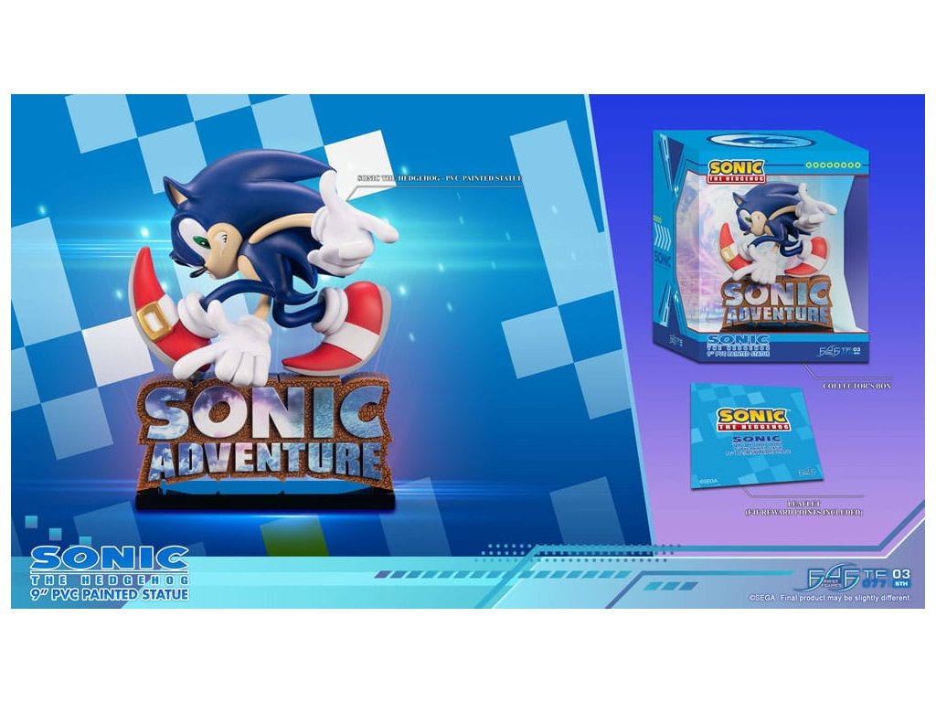 "SONIC ADVENTURE - SONIC JEŽEK. First 4 Figures s hrdostí představuje vysoce kvalitní PVC sochu Sonic Ježka z hry Sonic Adventure! Sonic Ježek je hlavní postava a hrdina videohry Sonic Adventure. Je to modrý antropomorfní ježek známý svou neuvěřitelnou rychlostí a obratností. V Sonic Adventure Sonic zachraňuje svět před zlým Dr. Eggmanem, který plánuje použít mocnou bytost Chaos k zničení světa. Herní styl Sonic se zaměřuje na rychlé průběhy, kde Sonic běhá, skáče a prohání se barevnými prostředími. Tato vysoce detailní PVC socha věrně zachycuje ikonickou pózu Sonic z jeho Sonic Adventure vzhledu. Každý detail Sonic byl pečlivě znovu vytvořen, od ostnů na jeho hlavě až po jeho červené a bílé boty. Sonic Adventure - Sonic Ježek obsahuje následující: - Sonic Adventure - Sonic Ježek PVC malovaná socha - Vysoce detailní podstavec inspirovaný uměleckým stylem videohry Sonic Adventure - F4F leták s 500 bonusovými body F4F je součástí balení" Rozměry: 21 cm