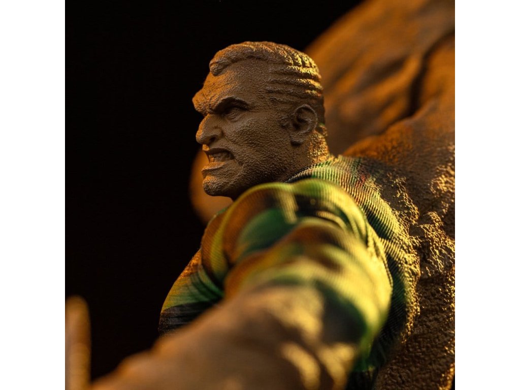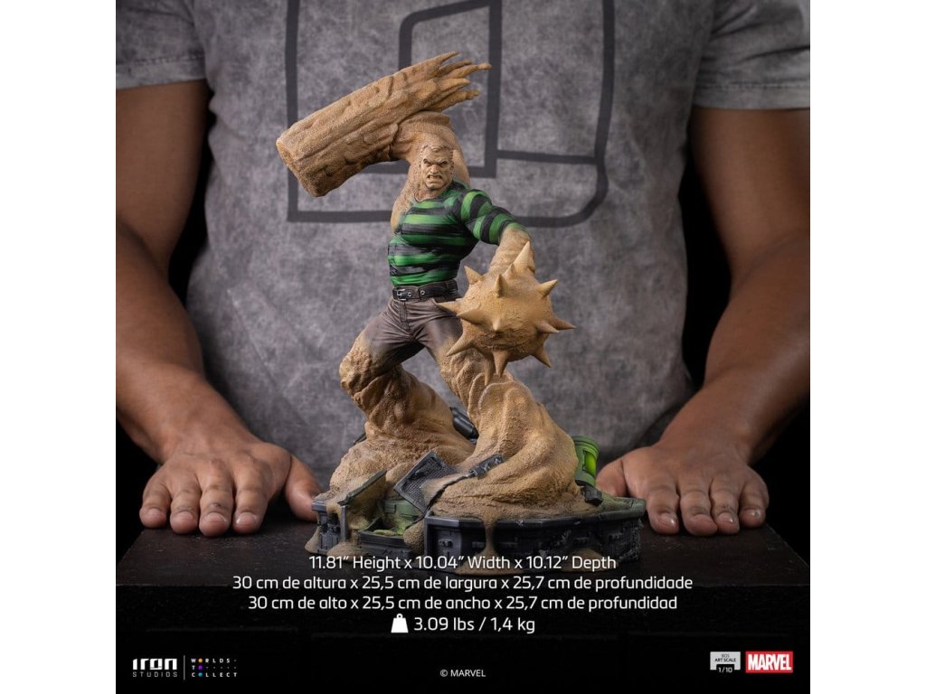 Masivní, neústupný a řízený surovou brutální silou, tato socha přivádí Písečného muže k životu v silné a ničivé reprezentaci. Je součástí kolekce Diorama Spider-Man vs Villains, zachycuje jednoho z nejvíce fyzicky náročných nepřátel Spider-Mana, jak se vynořuje v písečné bouři a zuřivosti, představuje ohromnou sílu a nezastavitelnou dynamiku. Vyrobila studio Iron Studios, tato socha Art Scale 1/10 ukazuje výjimečné sochaření a ručně malované dokončovací práce. Od dynamické anatomie formované pískem a explozivních textur po tematickou základnu, která je navržena tak, aby se bezešvě integrovala do většího diorama, každý prvek je řemeslně zpracován tak, aby vyjadřoval pohyb, hmotnost a filmový dopad. Ve velikosti 1/10 tato socha poskytuje výraznou a dramatickou přítomnost na zobrazení, ať už je vystavena samostatně nebo jako součást kompletního Diorama Spider-Man vs Villains. Navrženo tak, aby zdůraznilo velikost, sílu a vizuální vyprávění, stojí jako nezbytný doplněk pro fanoušky Spider-Mana a sběratele, kteří hledají vysoce efektivní sběratelské předměty řízené příběhem. Tato oficiálně licencovaná socha od "Marvel Comics" je vyrobena z pryskyřice. Socha měřítko 1/10 měří přibližně 30 x 25,5 x 25,7 cm.