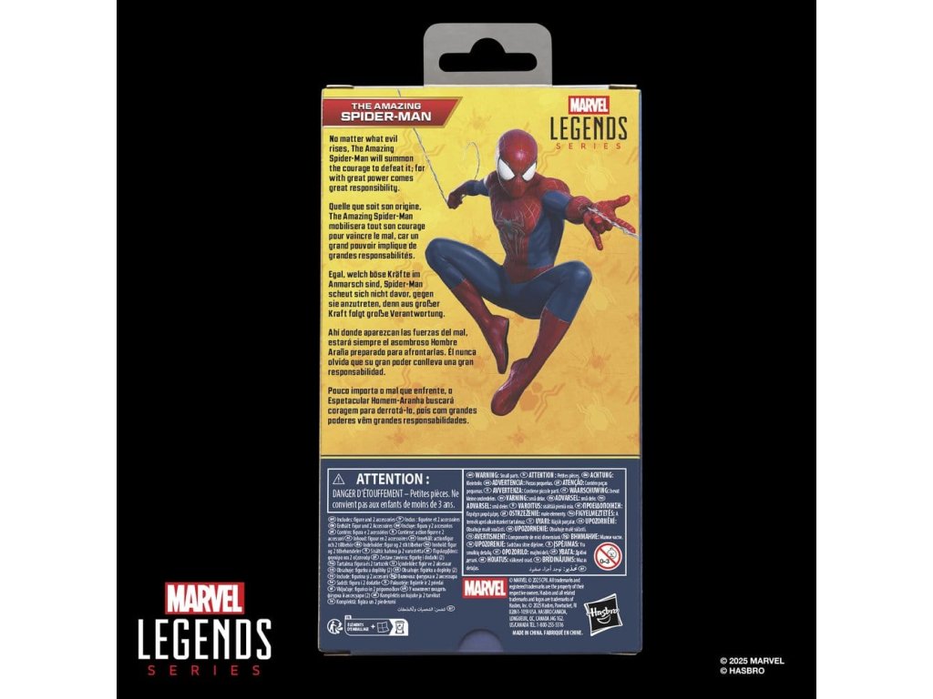Přineste vzrušení a div z Marvel univerza do své sbírky s touto akční figurkou Spider-Mana od Hasbro Marvel Legends! Tato sběratelská 6palcová figura Marvel je navržena tak, aby vypadala jako postava z filmu Marvel Studios' Spider-Man: No Way Home. Figurka Úžasného Spider-Mana je plně artikulovaná s prémiovým designem a pohyblivou hlavou, rukama a nohama. Sada akčních figurek Marvel přichází s 2 náhradními příslušenstvímí rukou. 6palcový rozměr akčních figurek Hasbro Marvel je skvělý pro zobrazování ve sbírkách fanoušků. Představte si scény inspirované filmem na své poličce s akčními figurkami Marvel Legends, hračkami a sběratelskými předměty Marvel. Orientační datum vydání: duben 2026