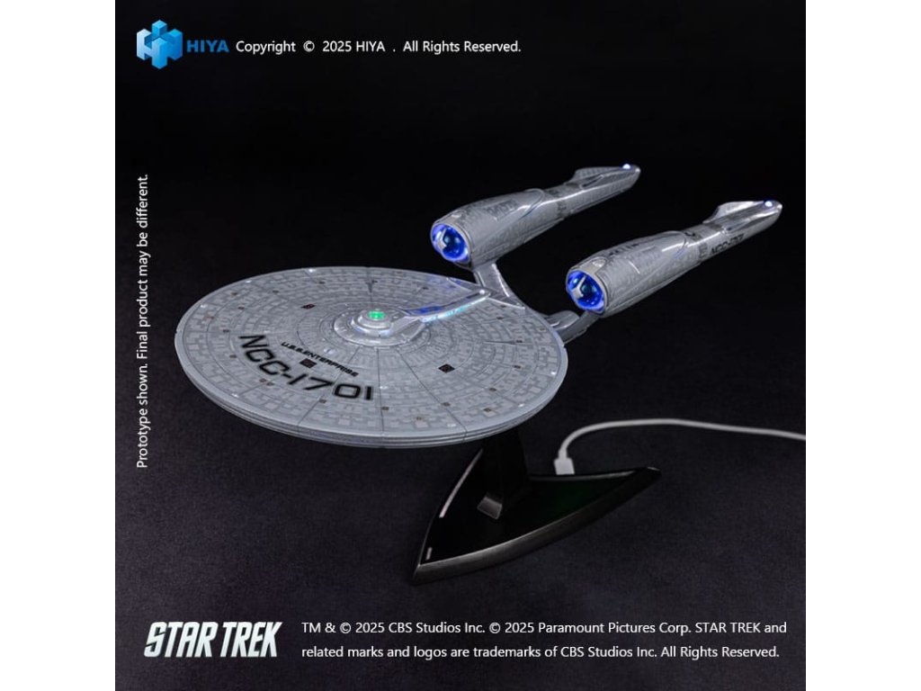 "Odvážně jdeme tam, kam ještě nikdo nešel." První položka série REPLICAart, Star Trek 2009 U.S.S. Enterprise NCC-1701, se nyní připojuje k Hiya Toys!REPLICART serie je nově vytvořená, sběratelská řada figurek, věnovaná transformaci nezapomenutelných vozidel z ikonických filmů na pečlivě navržené, zmenšené a hmatatelné umělecké předměty. S přesným designem a mimořádnou řemeslnou dovedností každý kus oživuje tyto filmové vozy v nádherných detailech. Produkt v řadě REPLICART dodá vaší sbírce jedinečný dotek, znovu vytváří ty nezapomenutelné okamžiky z oblíbených filmů s pozoruhodnou přesností a elegancí.V Star Treku z roku 2009 dojde k pohotovostní situaci na planetě Vulcan, posádka U.S.S. Enterprise NCC-1701 vyráží na odvážnou misi do neznáma. Tato posádka se vydá na dobrodružství ve finální hranici, kde se stará legenda navždy mění, zatímco začíná nová verze legendy.Tato zcela nová figurka z řady REPLICAart U.S.S. Enterprise NCC-1701, jejíž délka je 38 cm, je založena na ikonickém designu z filmu Star Trek z roku 2009 a pečlivě replikuje vzhled a složité detaily NCC-1701. Nabíjecí zařízení je integrováno do dna NCC-1701 i do stojanu. Použitím nabíjecího kabelu Type-C k stojanu nebo NCC-1701 mohou být prostřednictvím spínače spuštěna světla s různými efekty.Po dotyku na snímací oblast můstku jsou okamžitě aktivovány tři režimy osvětlení. Navíc interaktivní design mezi sběračem Bussard NCC-1701 a osvětlovacím systémem vám umožňuje znovu vytvářet různé scény z filmu.